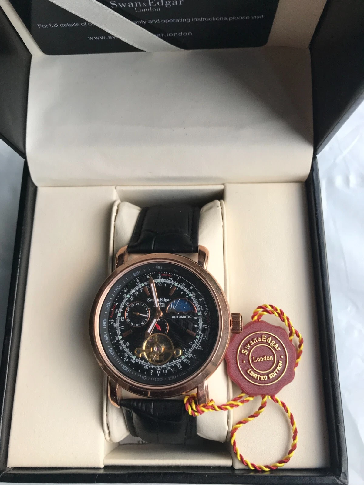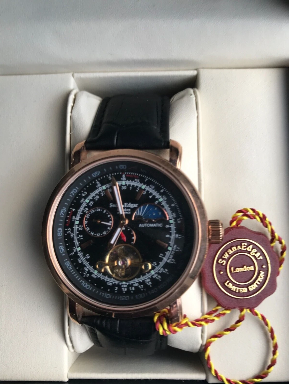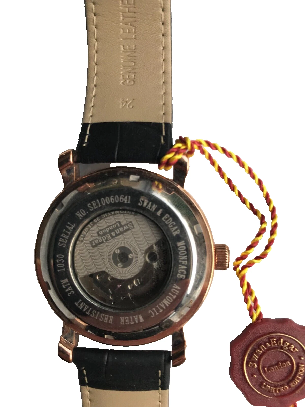 NEW Ltd.Ed. SWAN & EDGAR BLACK & ROSE GOLD MOONFACE AUTOMATC WATCH 5yr WARRANTY