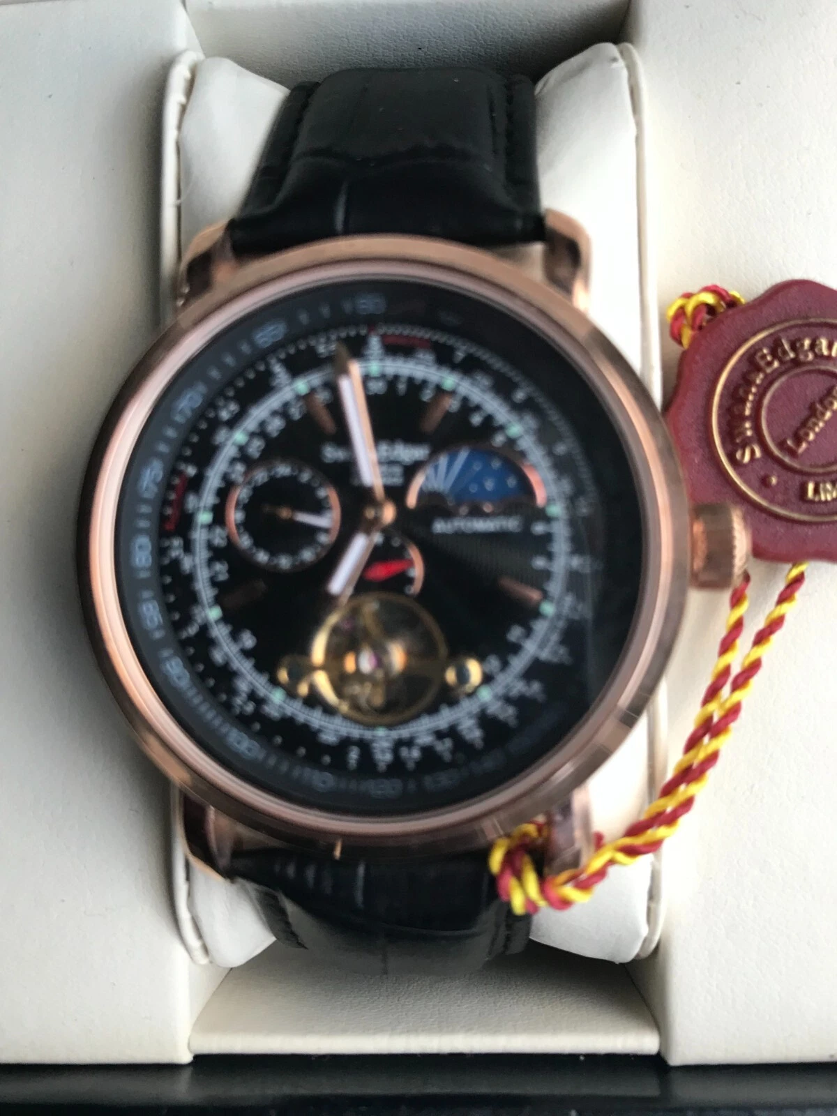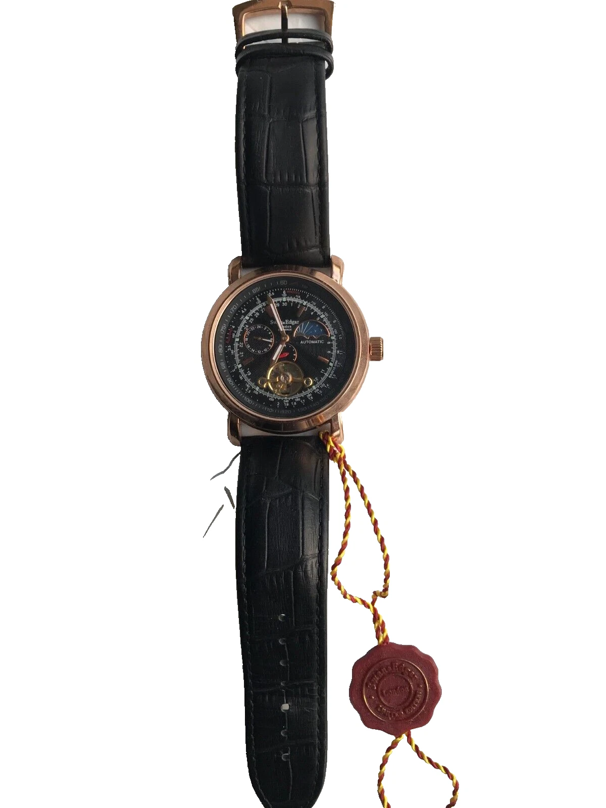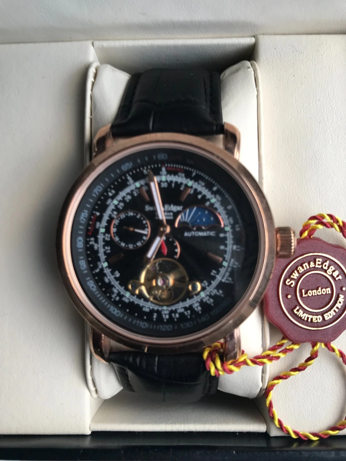 NEW Ltd.Ed. SWAN & EDGAR BLACK & ROSE GOLD MOONFACE AUTOMATC WATCH 5yr WARRANTY
