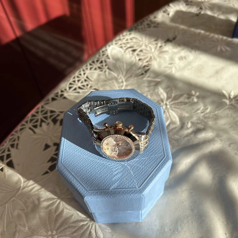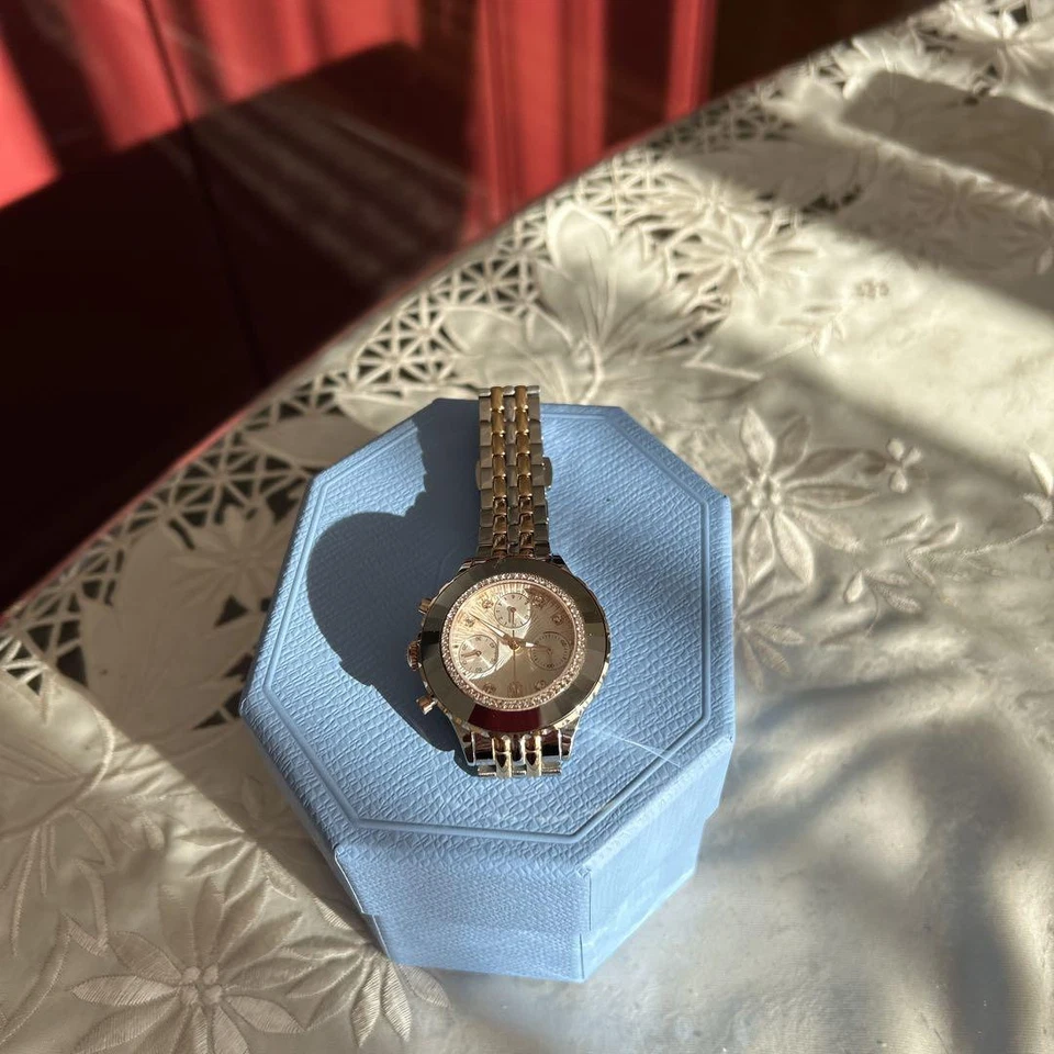Swarovski Gold Stainless Steel Automatic Watch Silver Dial Round Case New