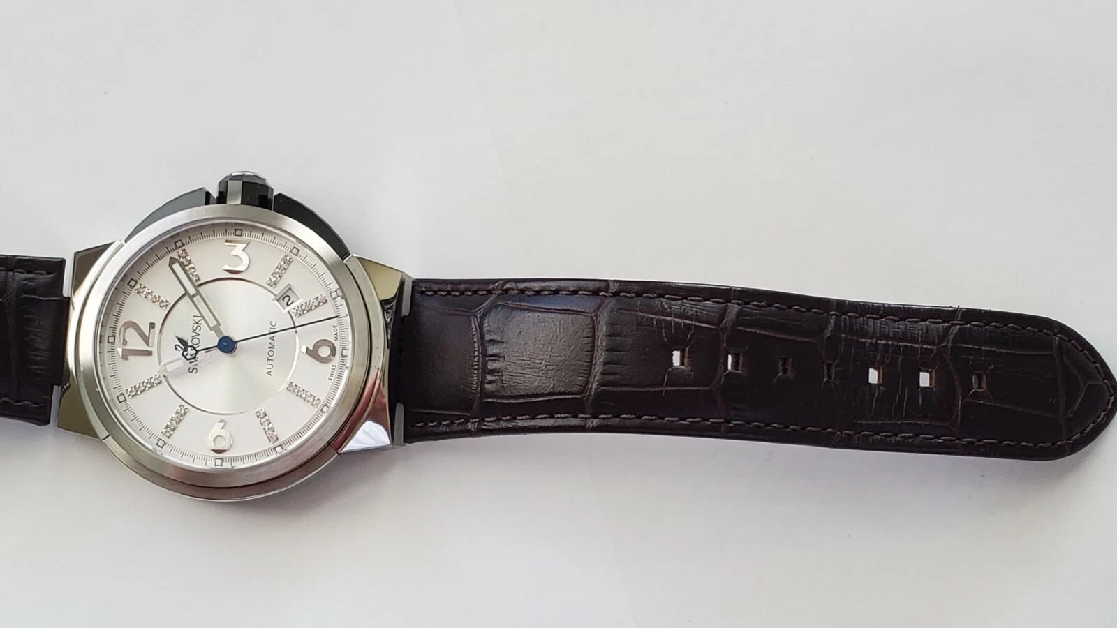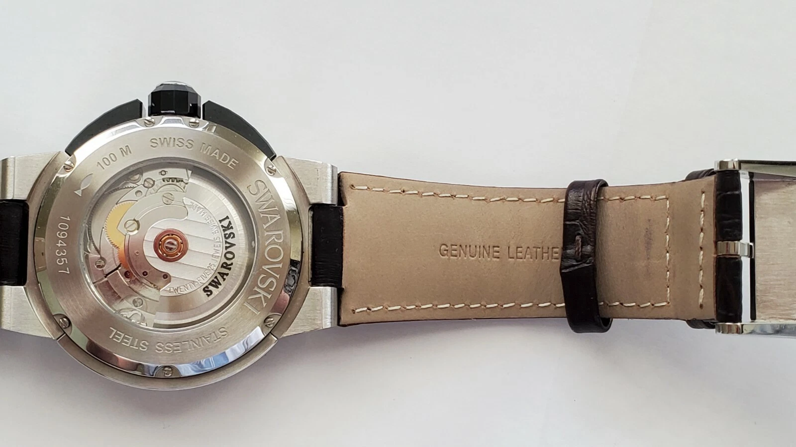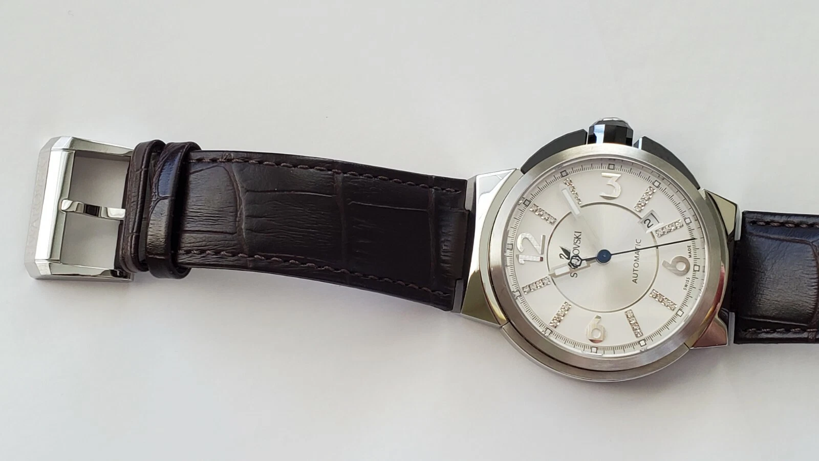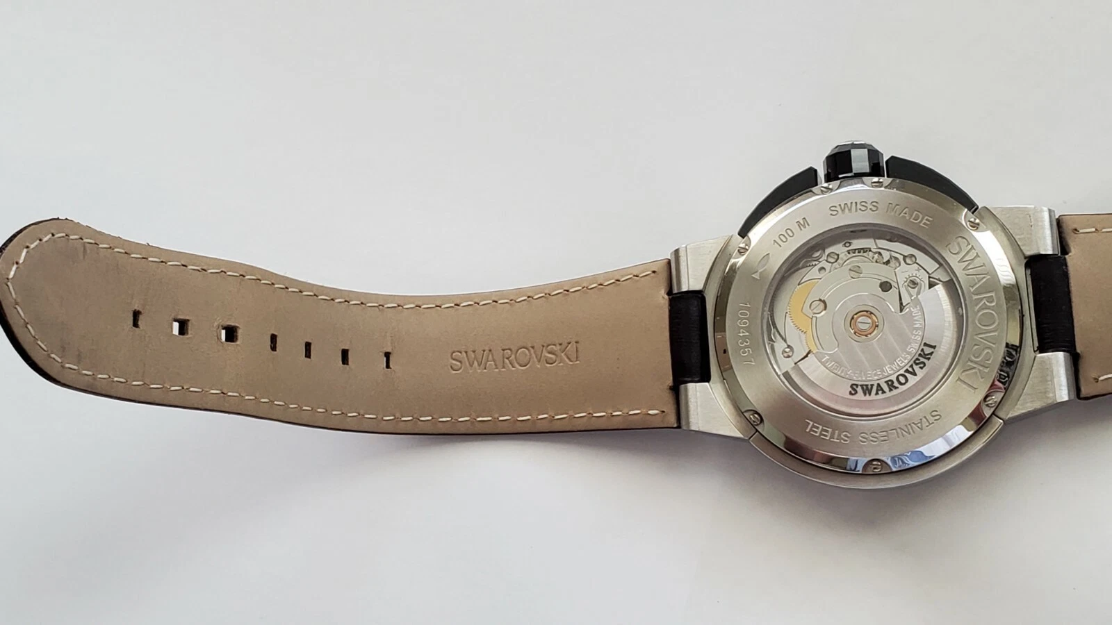 Swarovski 1094357 Piazza Grande Silver Tone Leather Mens Automatic Swiss Watch