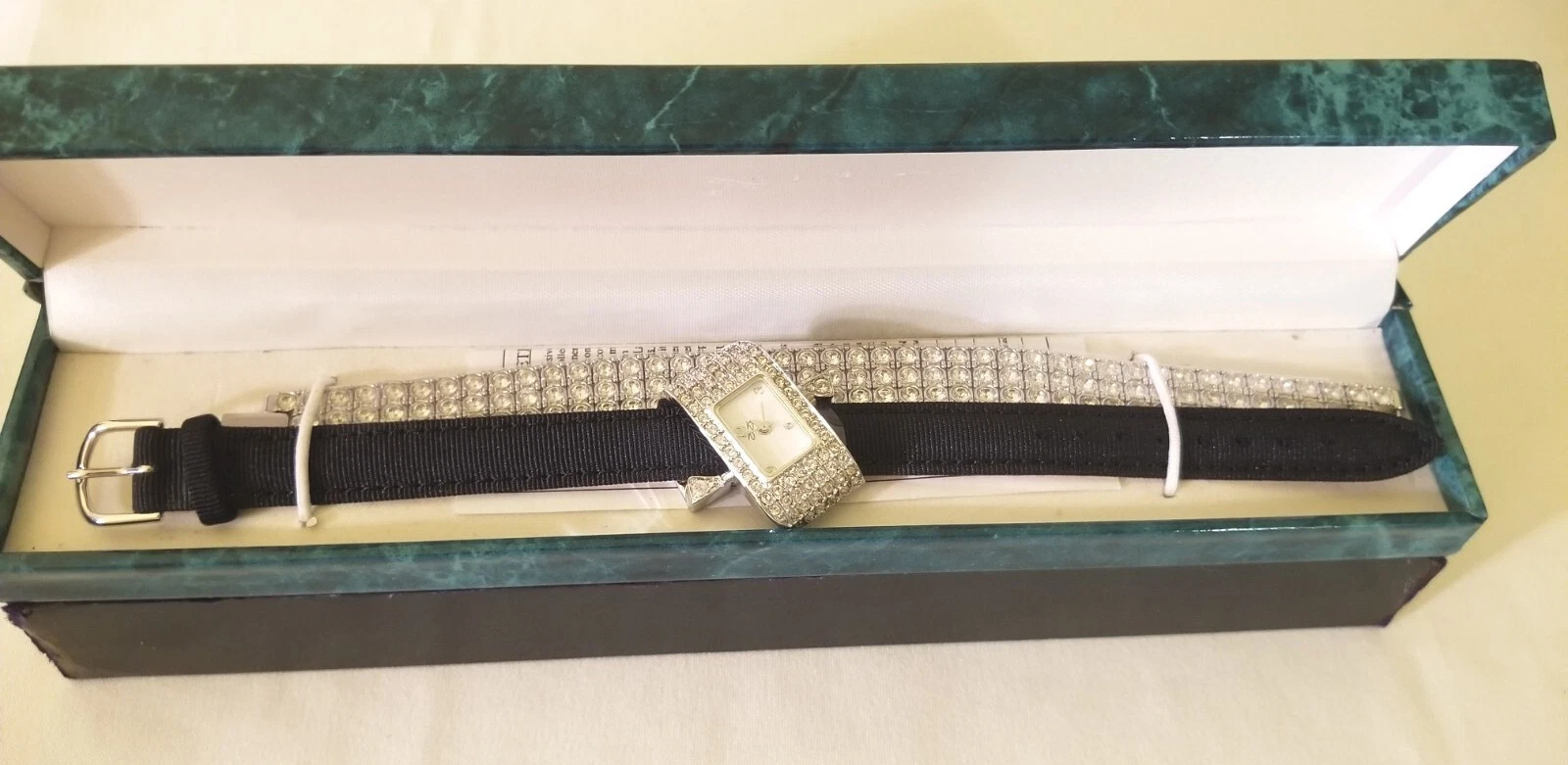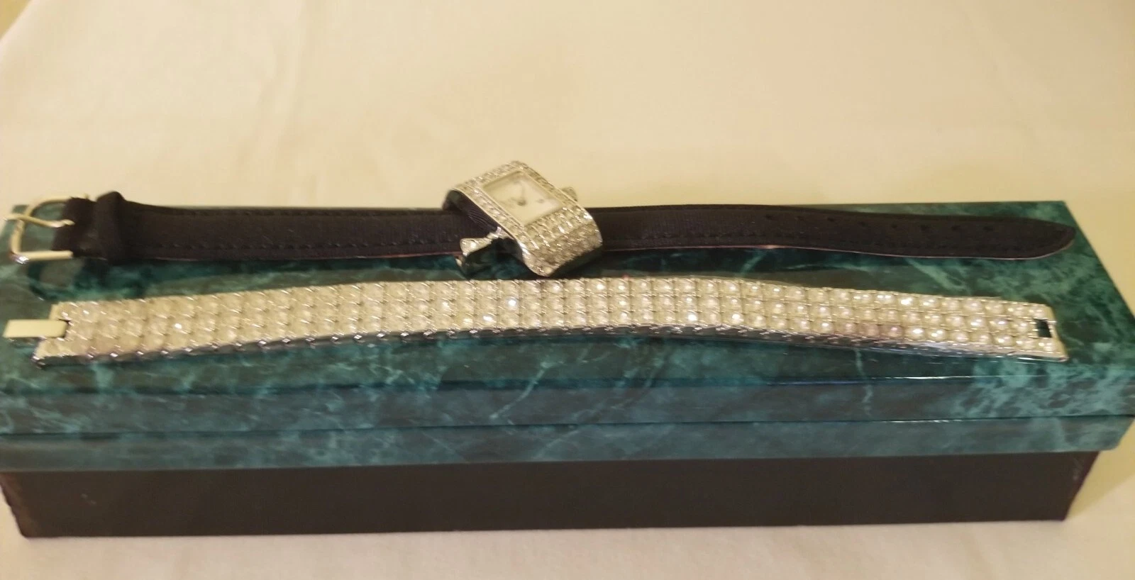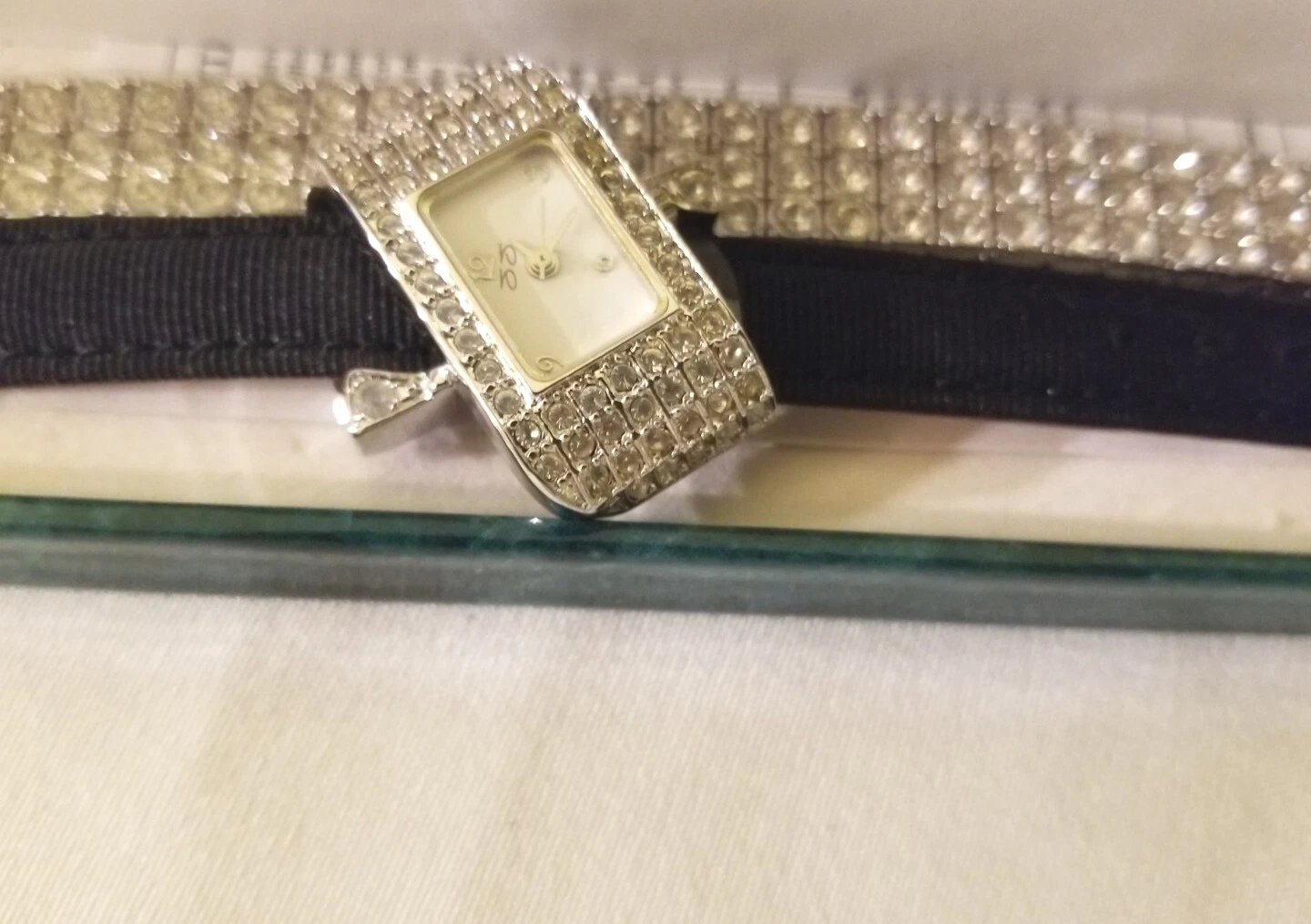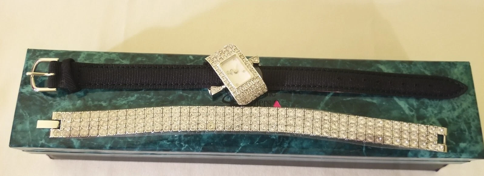 Suzanne Somers Crystal Encrusted Oblong Silvertone Watch & Crystal Bracelet