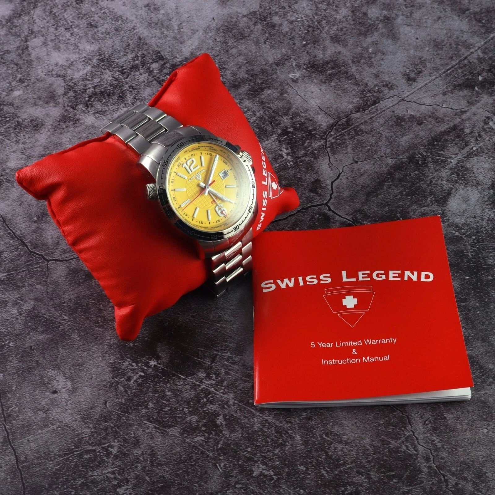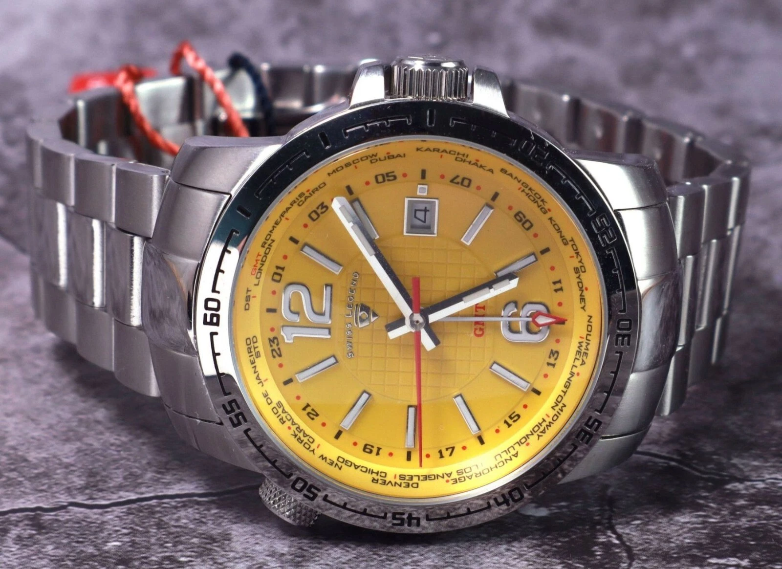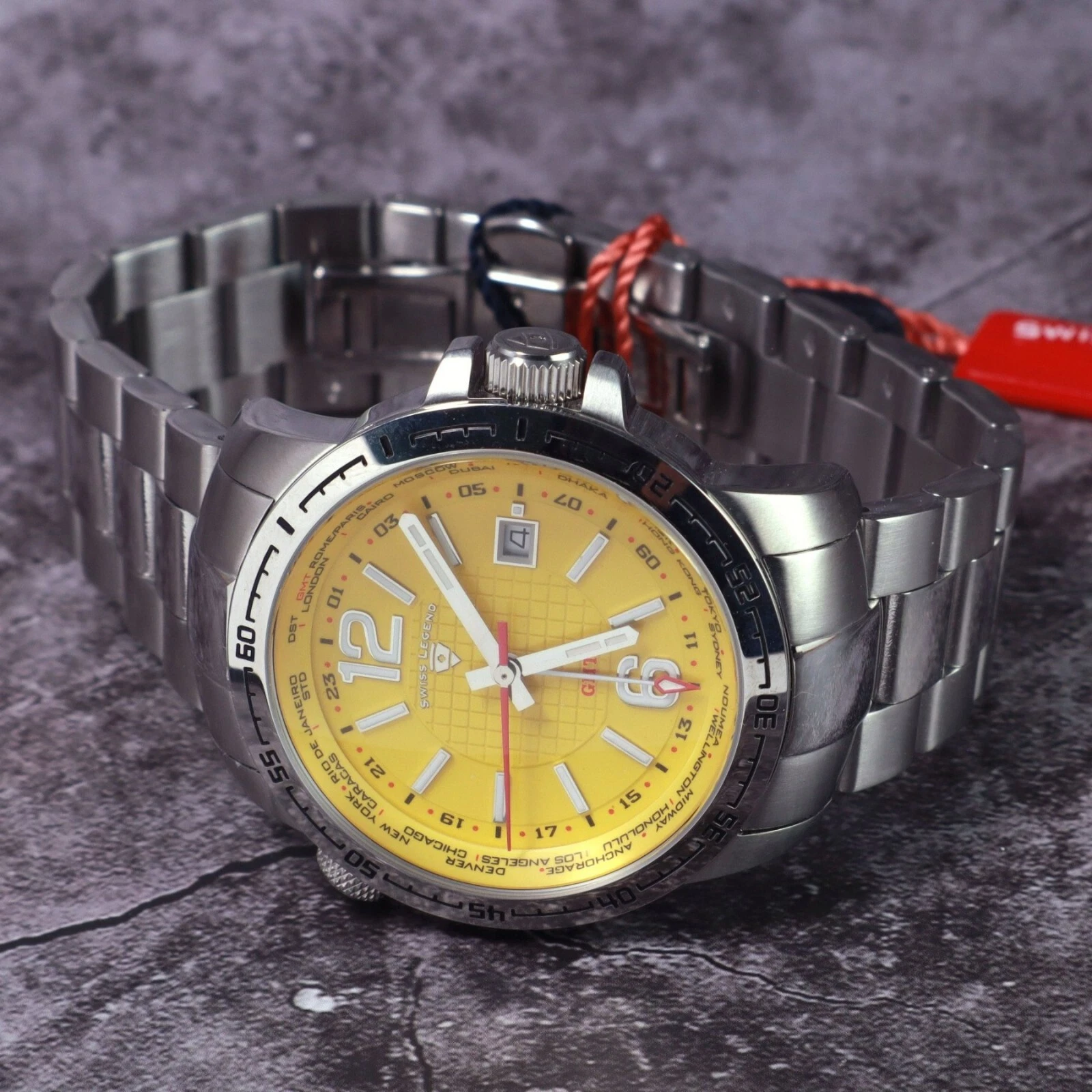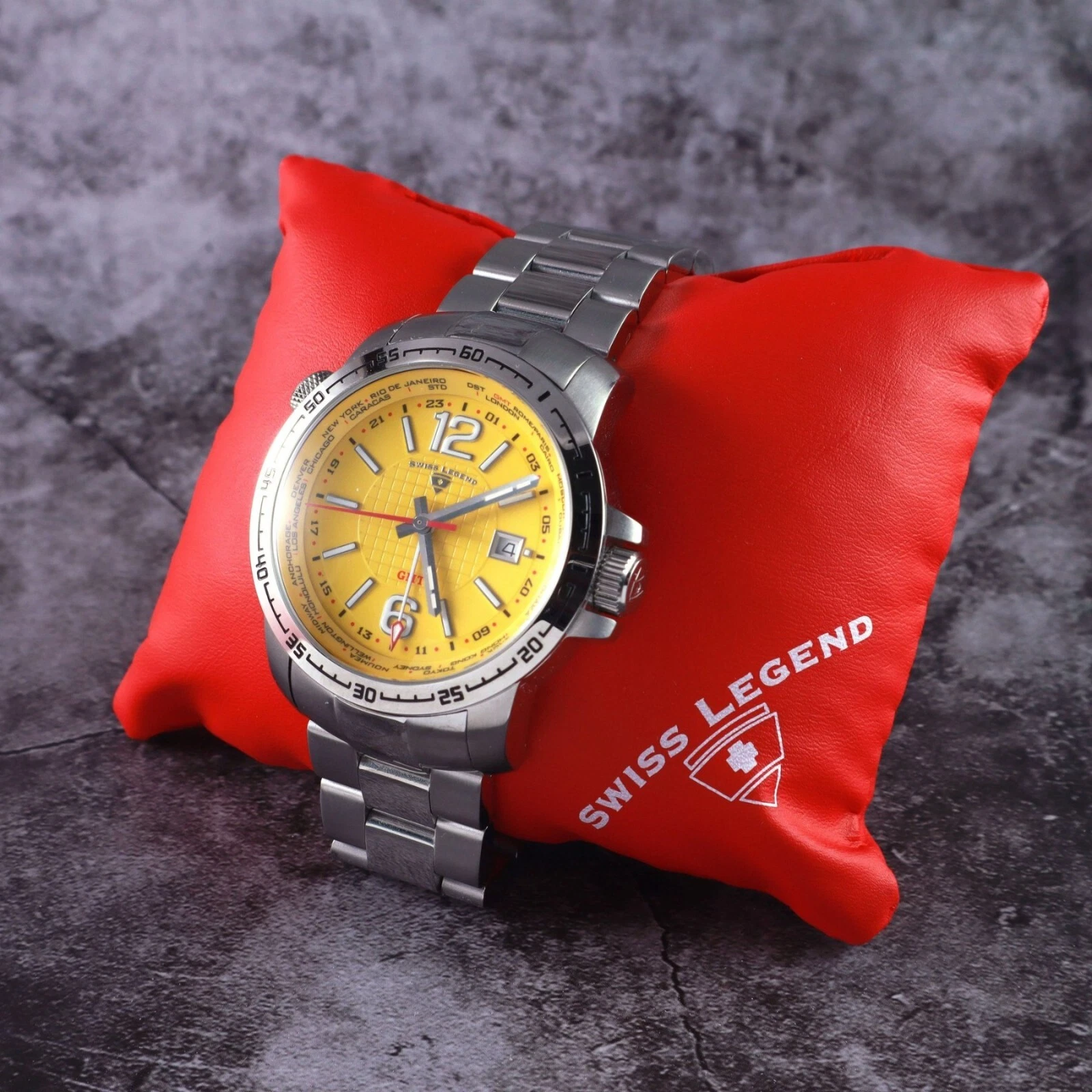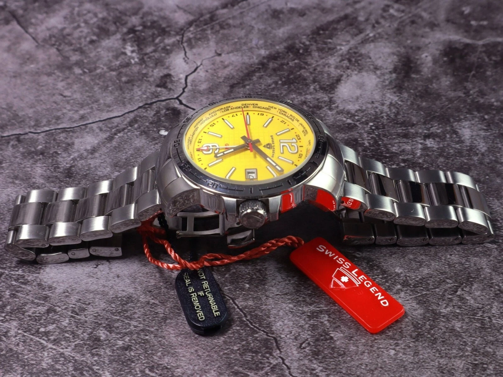 Swiss Legend World Timer Yellow Dial Watch.
