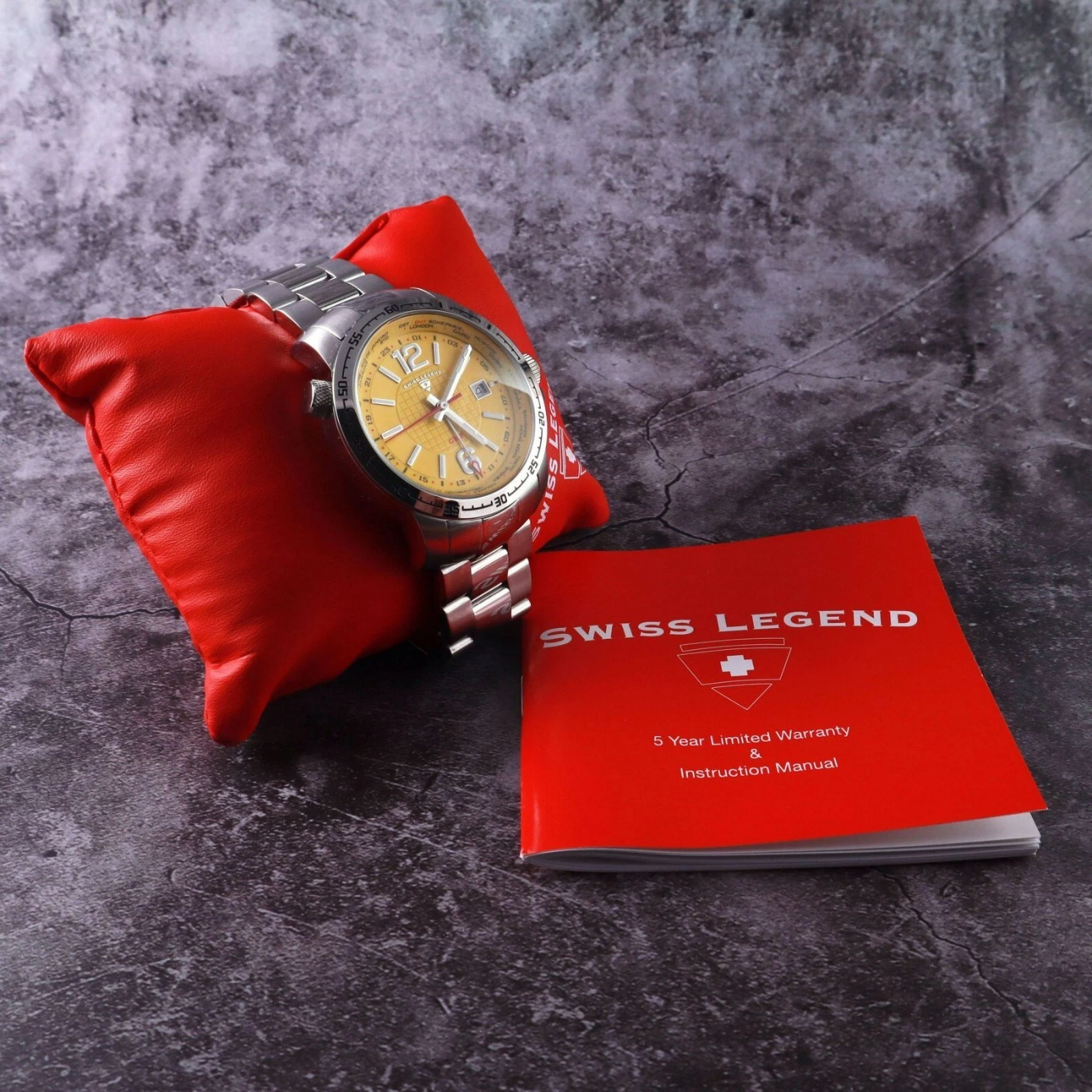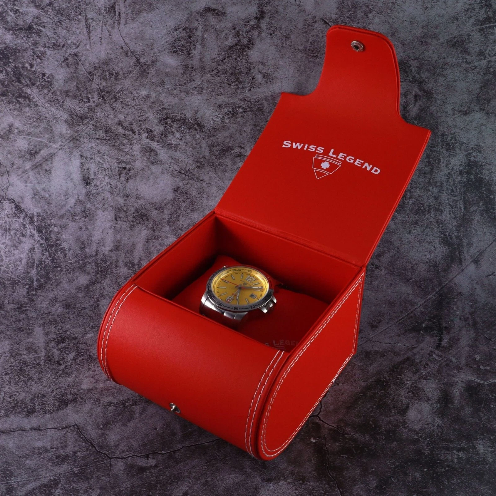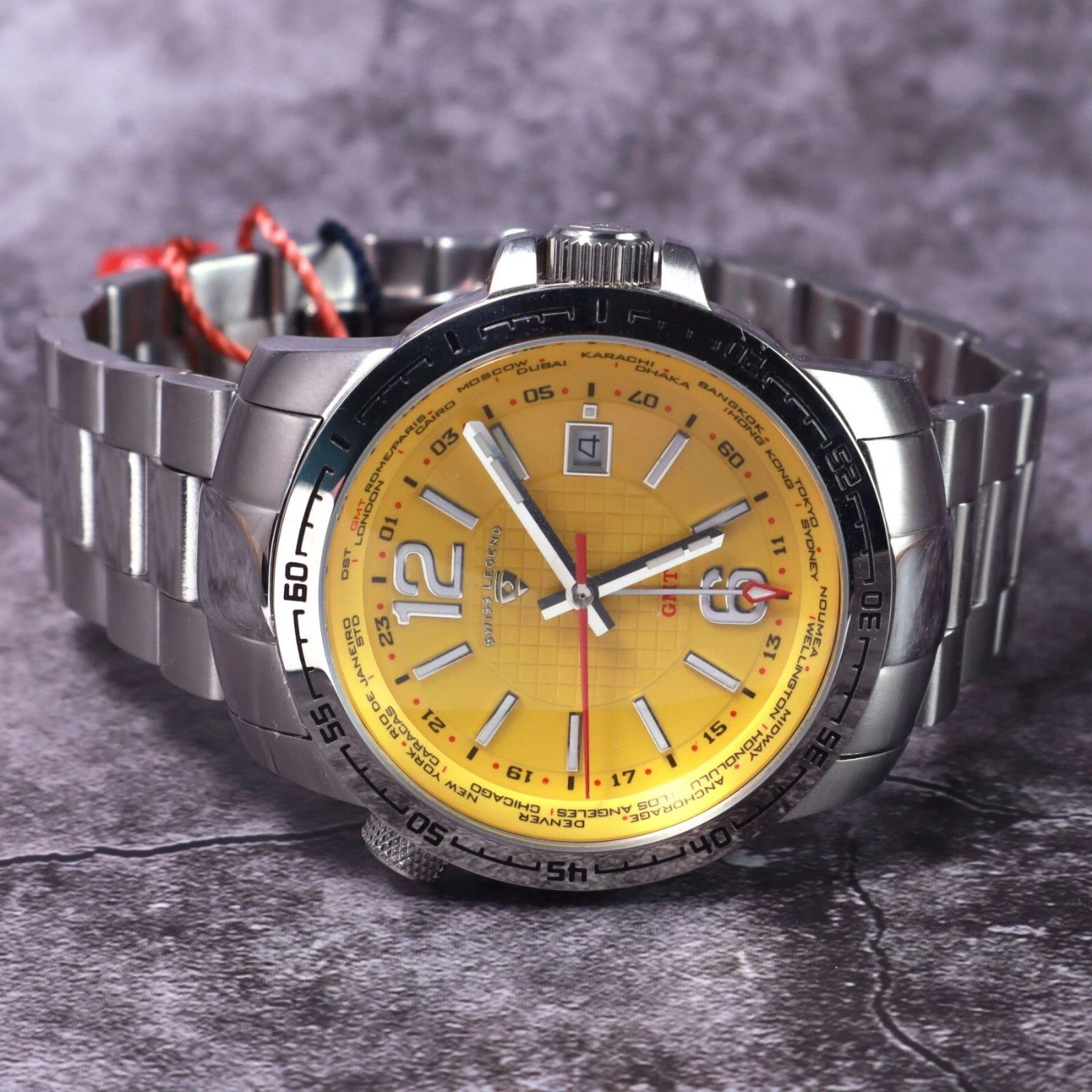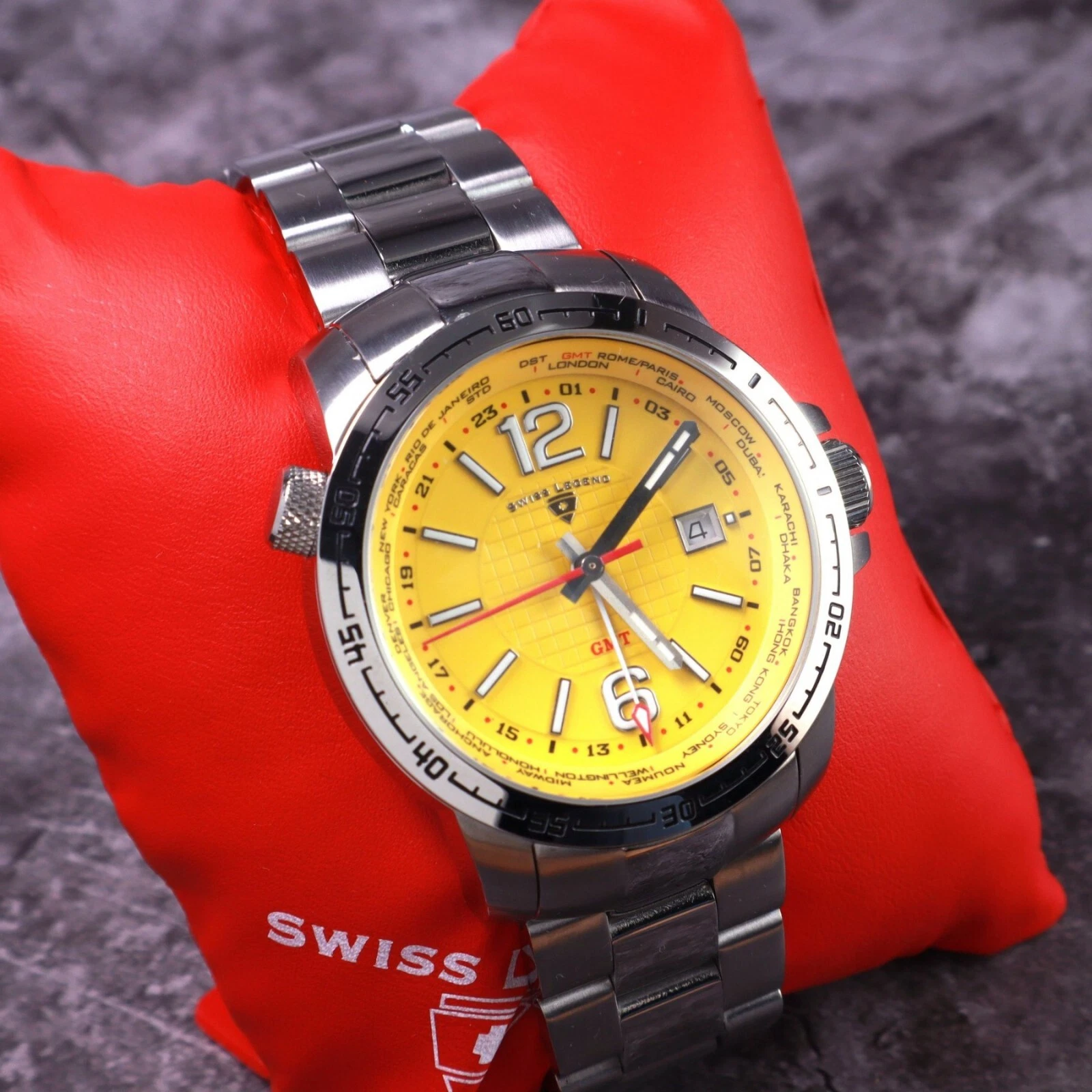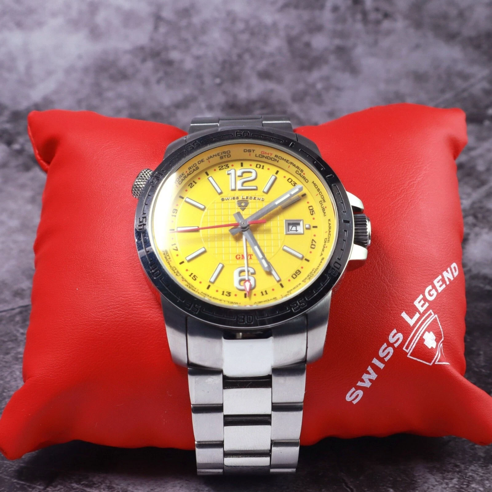 Swiss Legend World Timer Yellow Dial Watch.