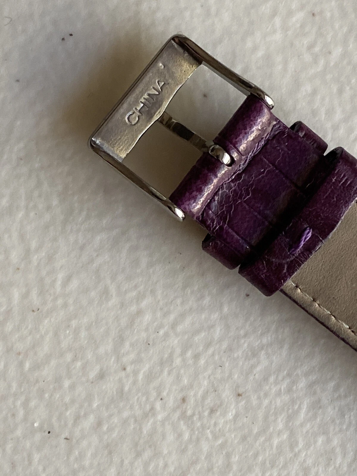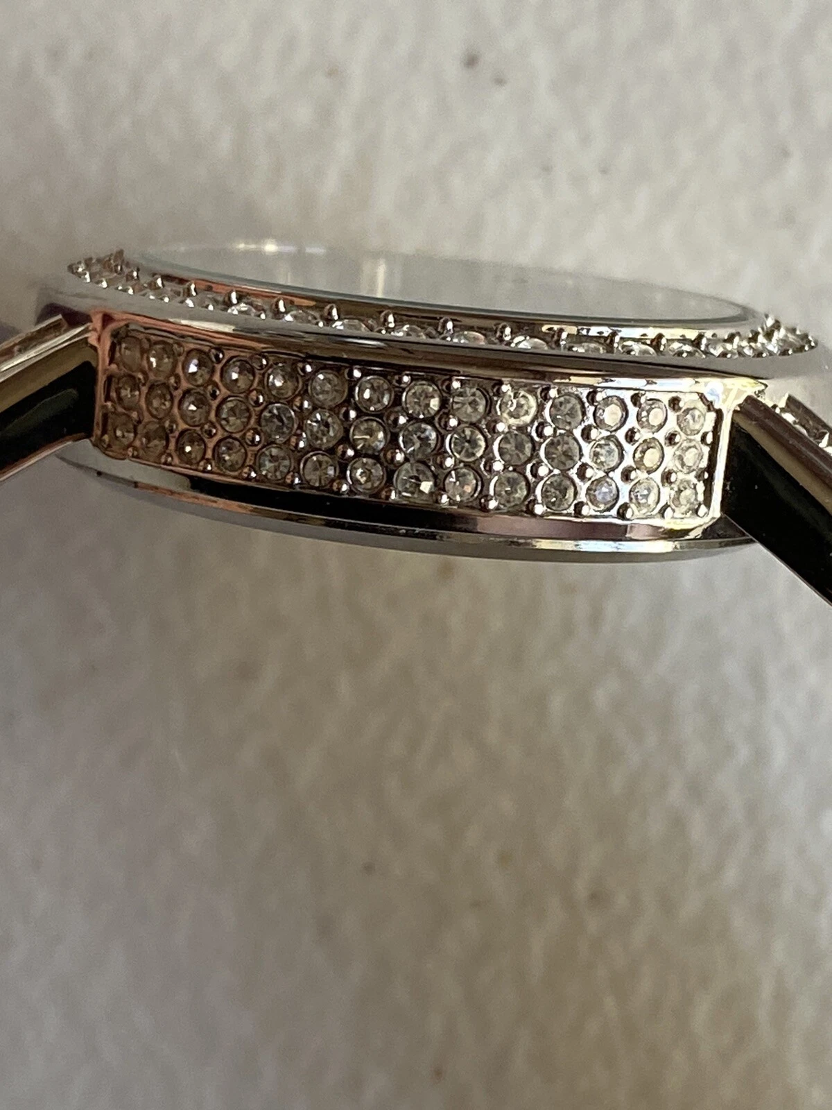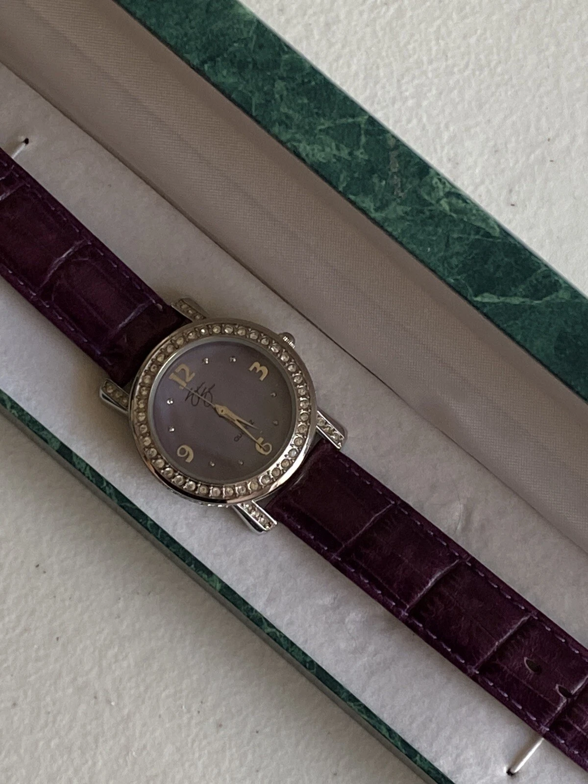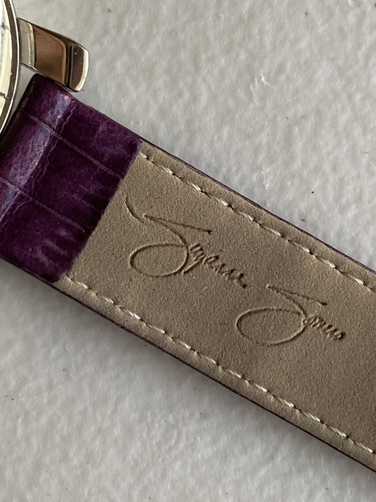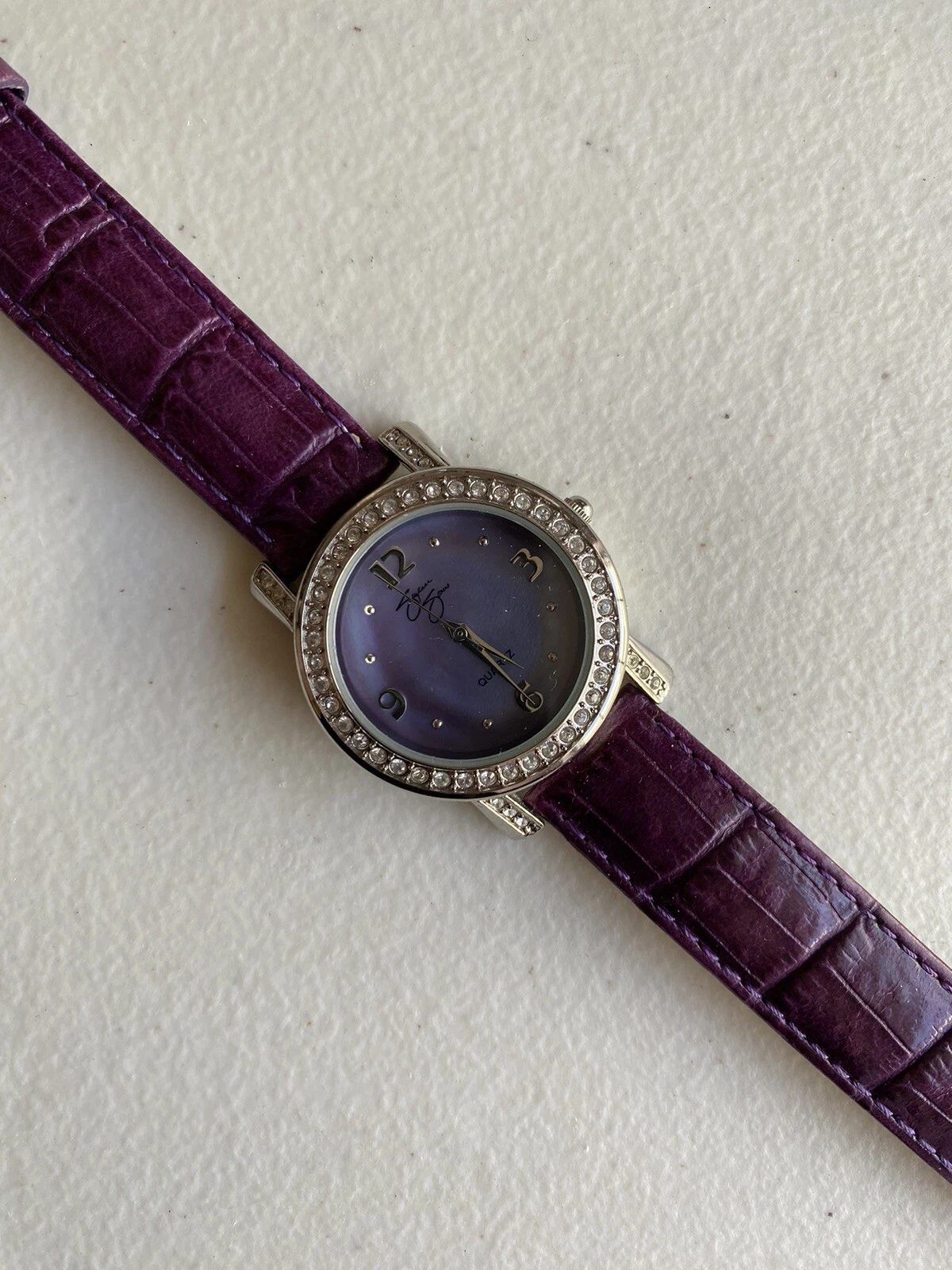 Suzanne Somers Crystal Watch Pave Bezel Round Japan Movement Purple Leather Band