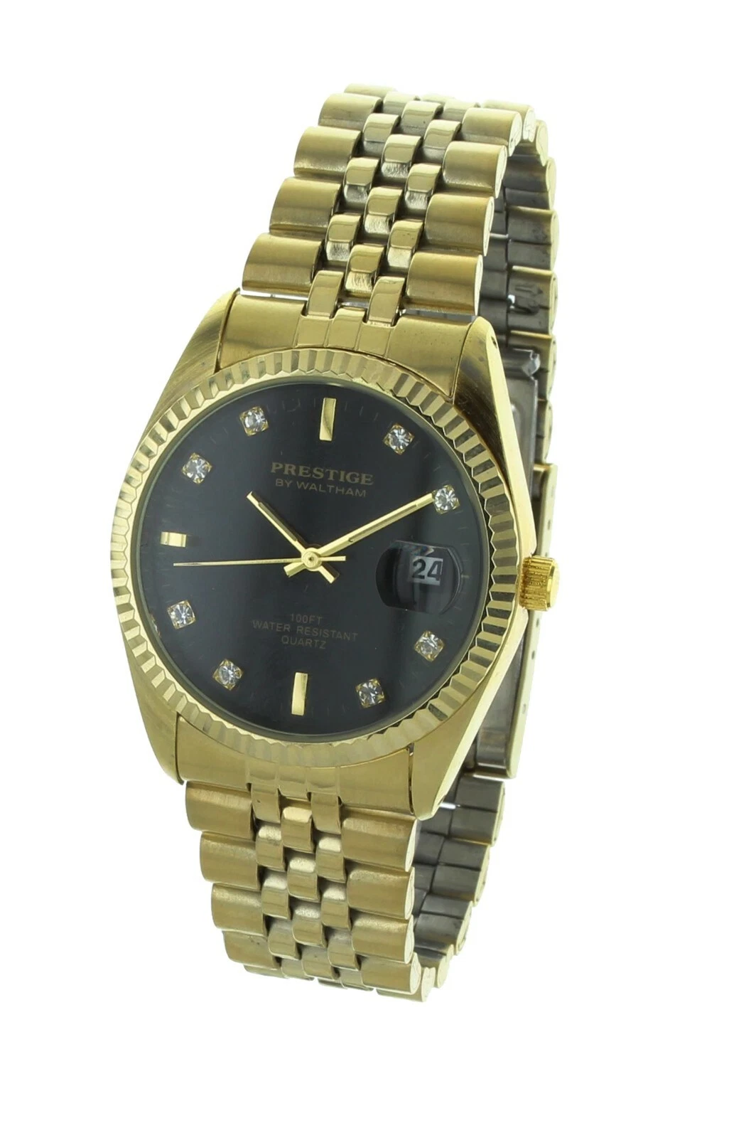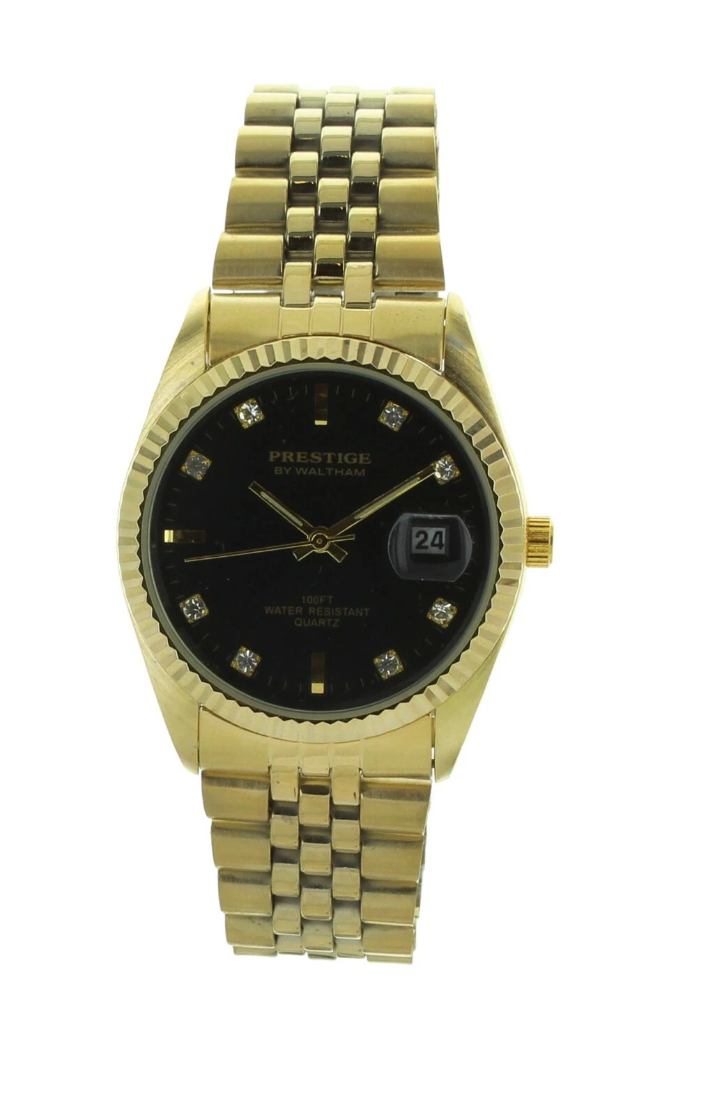 Men's casual Prestige watch Gold tone case and band with black dial PRE103