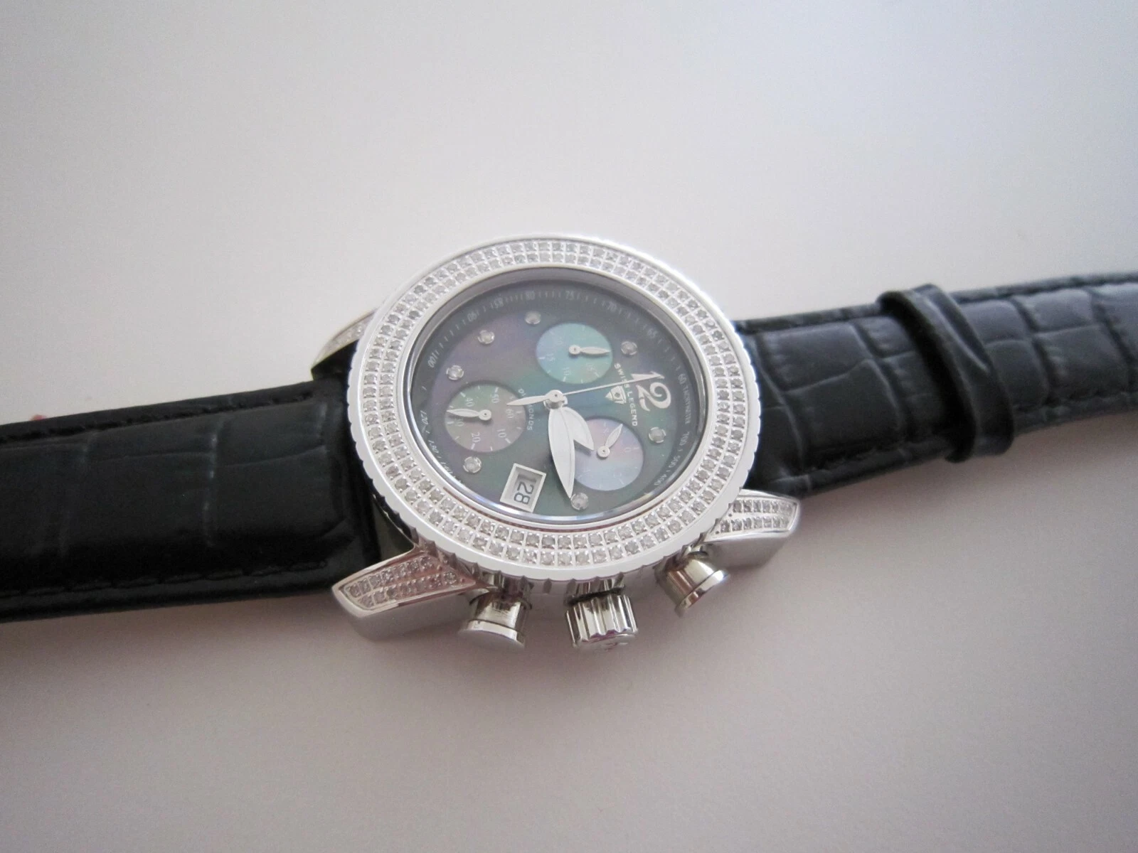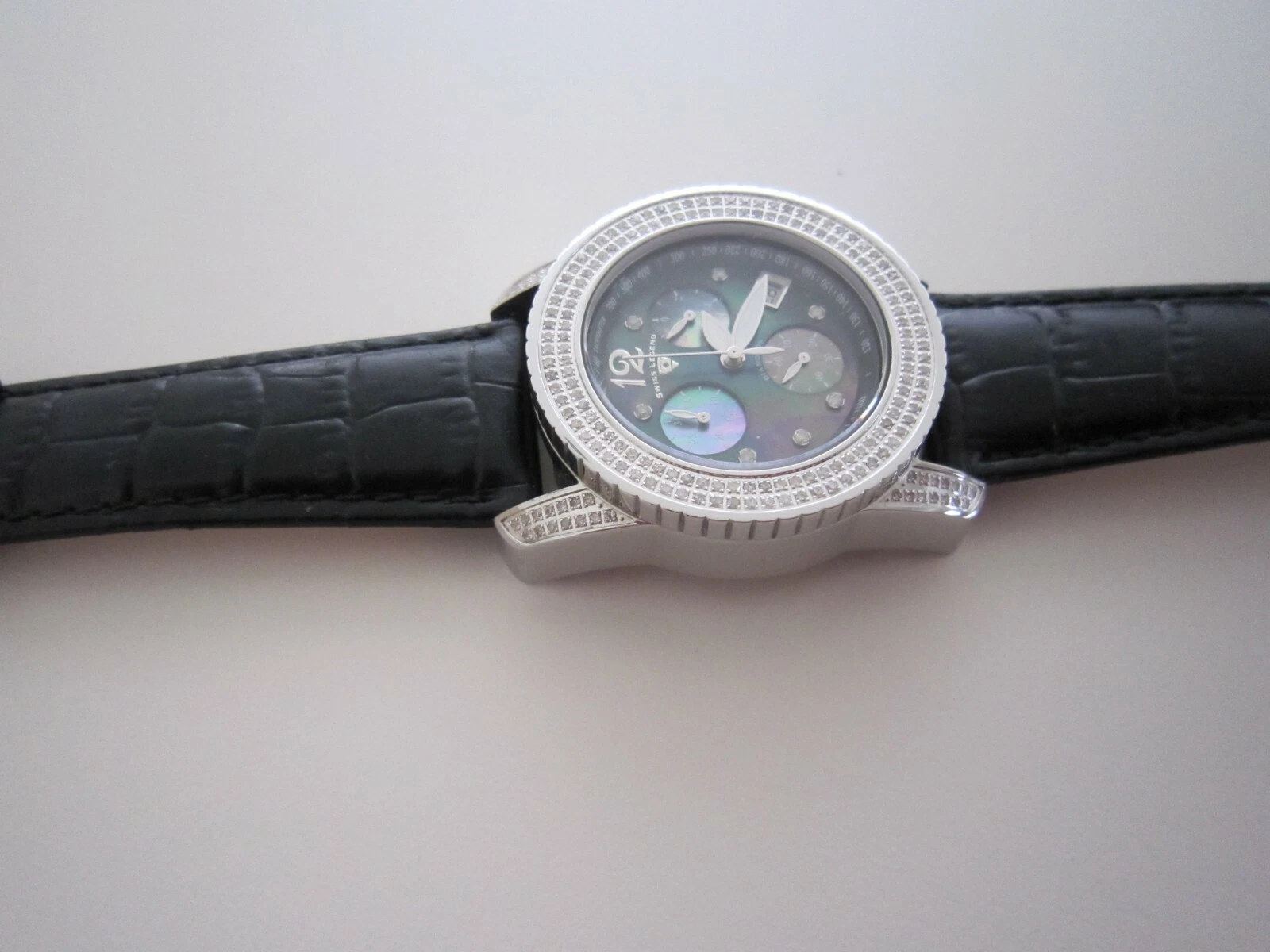 Swiss Legend Women's Diamond Commander Chronograph Leather Strap Watch
