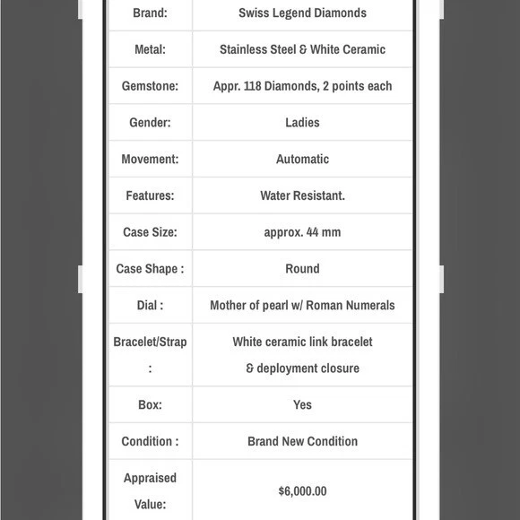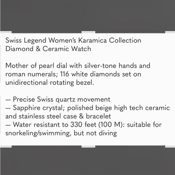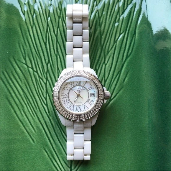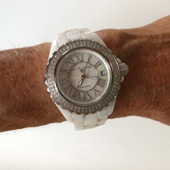 SWISS LEGEND Karamica Automatic Ceramic Wrist watch w/Pearl Dial & 118 Diamonds