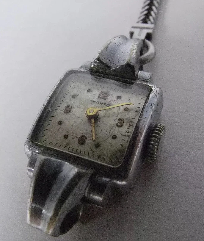 Vintage Pronto Ladies Watch Windup Running Stainless Steel Back Silver Tone