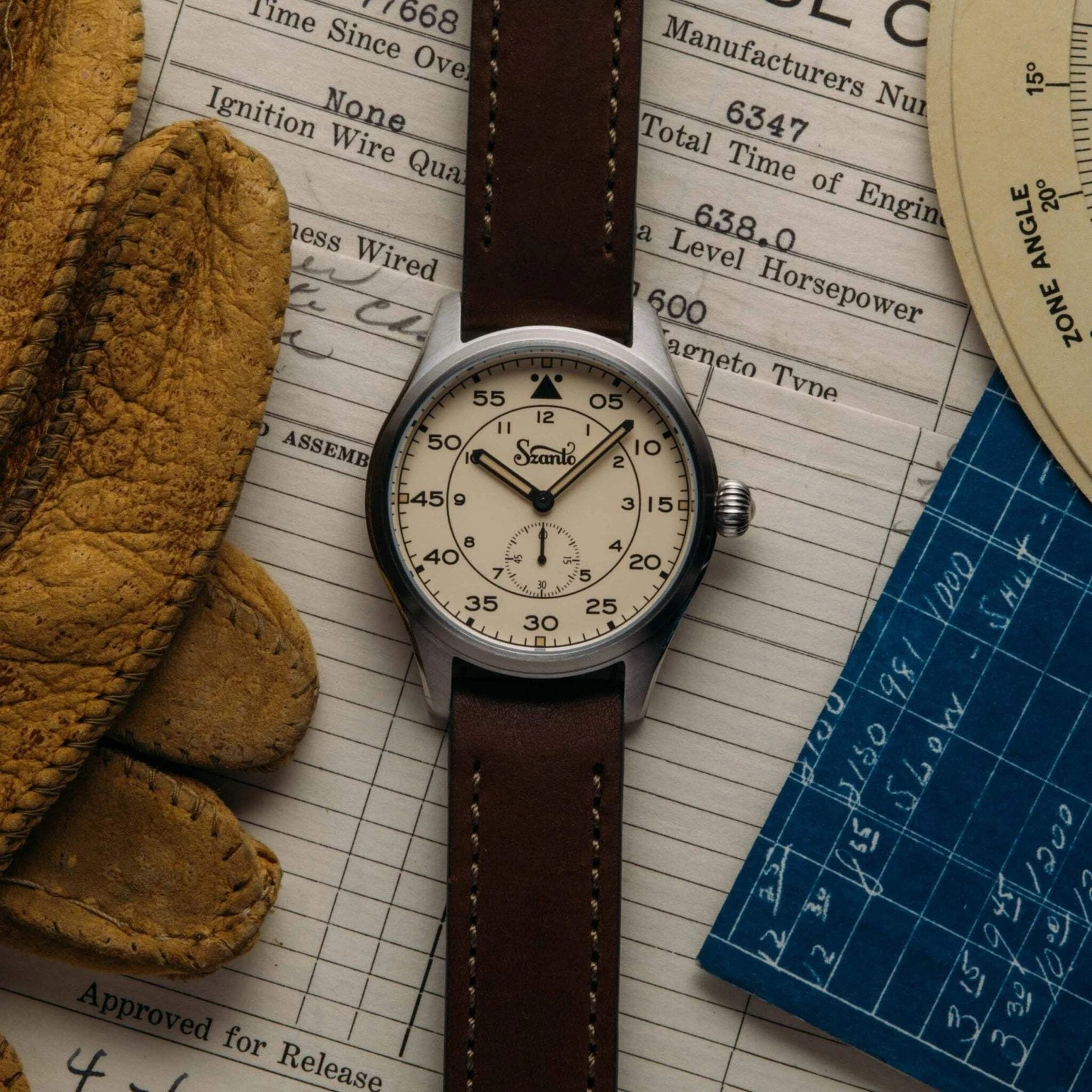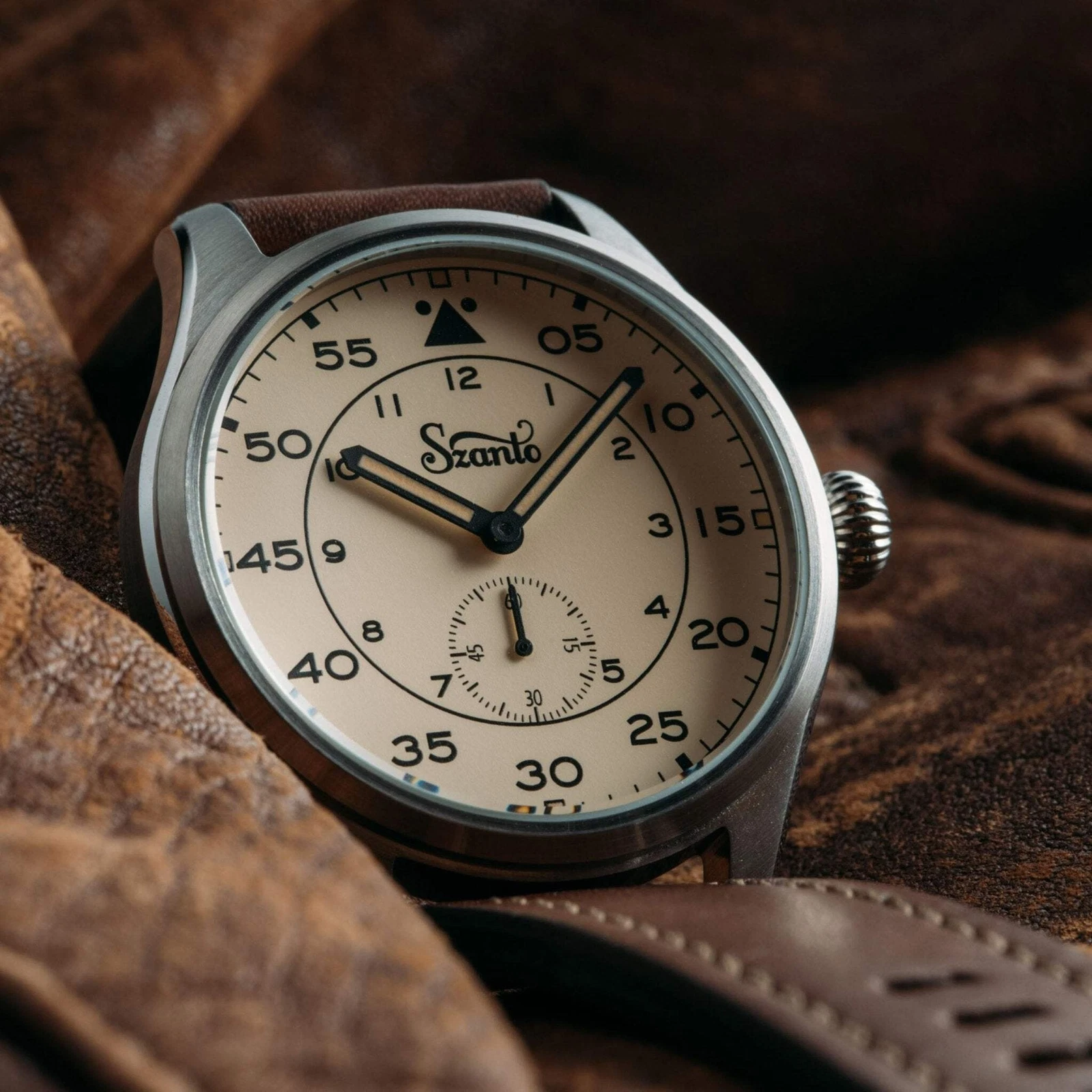 Szanto Heritage Aviator Steel Ivory Brown Watch - Brand New