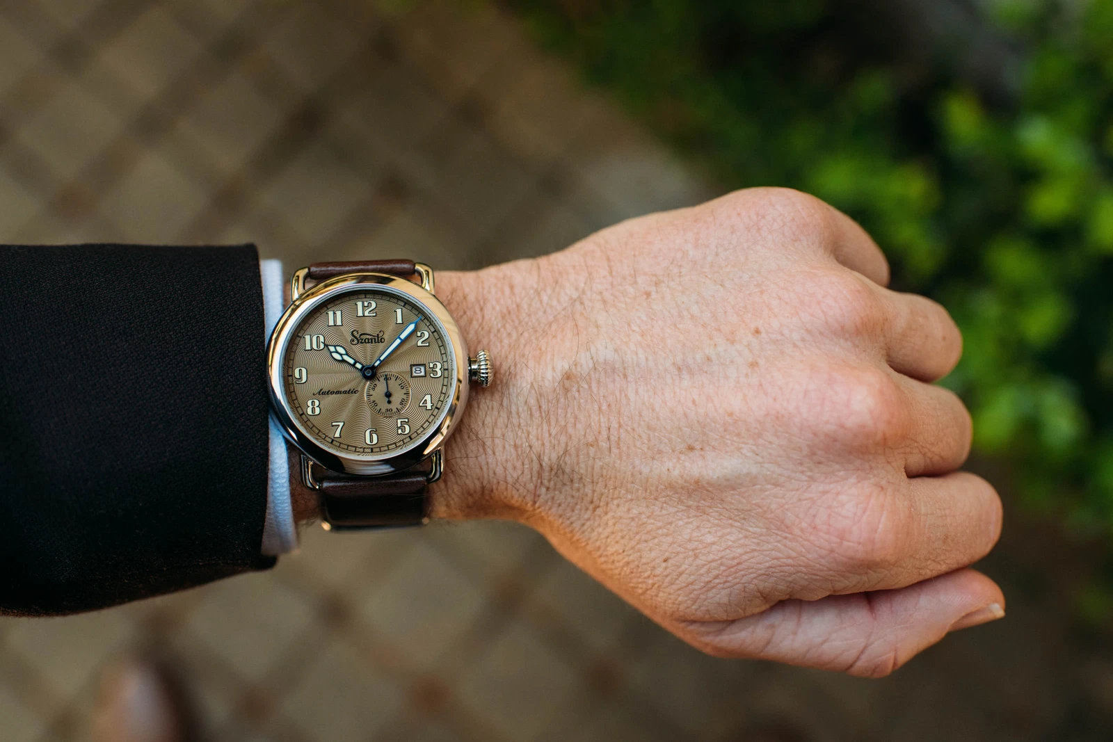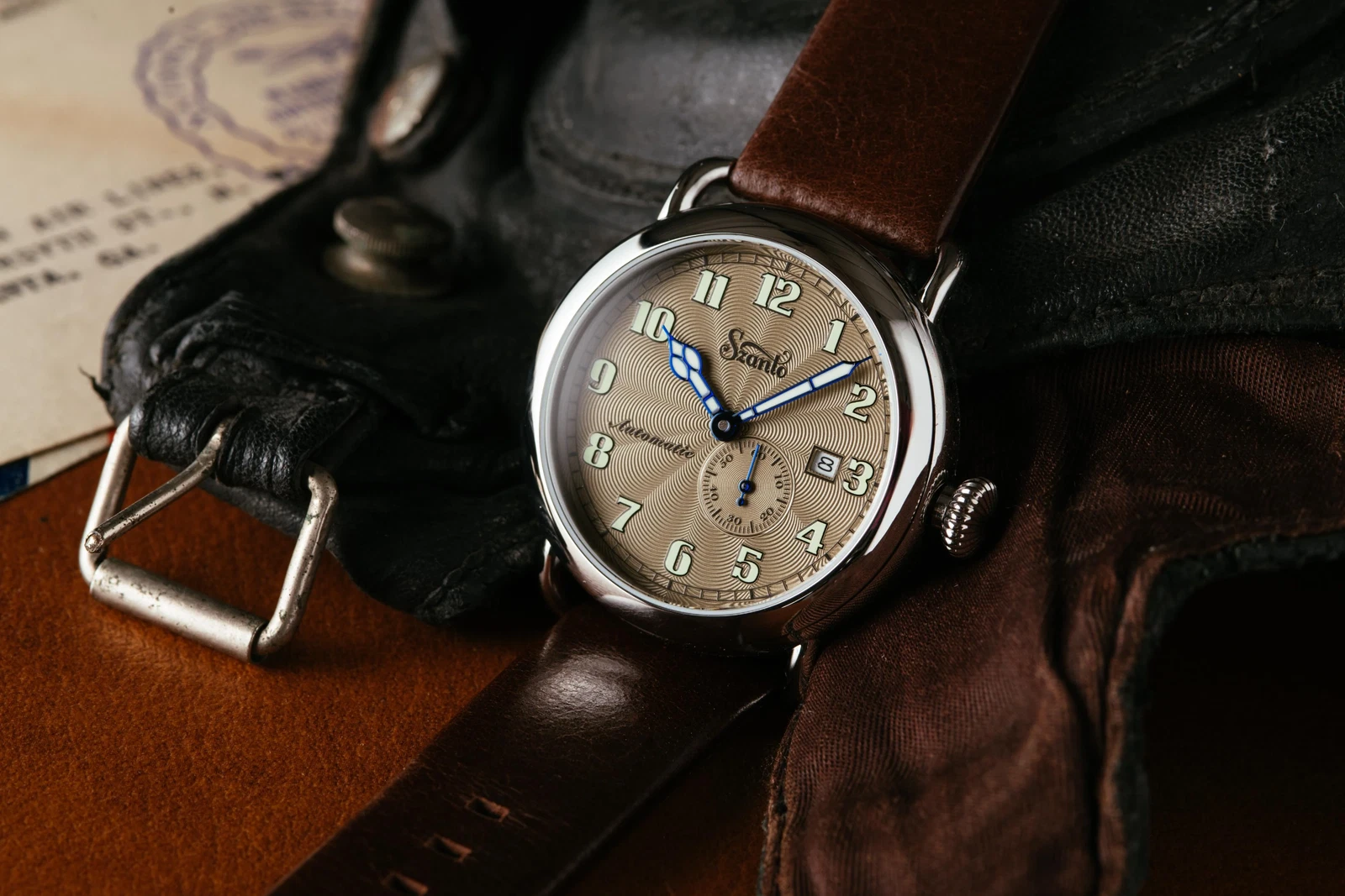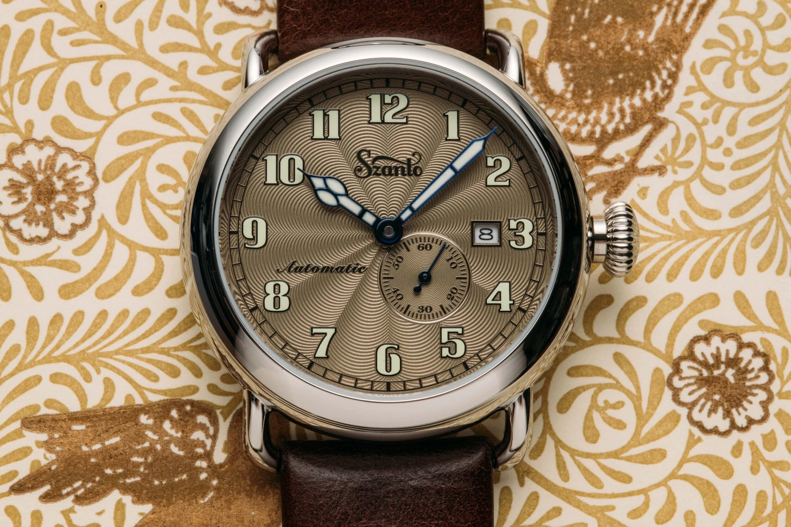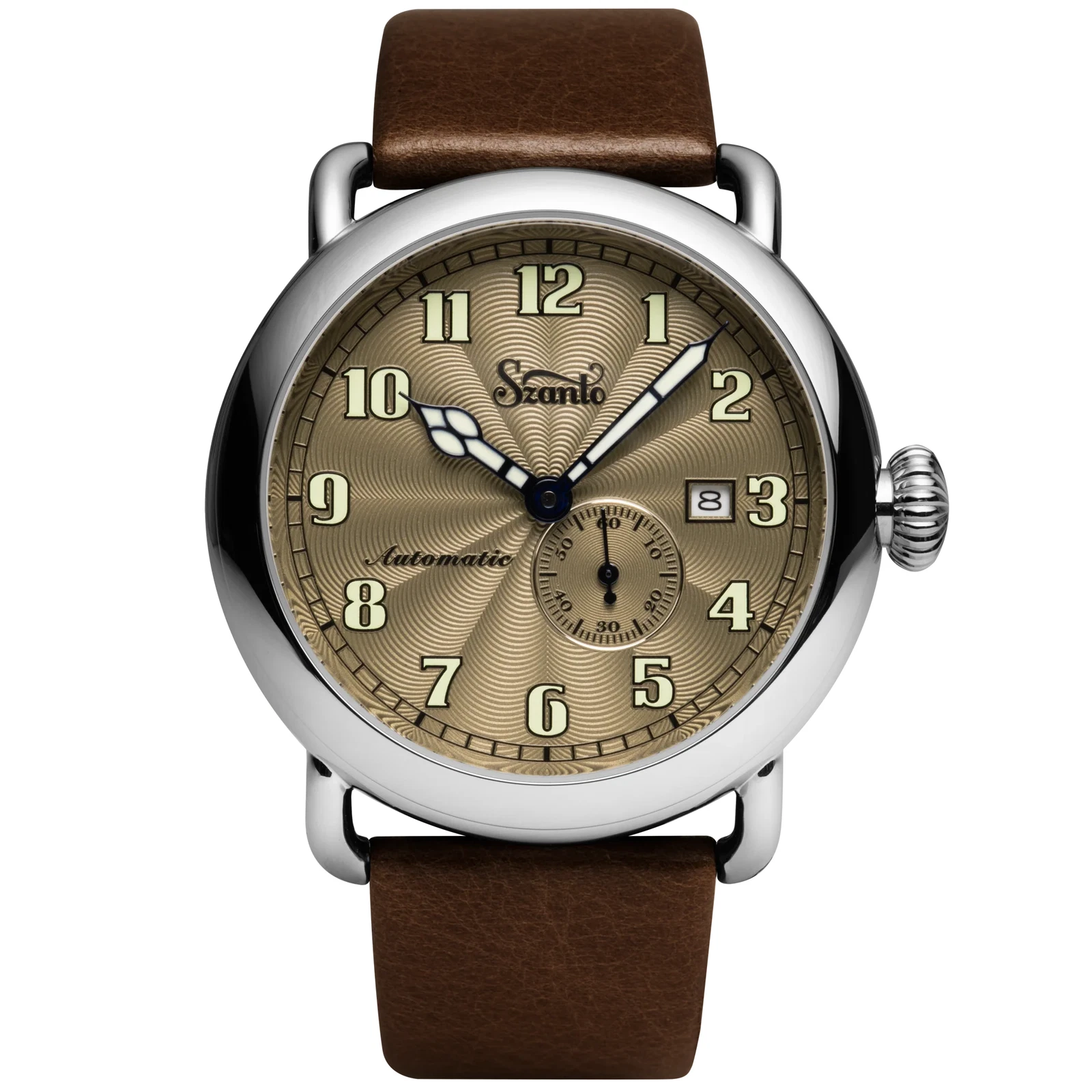 Szanto Men's Watch Officer Classic Round Automatic Brown Dial Strap SZ 6304E