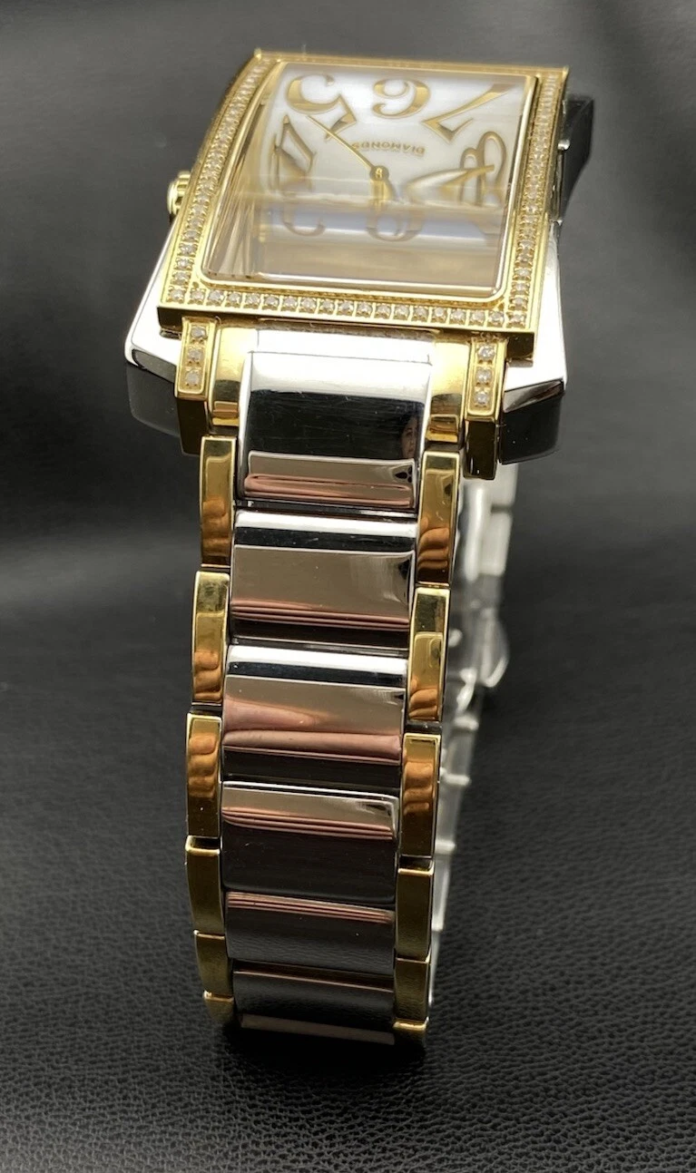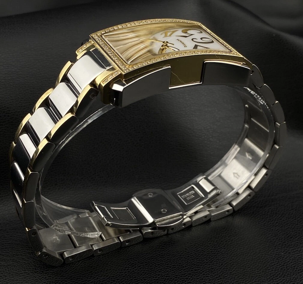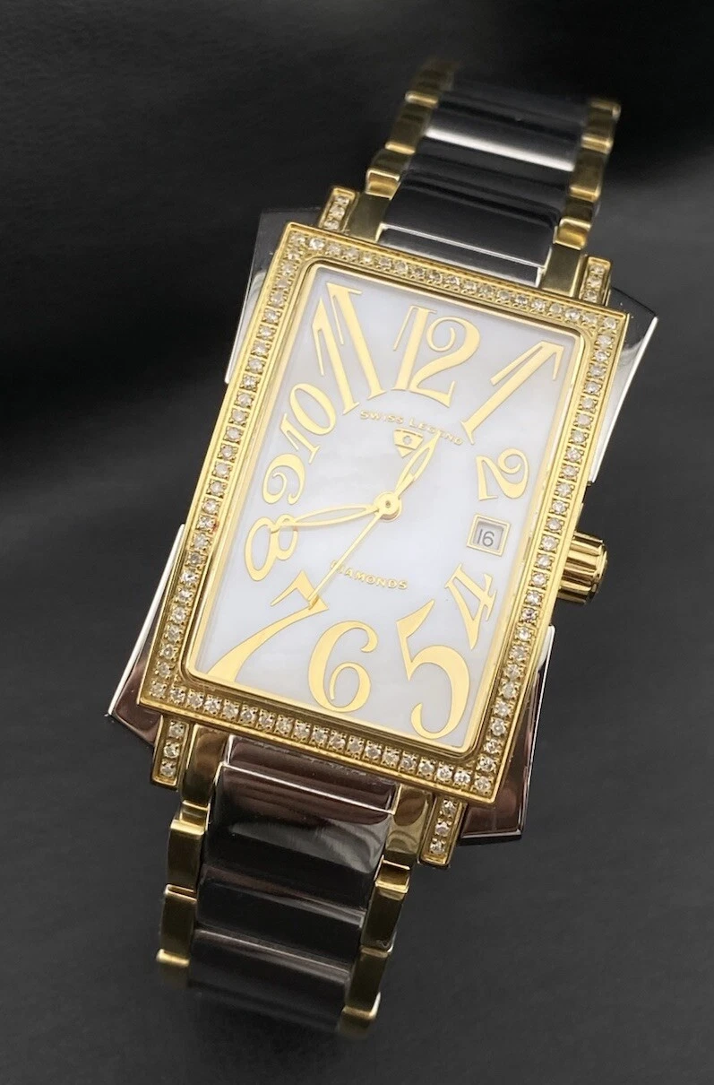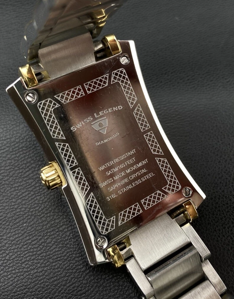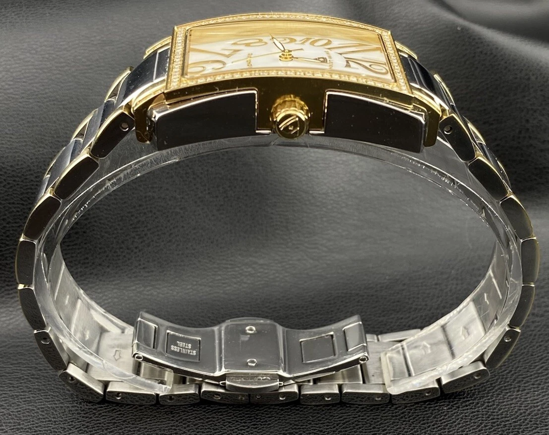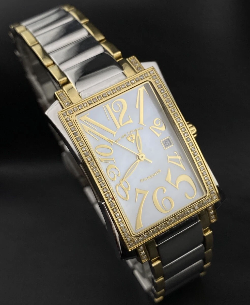 Swiss Legend Bella Diamond Pearlescent Date Dial Silver Gold Tank Chic Watch