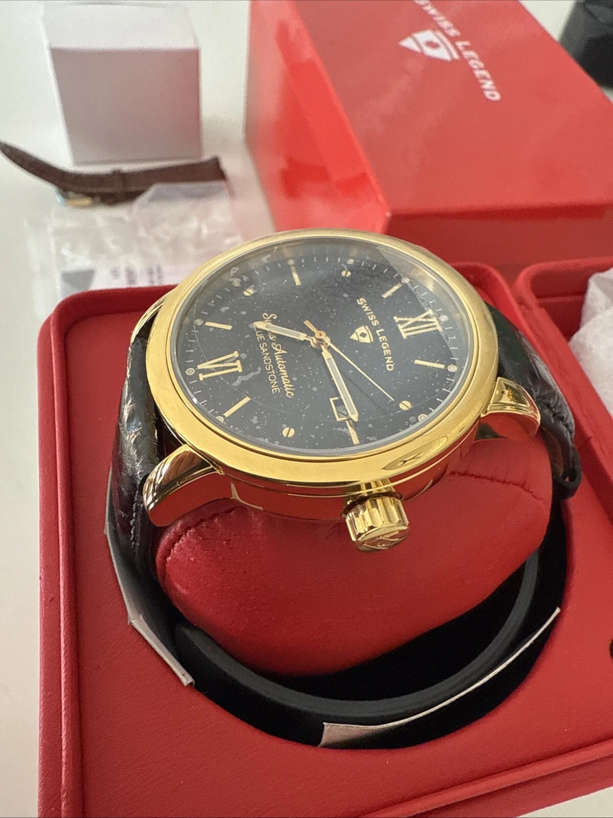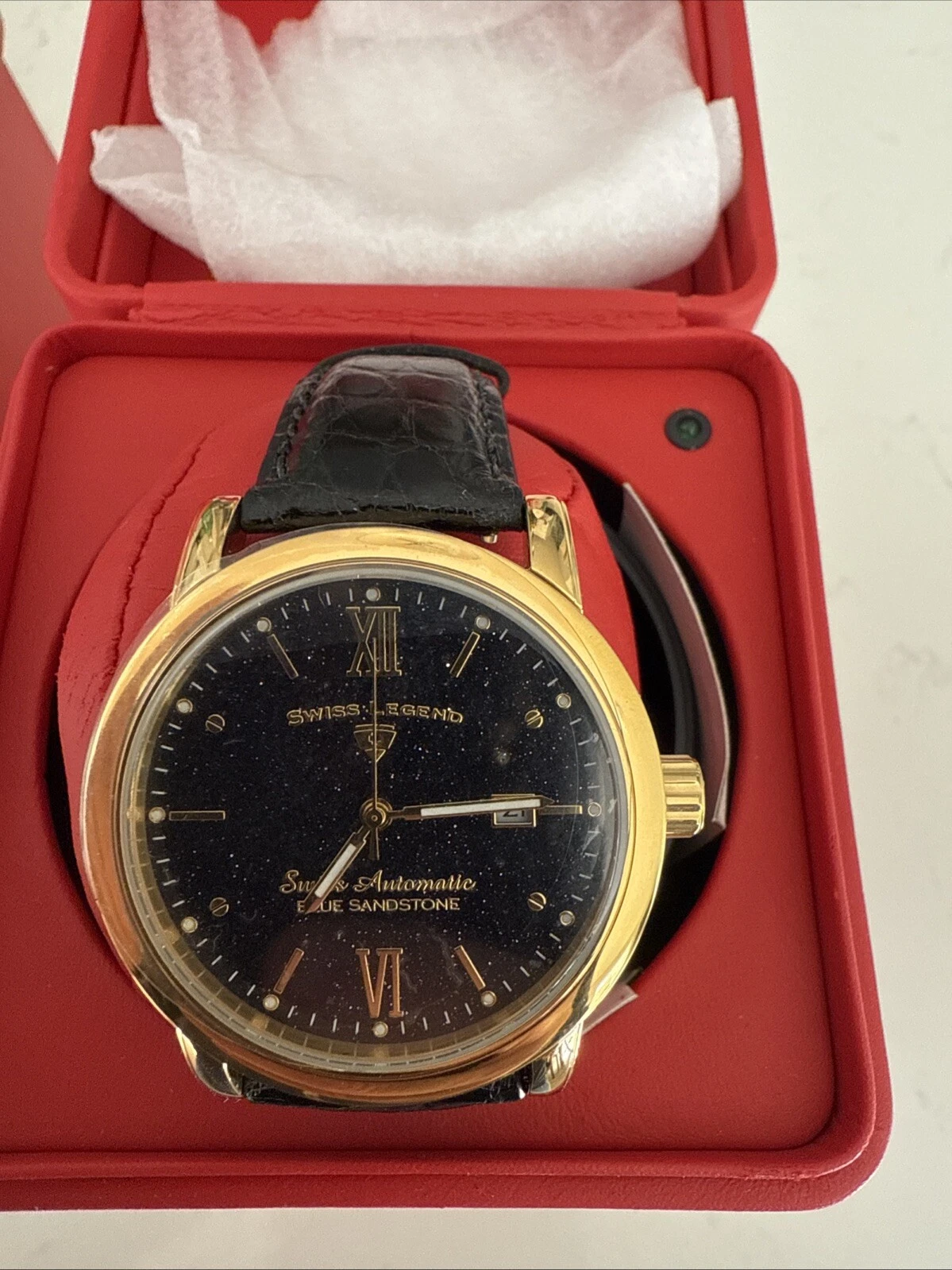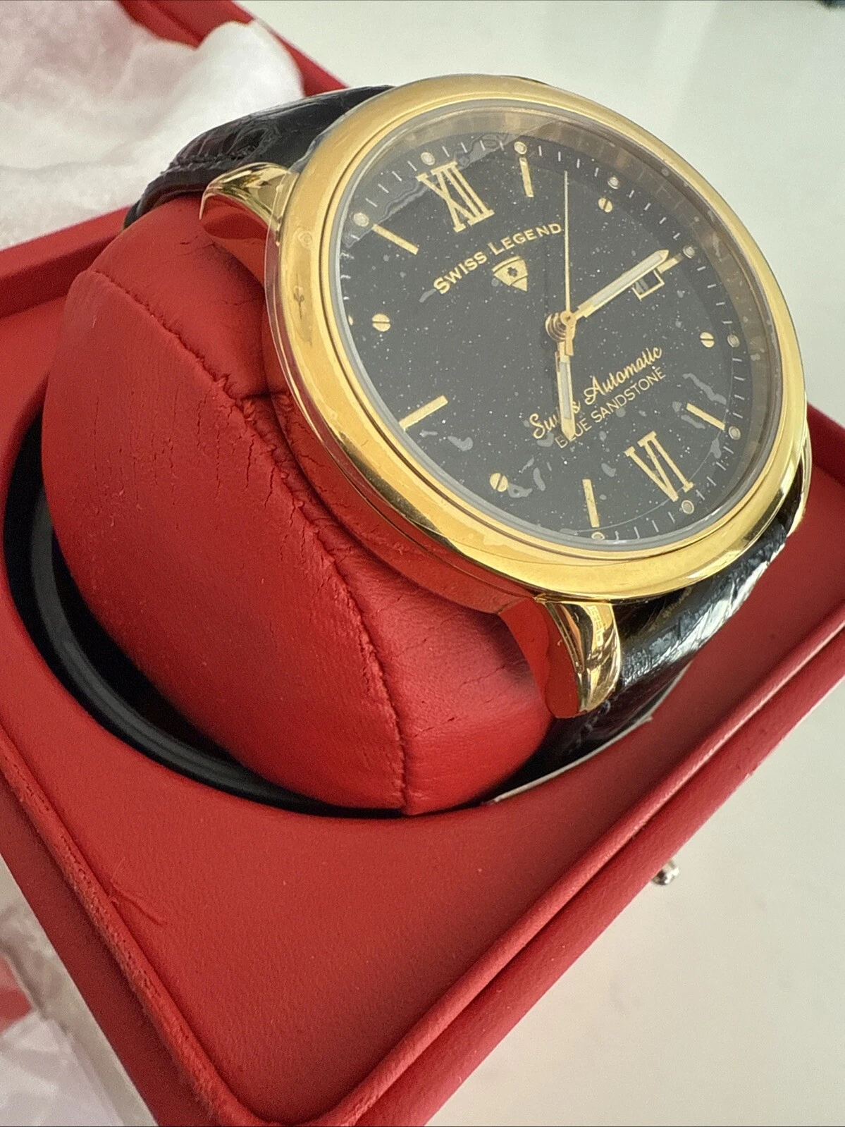 NEW RARE Swiss Legend Automatic Blue Sandstone Gold And Black Men's Watch NEW