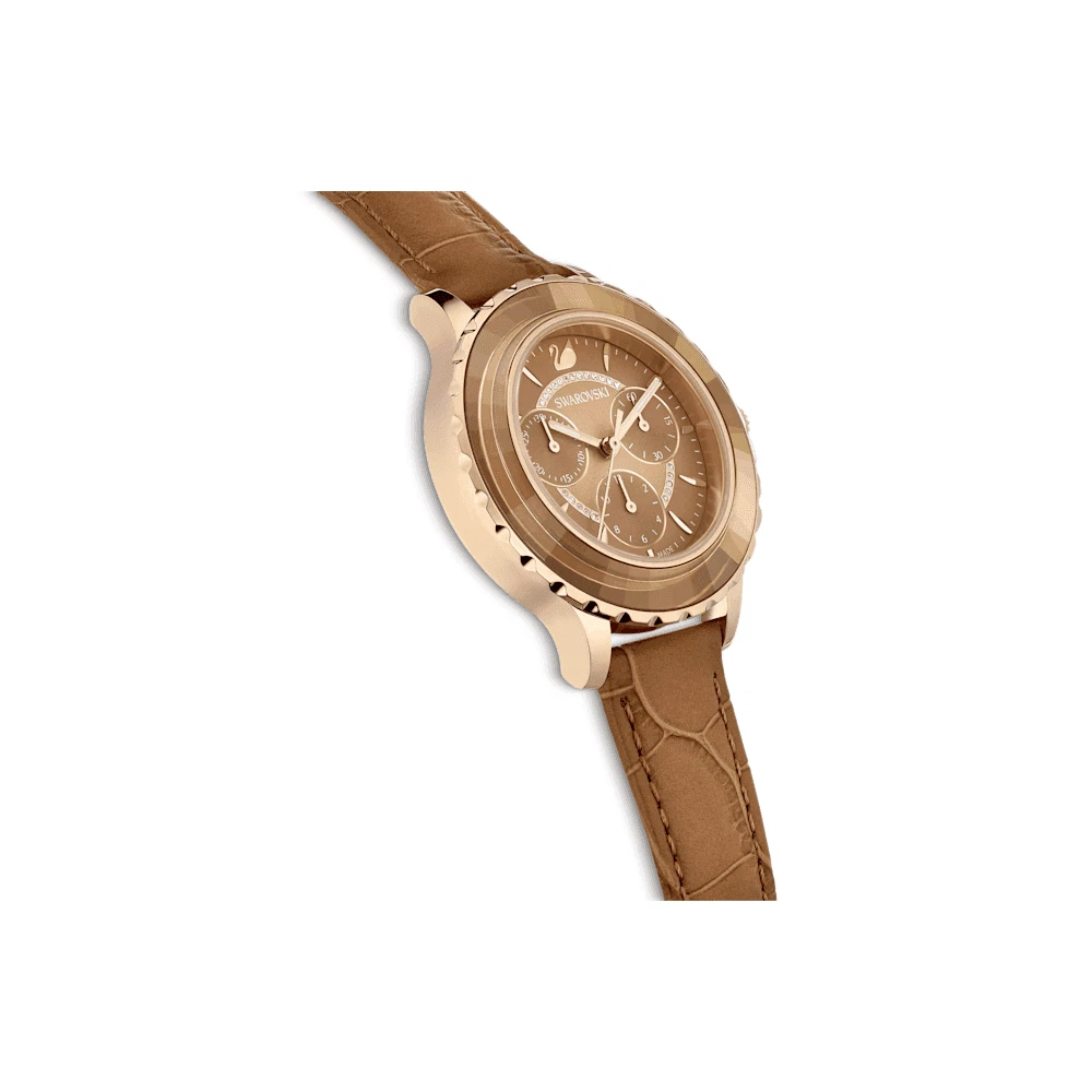 Swarovski Octea Lux Chrono Leather Strap Brown Gold-tone Finish Watch 5632260