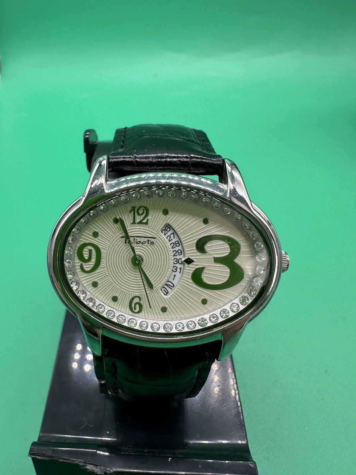 Talbots Ladies Watch Oval Quartz With Date/Crystals NEW BATTERY Leather Band