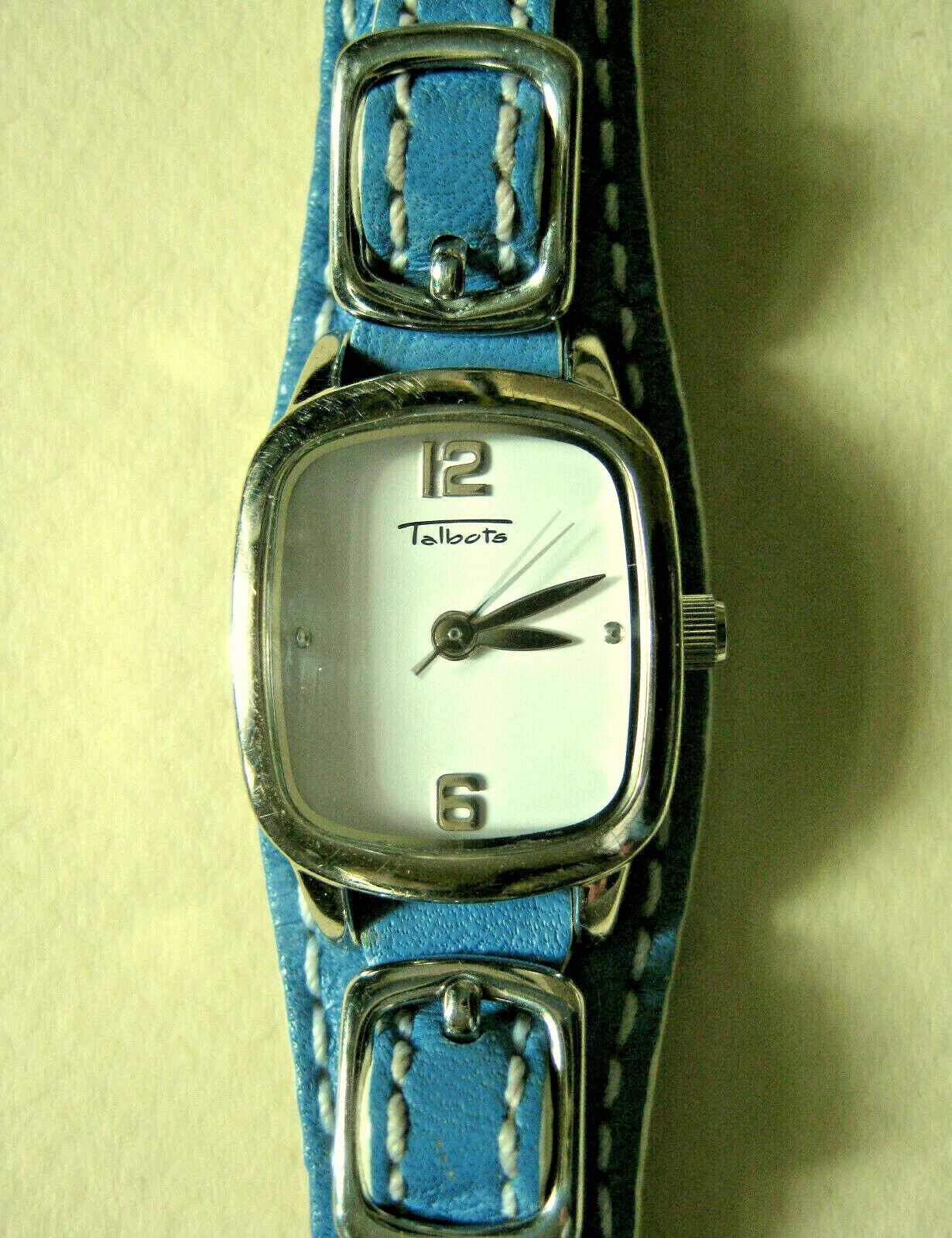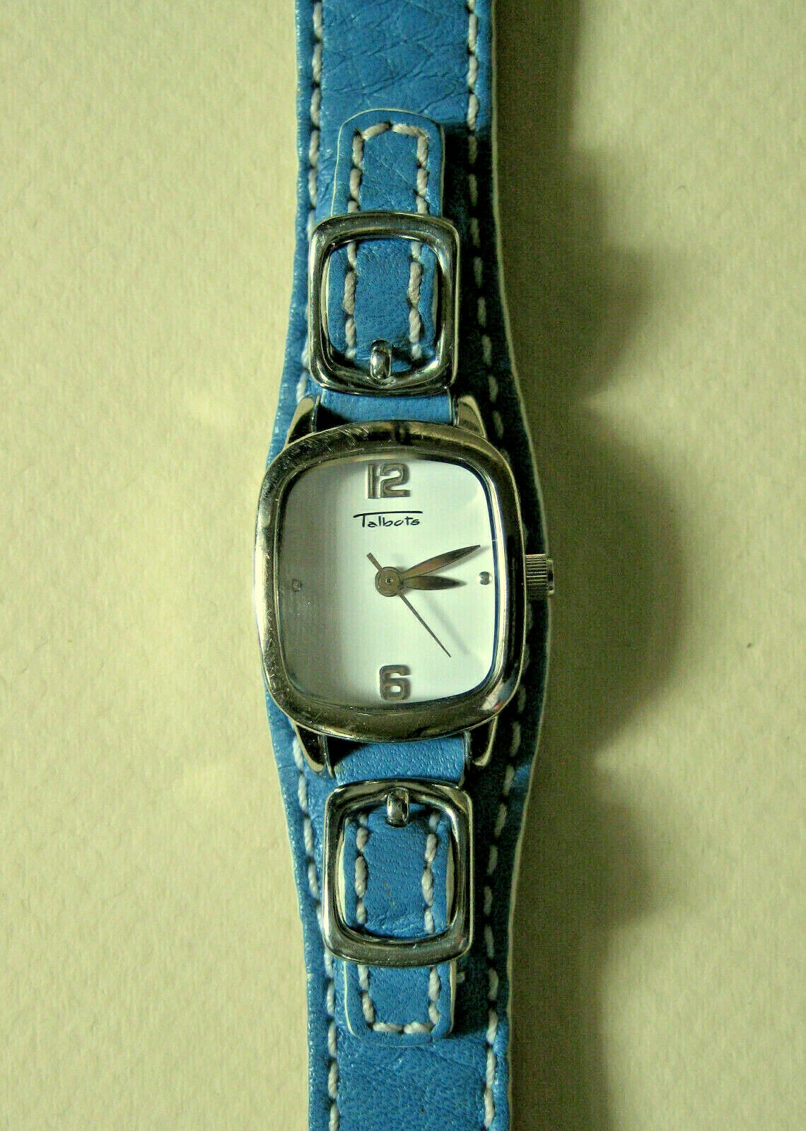 Talbots Women's Quartz Wristwatch Buckled Dial Blue Leather Band TA-1072