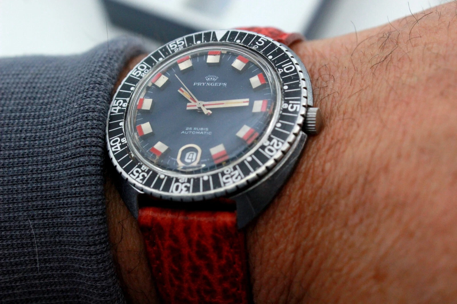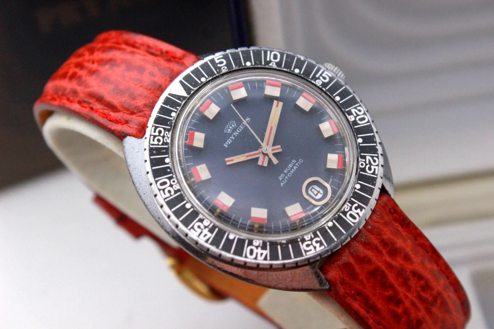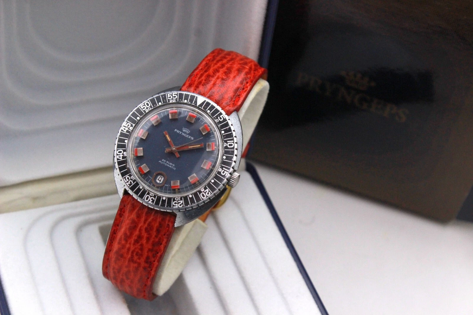PRYNGEPS Skin Diver CANDY DIAL 5 ATM INCABLOC Automatic ETA 2772 -70's- BOX