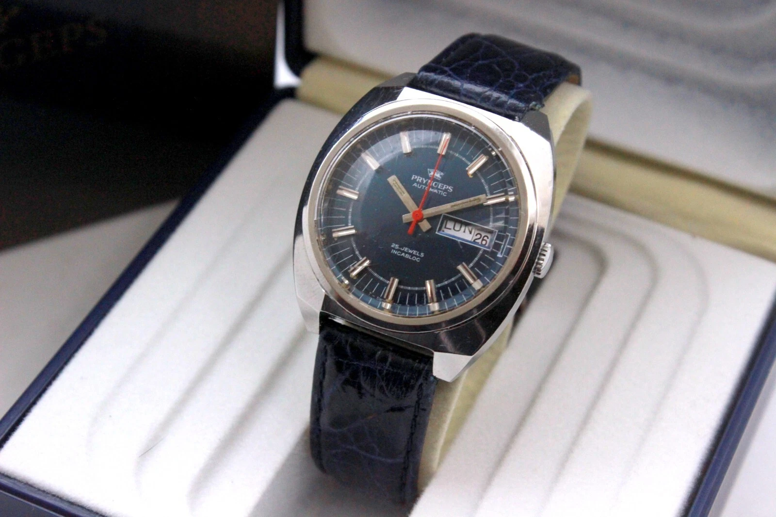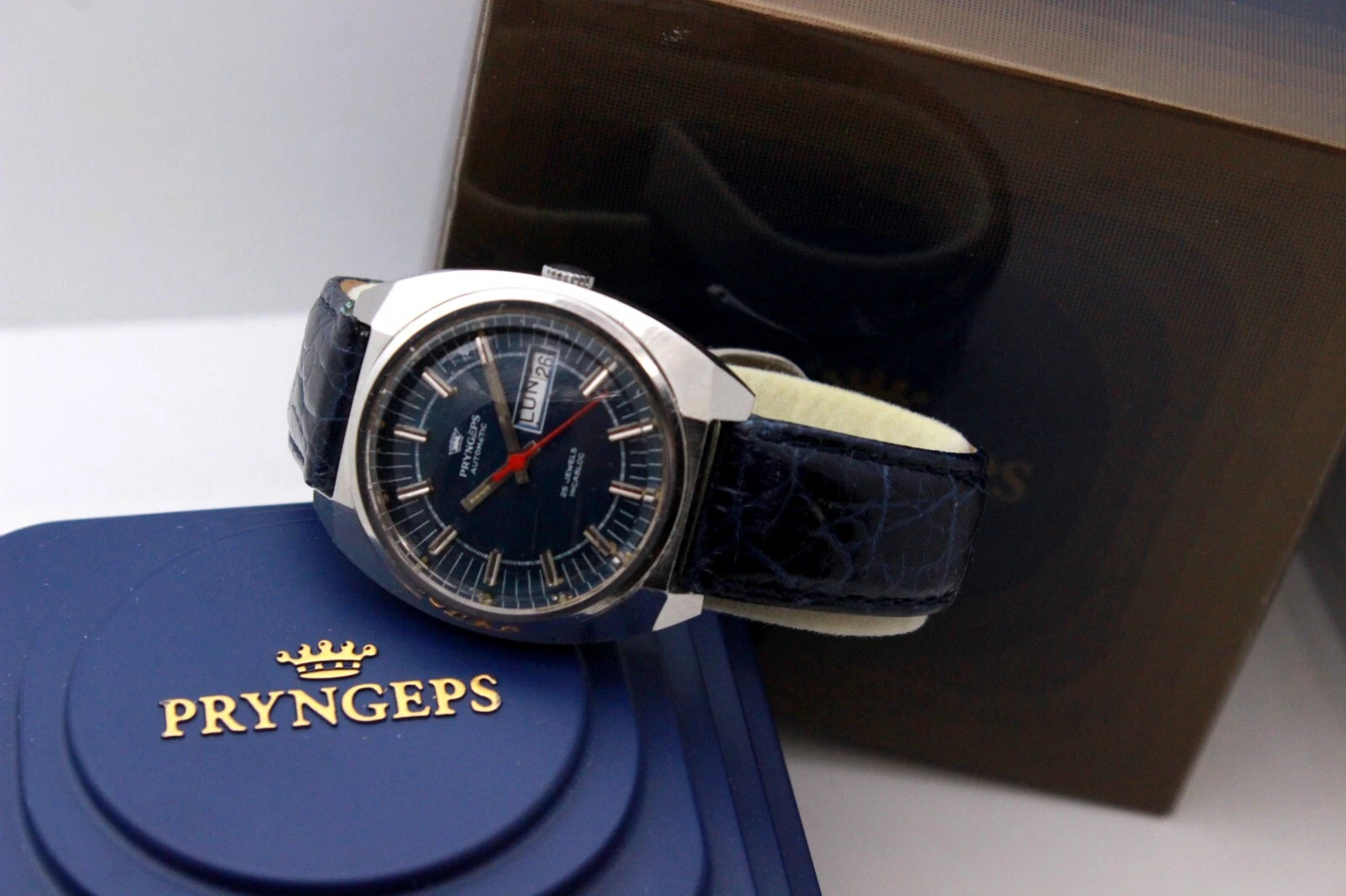 PRYNGEPS 1931 Cushion-40 mm-BLUE SOLEIL DIAL - STEEL- Automatic ETA 2782-70s-BOX