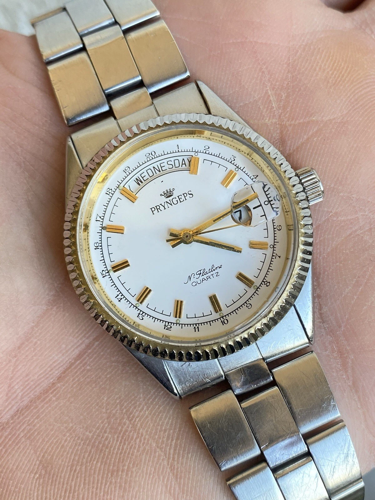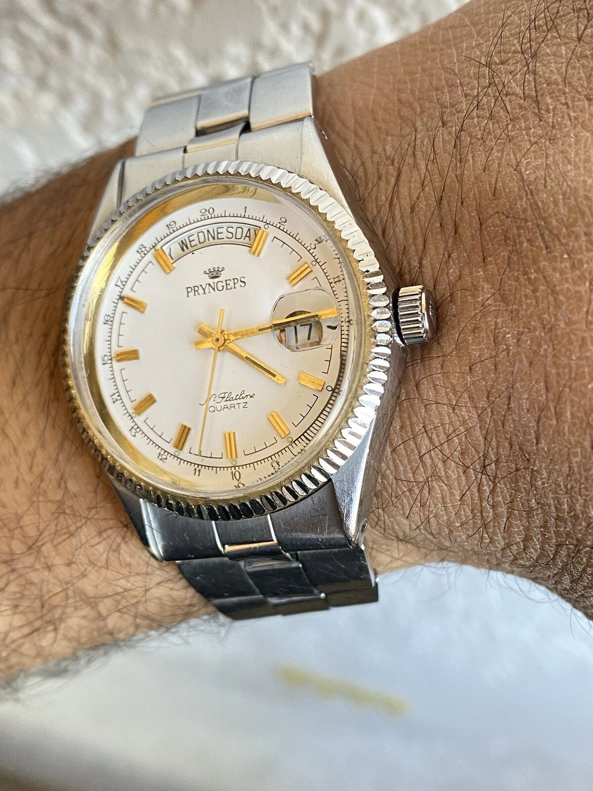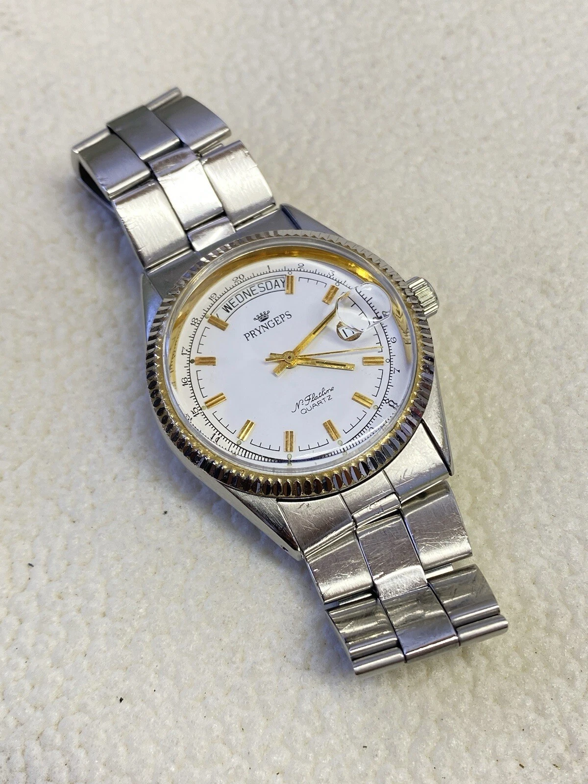 Pryngeps N. Flatline Quartz President Watch White Champagne Dial Watch Day-Date