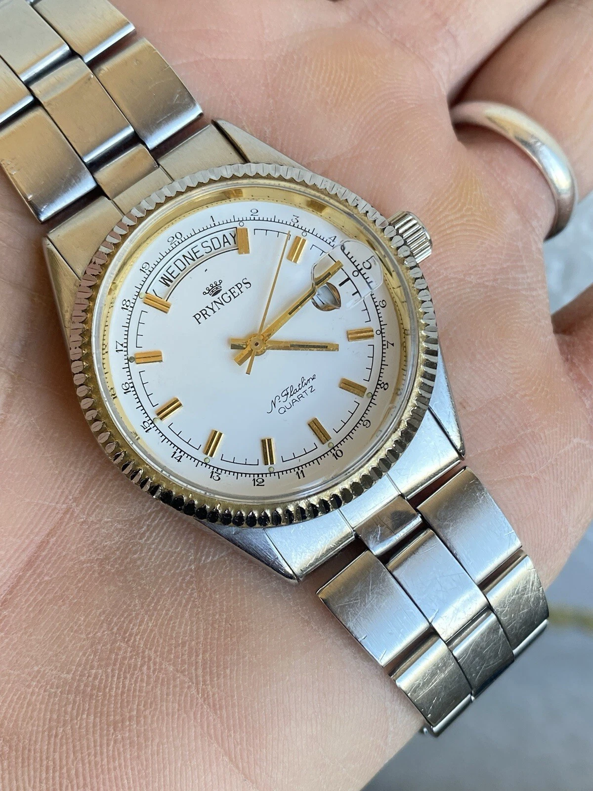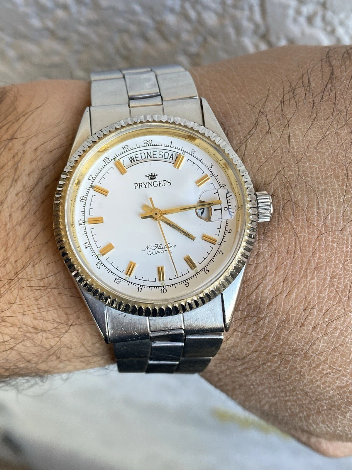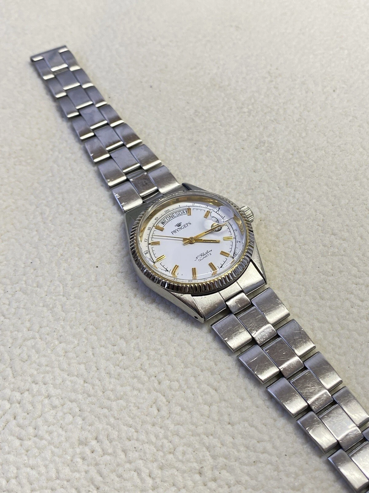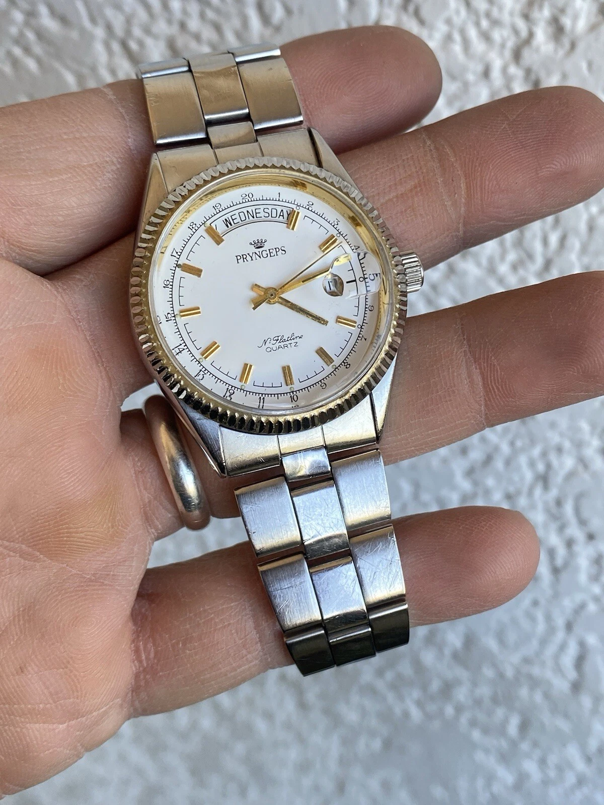 Pryngeps N. Flatline Quartz President Watch White Champagne Dial Watch Day-Date