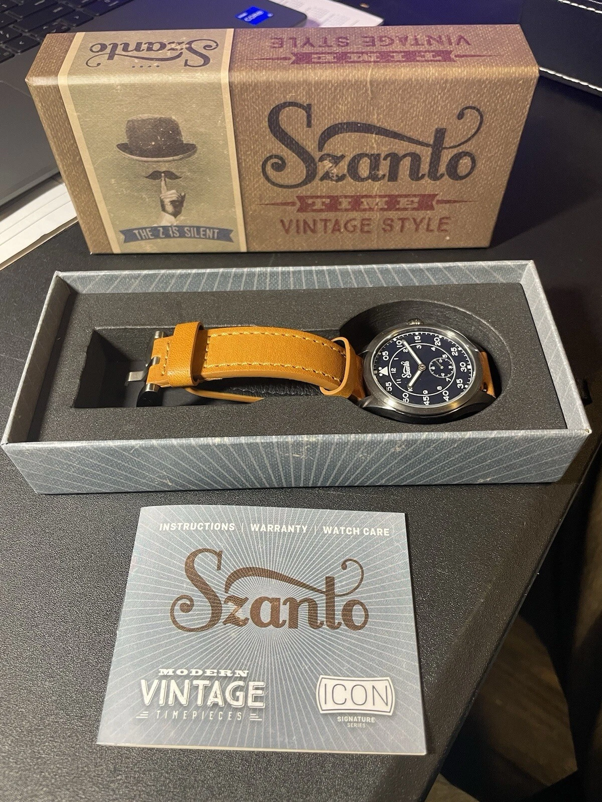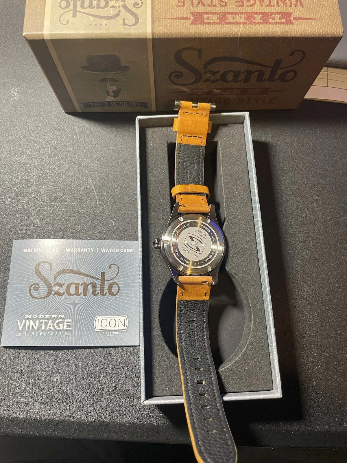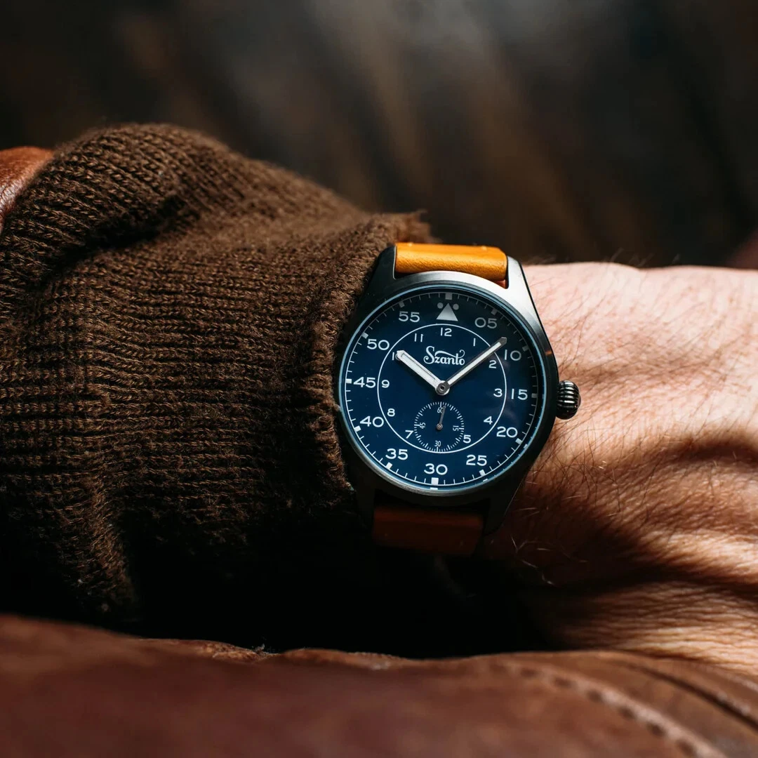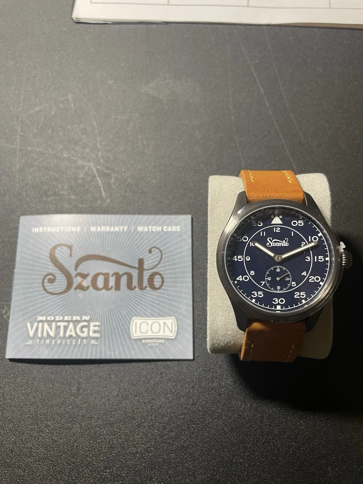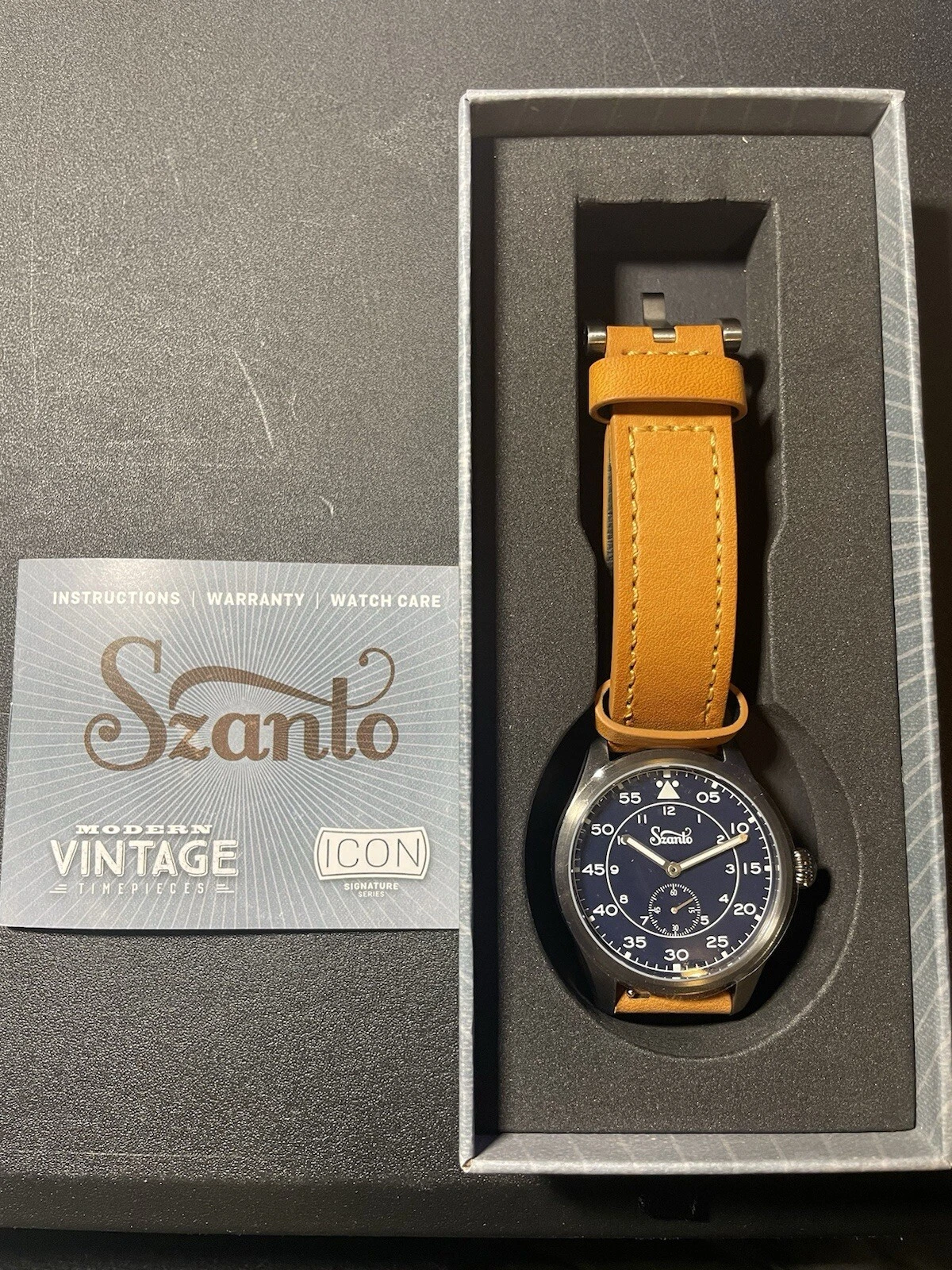 Szanto "I'con Signature Series" Heritage Aviator Blue Dial Tan Band