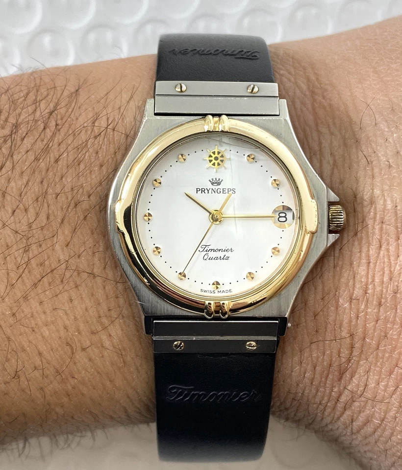 Pryngeps Timonier Vintage Watch Quartz Unisex Swiss Made Tow Tone dial 31mm rare