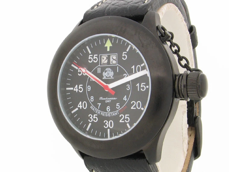 German RETRO IP-Black BIG-DATE Crown Protecting T0087
