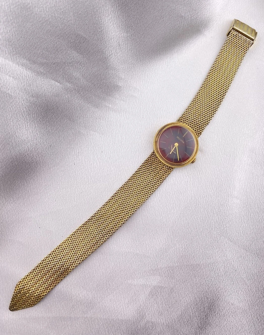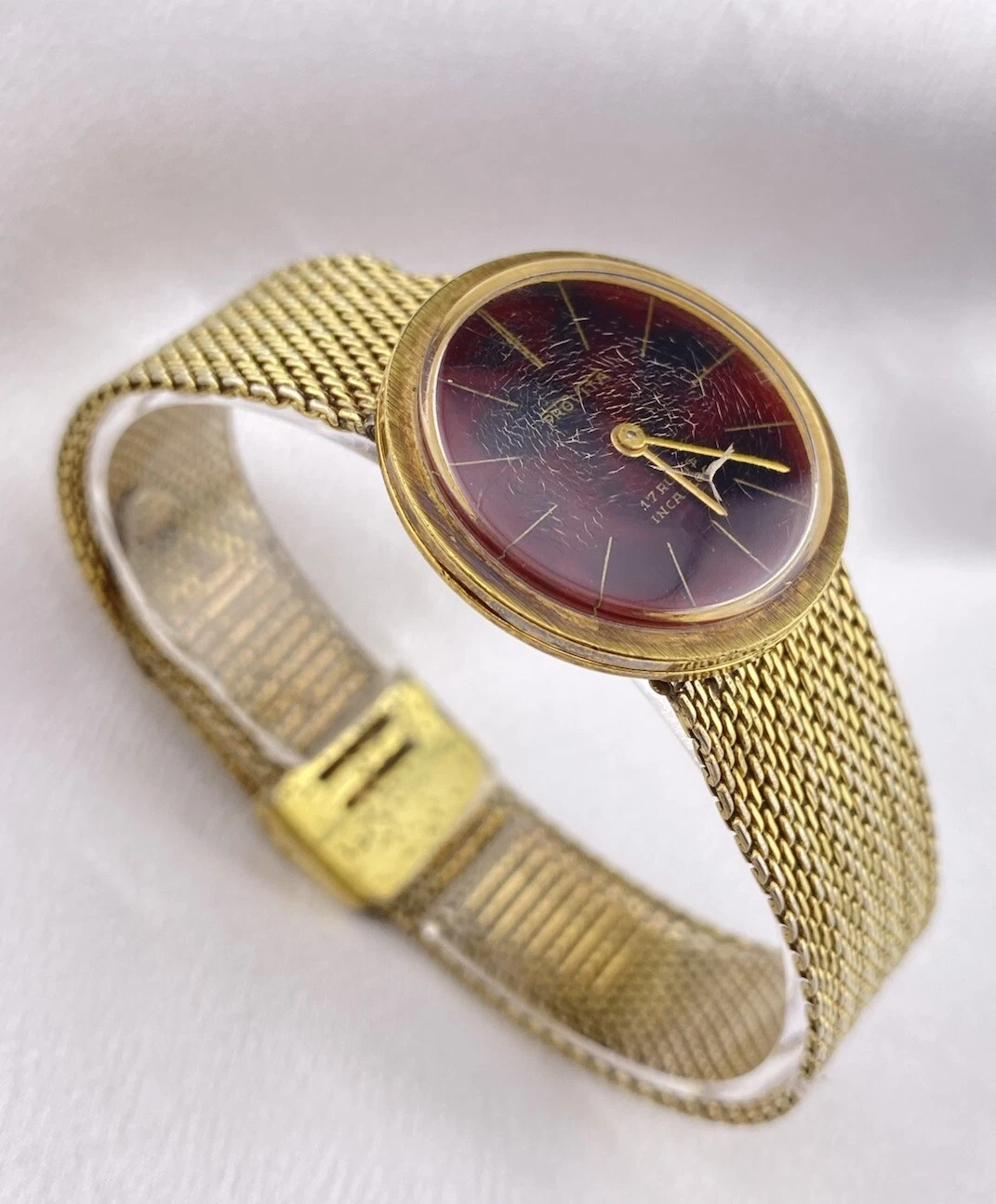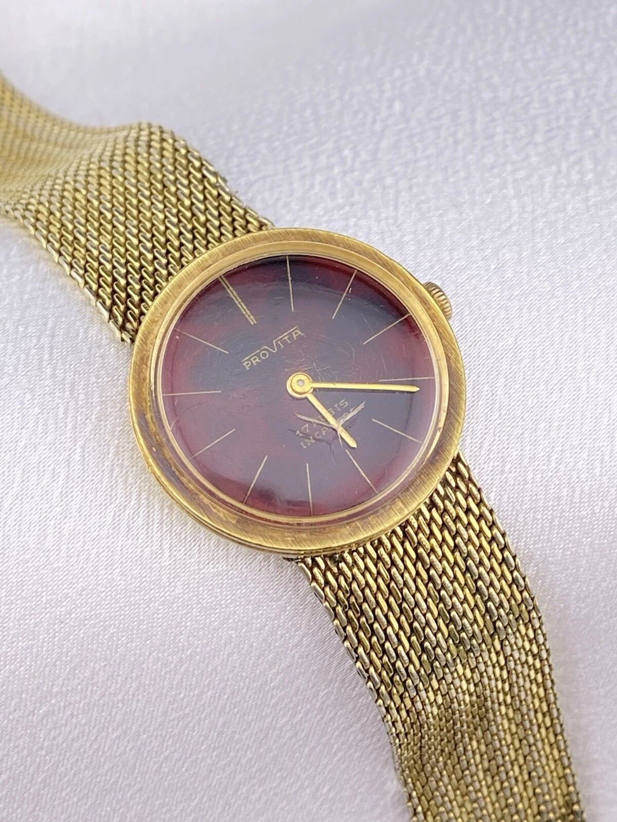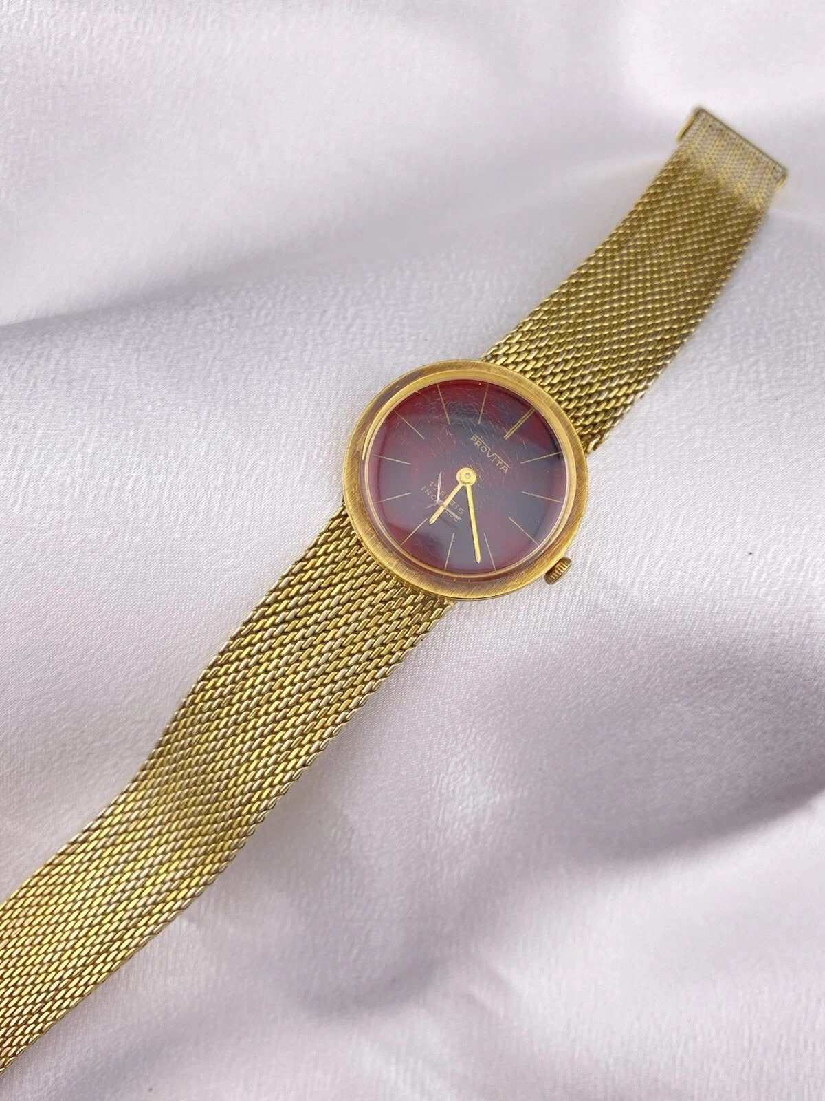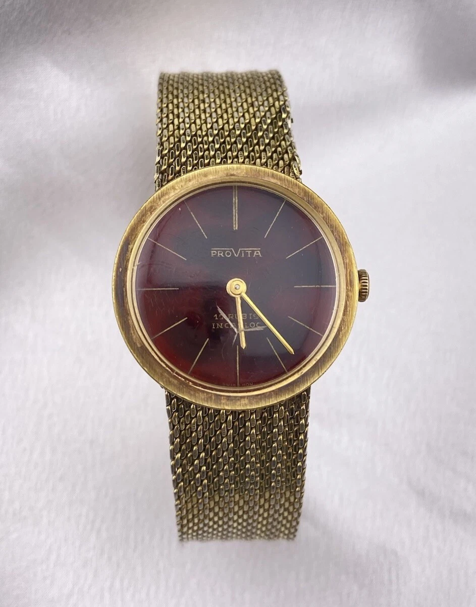 Vintage Provita Automatic 17 Rubis Incabloc Ladies Red Round Gold Tone Watch