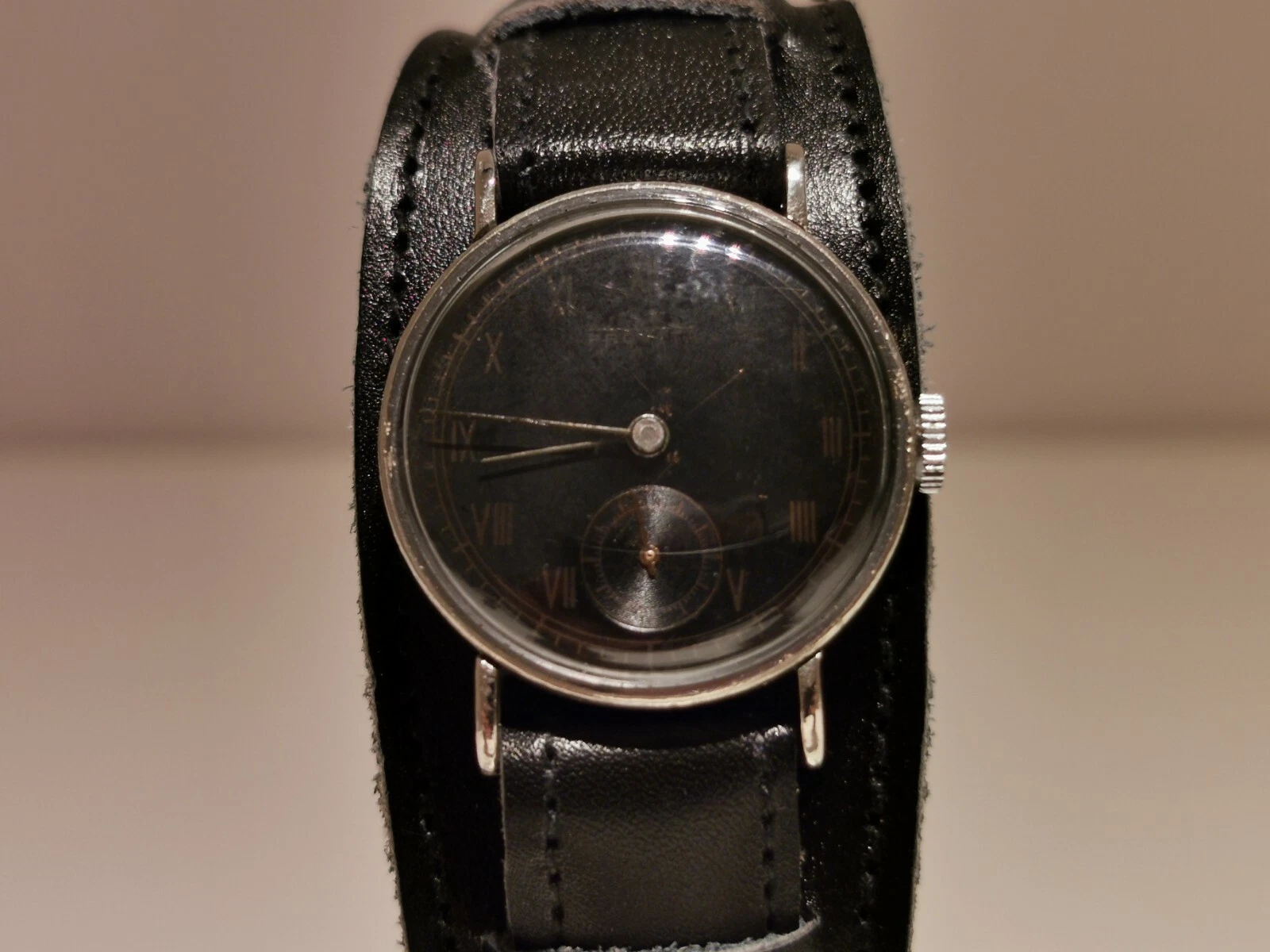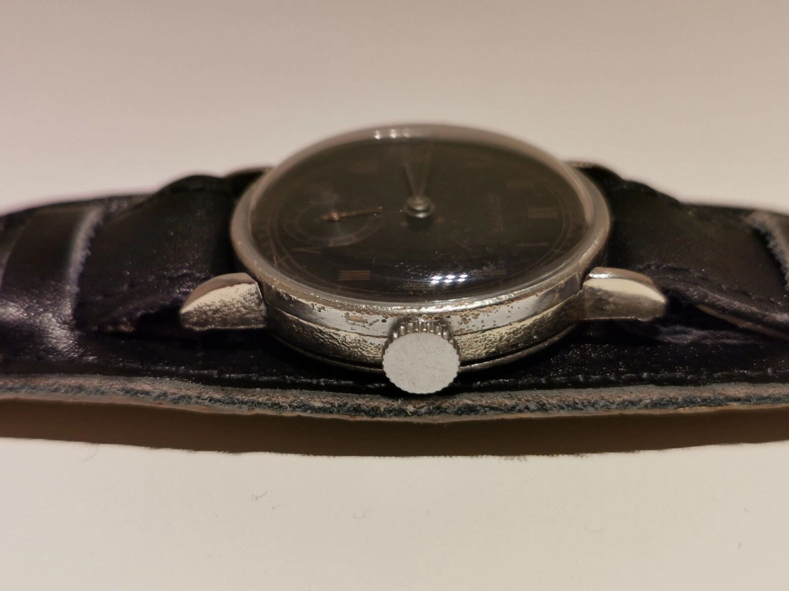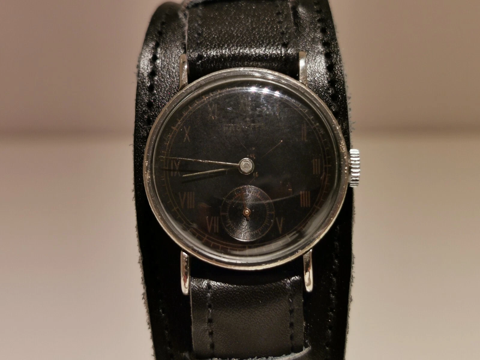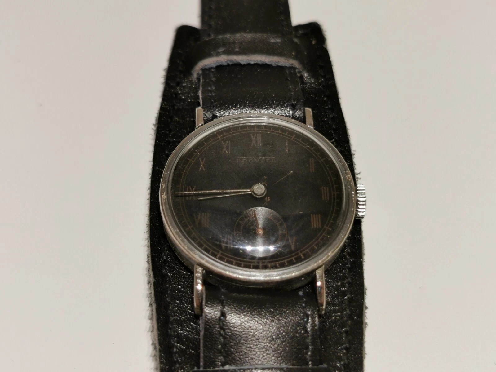VINTAGE RARE SWISS WW2 MILITARY SMALL 29MM MEN'S WATCH "PROVITA" 15J/BLACK DIAL