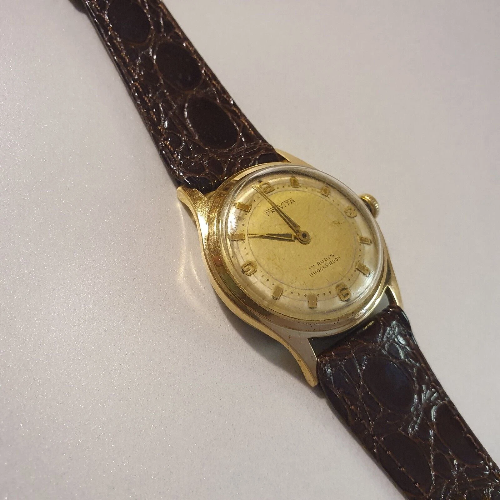 PROVITA Men's Watch Vintage Swiss Old Mechanic 17J Manual Gold 20 Micron 33mm