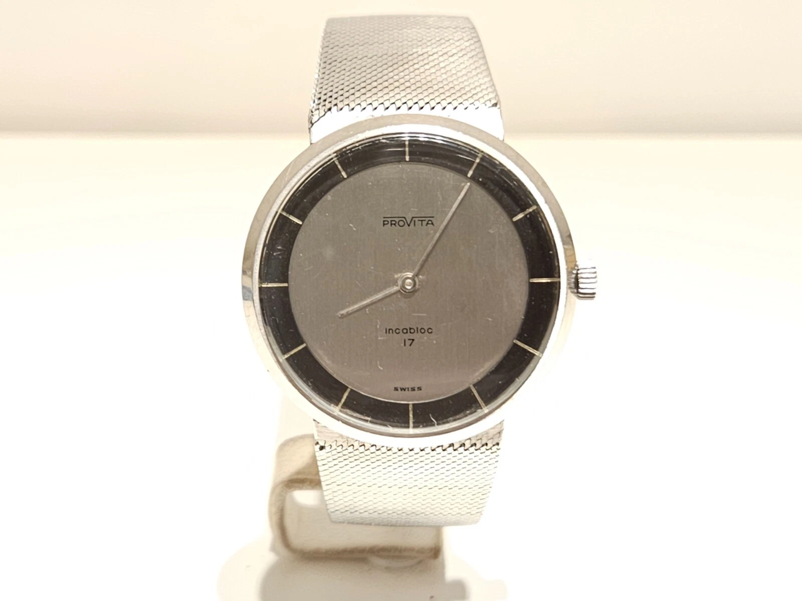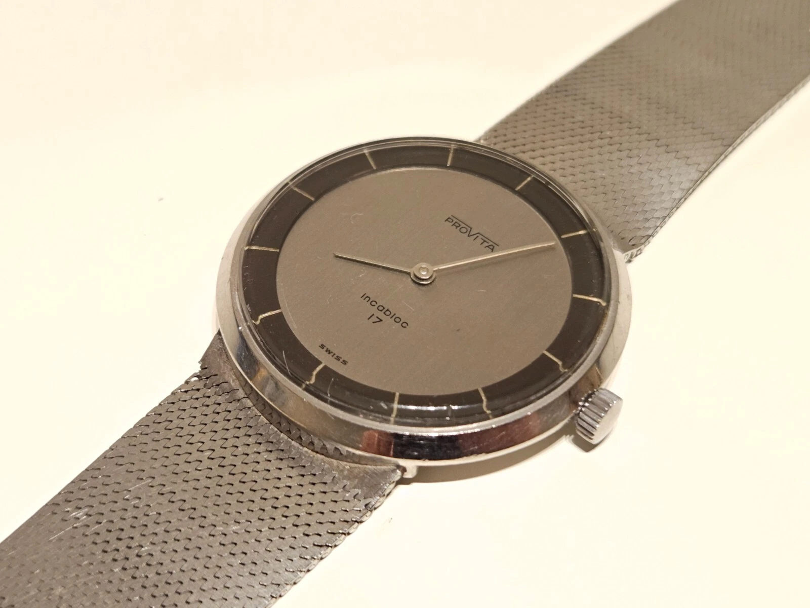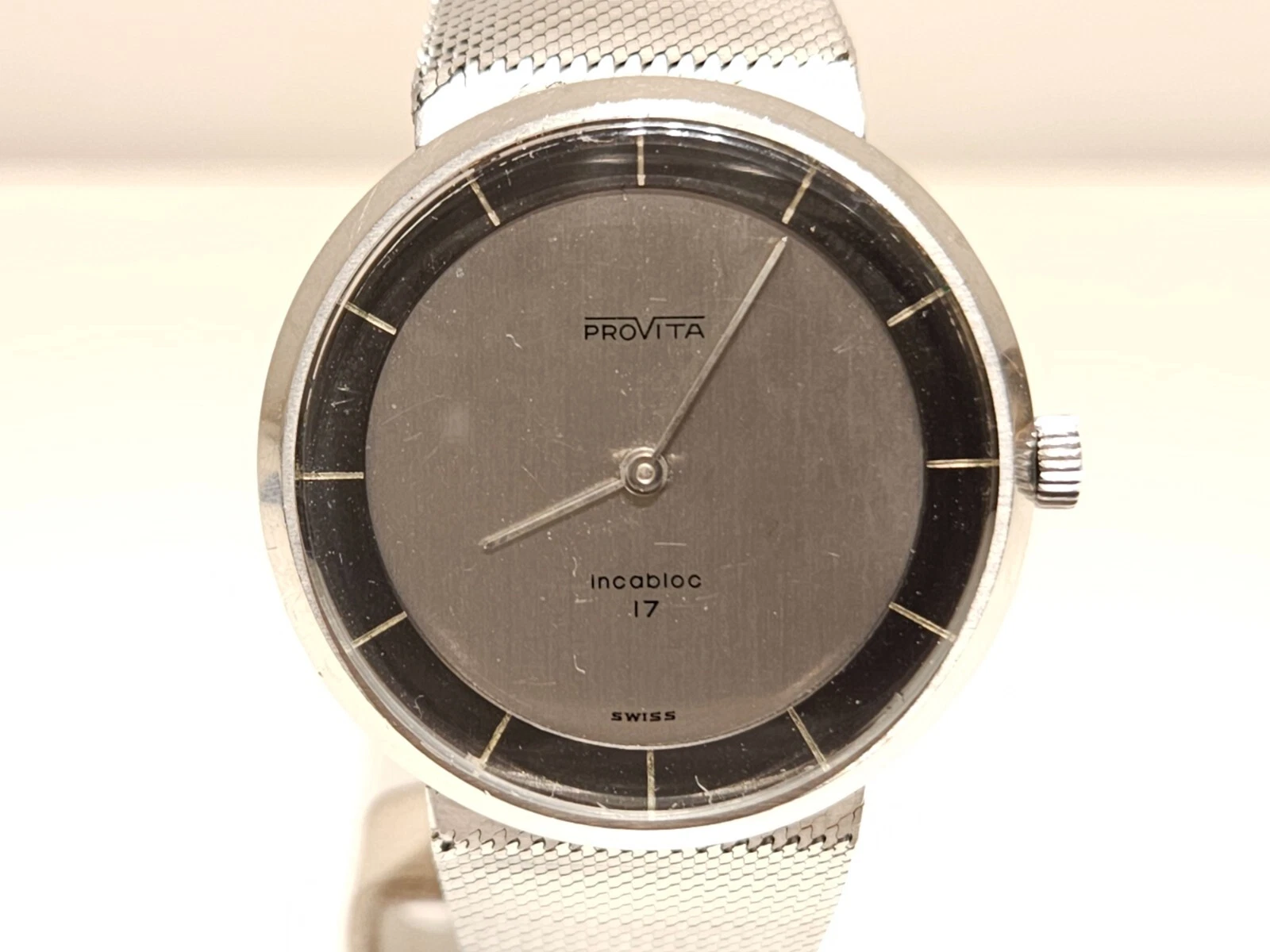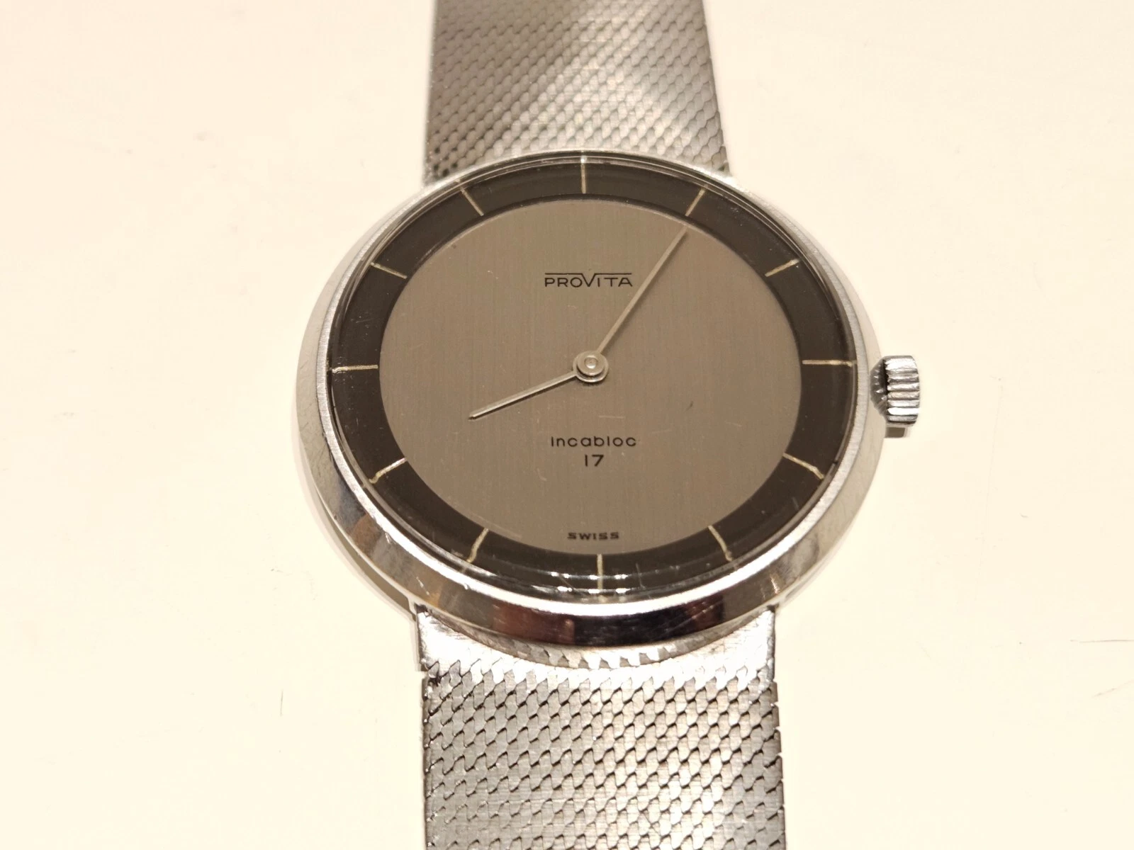 VINTAGE 36.5mm SWISS CHROMED MEN'S LADIES MECHANICAL WATCH BRACELET "PROVITA"