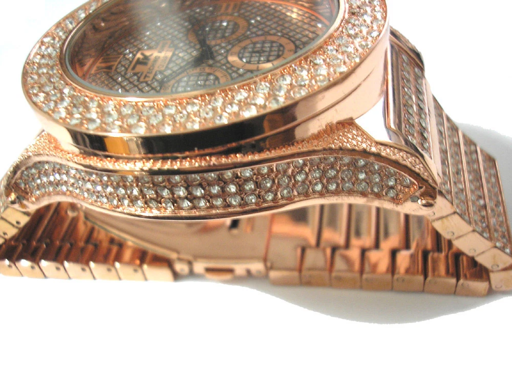 Rose Gold Metal Big Case & Band Techno King Men's Watch w Crystals Item 1745