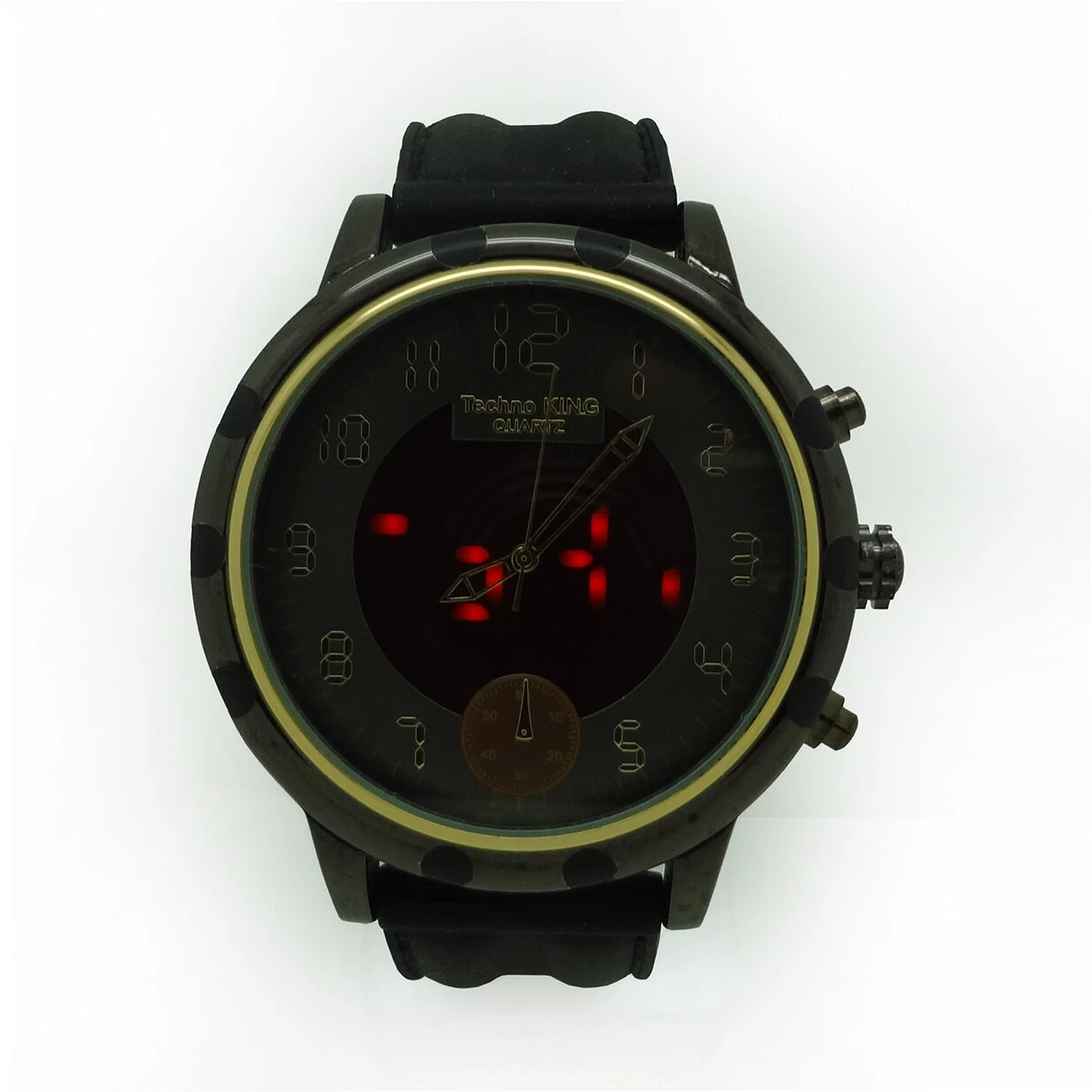 TECHNO KING MEN STRONG HEAVY BIG HIPHOP BACK LIGHT DUAL TIME WATCHES