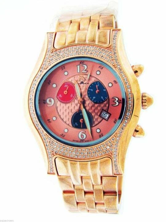 Unisex Techno Master swiss movt Rose-tone 1.50ct diamond watch