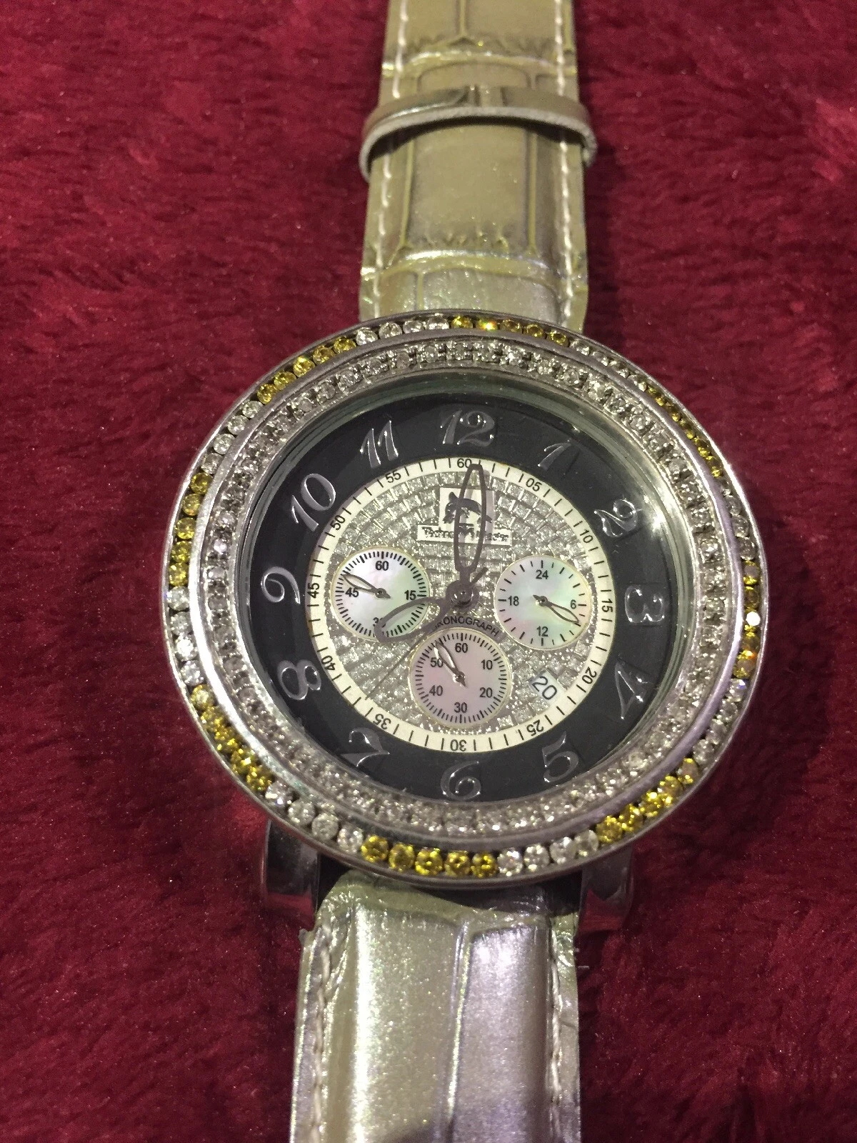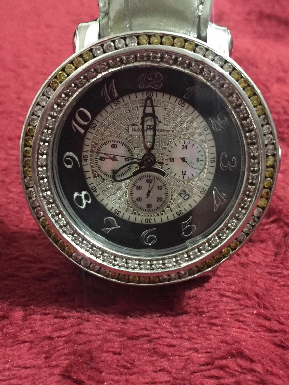 Mens Techno Master Yellow / White Color Diamond Watch 2 Ct