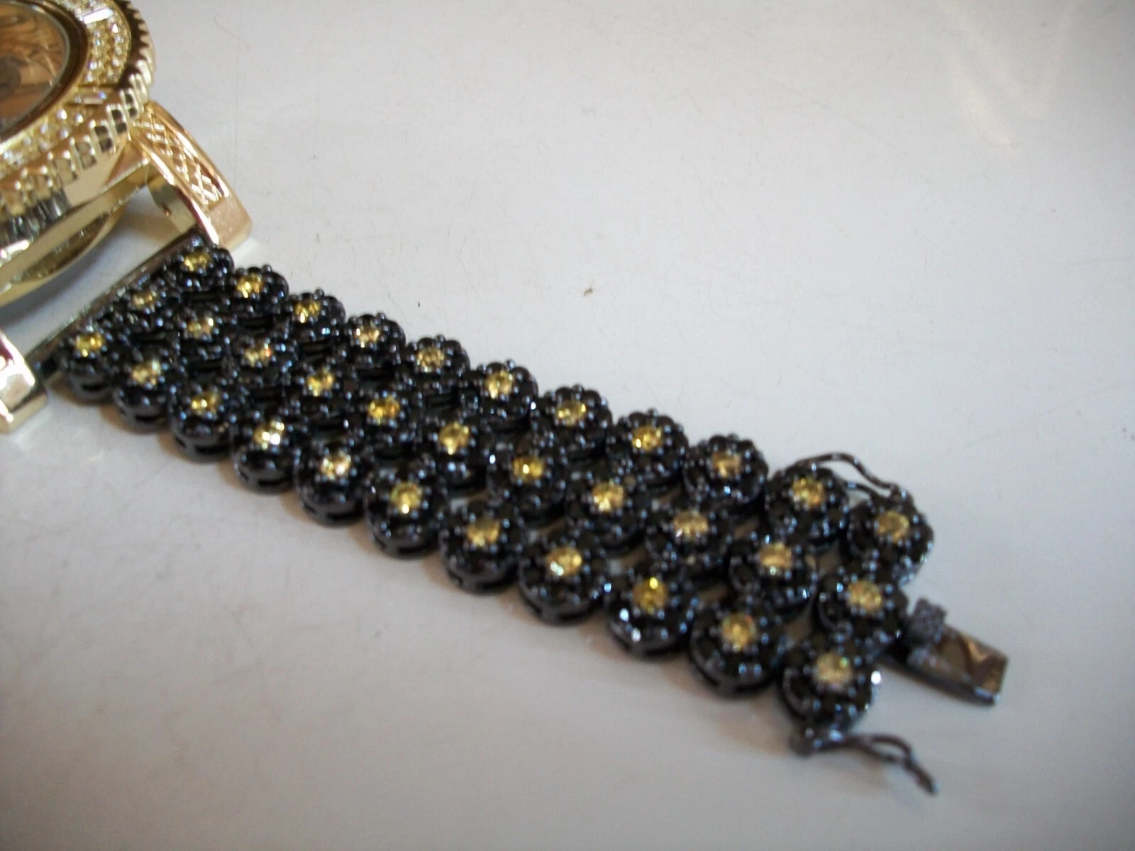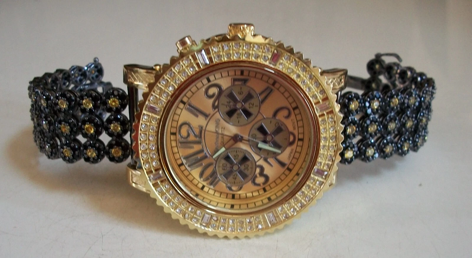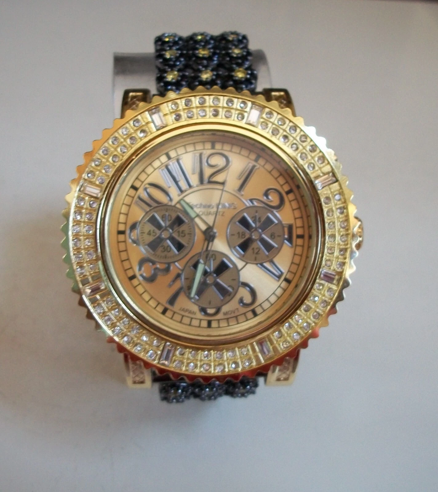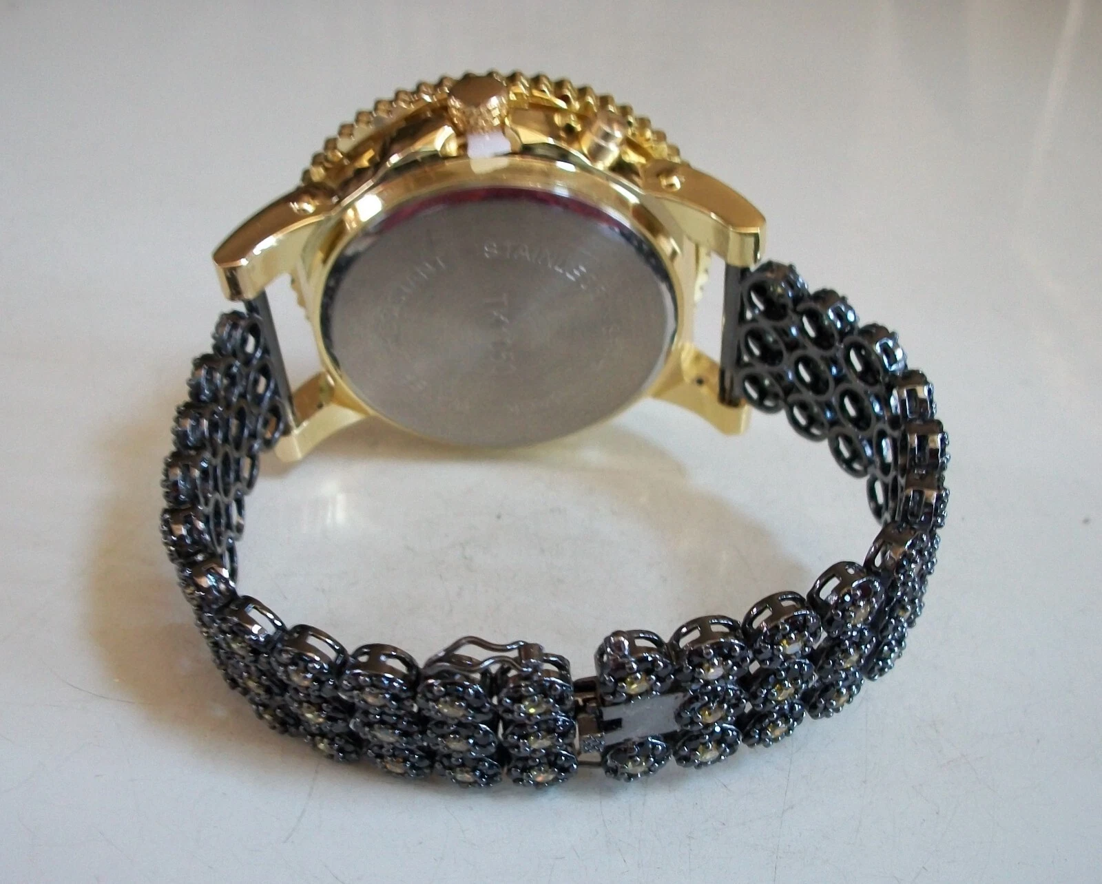 Men's Stones Gold & Hematite Finish Hip Hop Fashion Party Watch