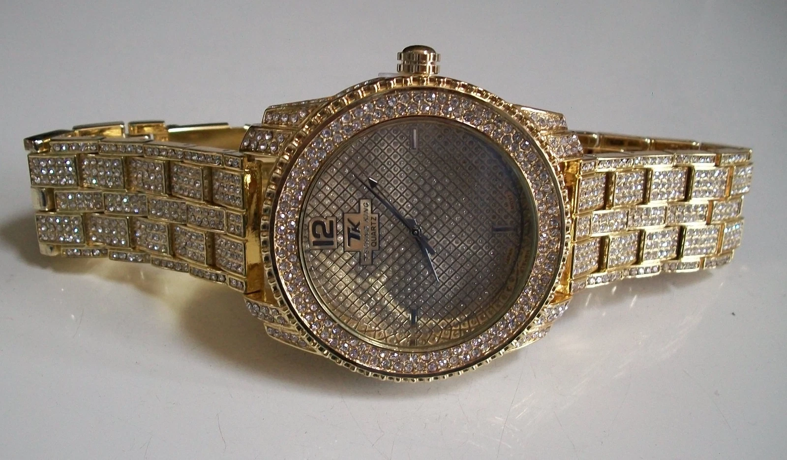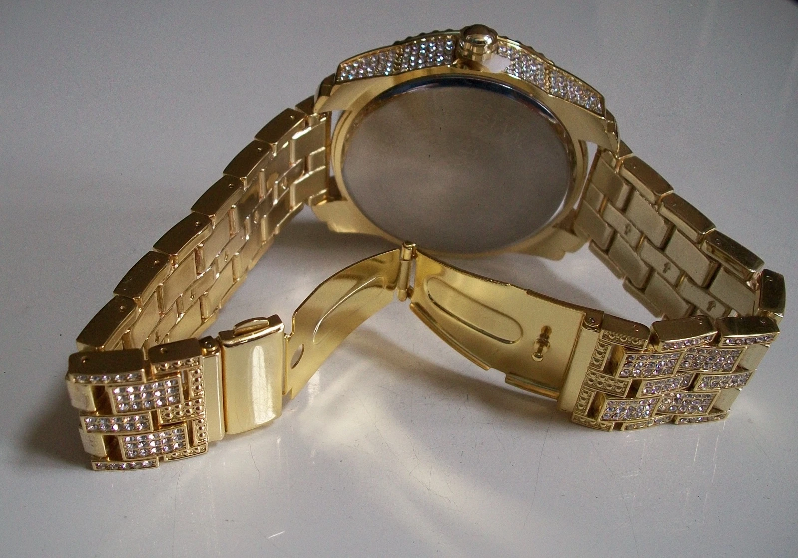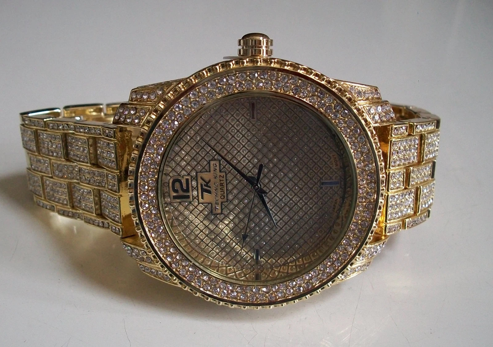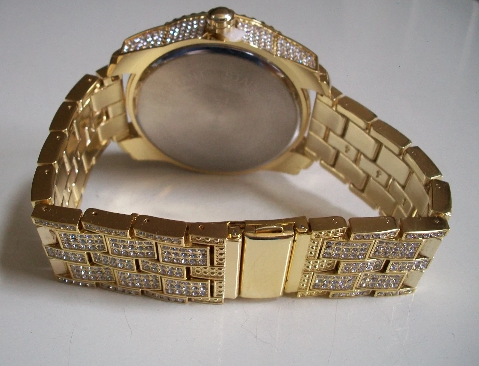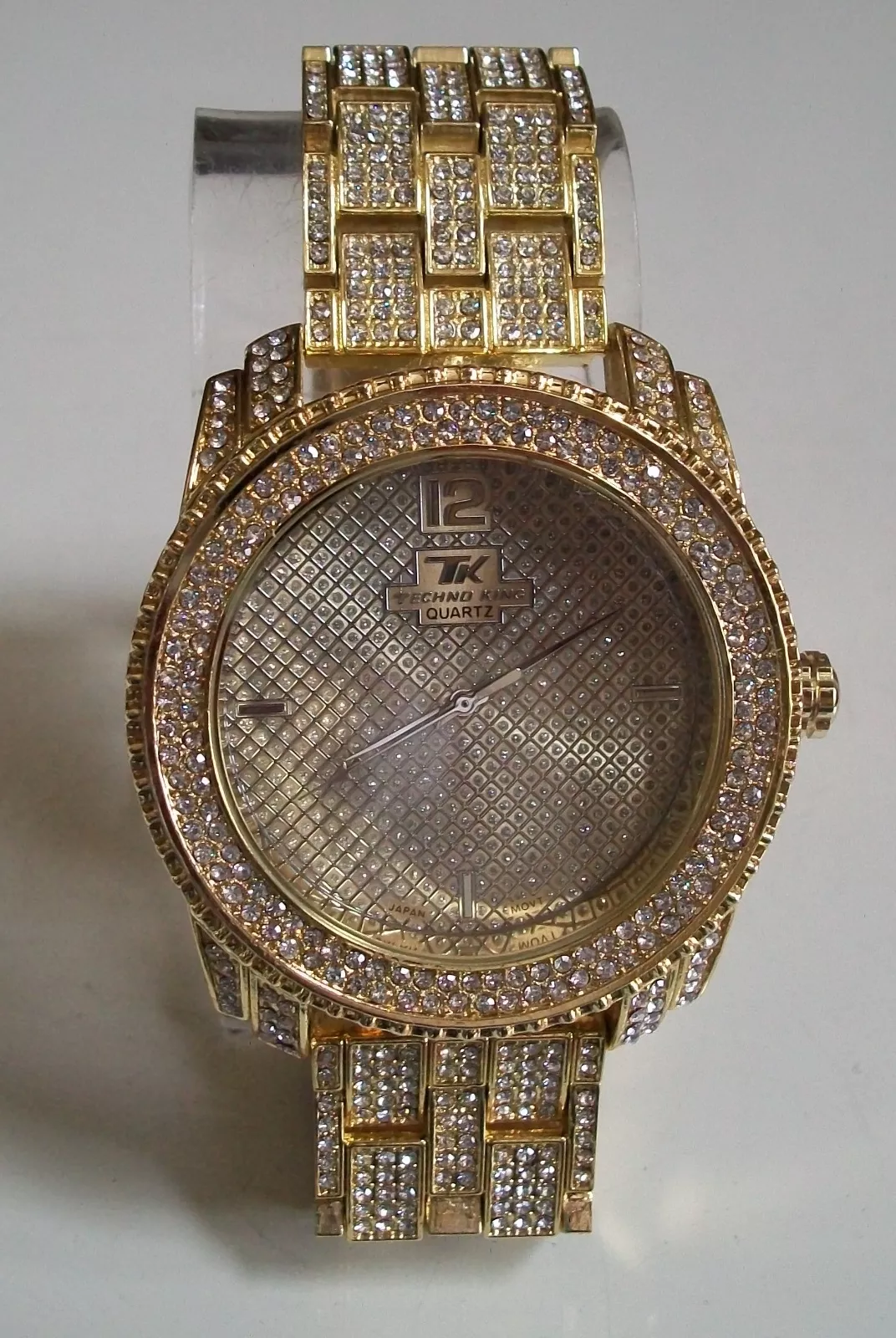 Men's stone gold finish dressy hip hop fashion wrist watch