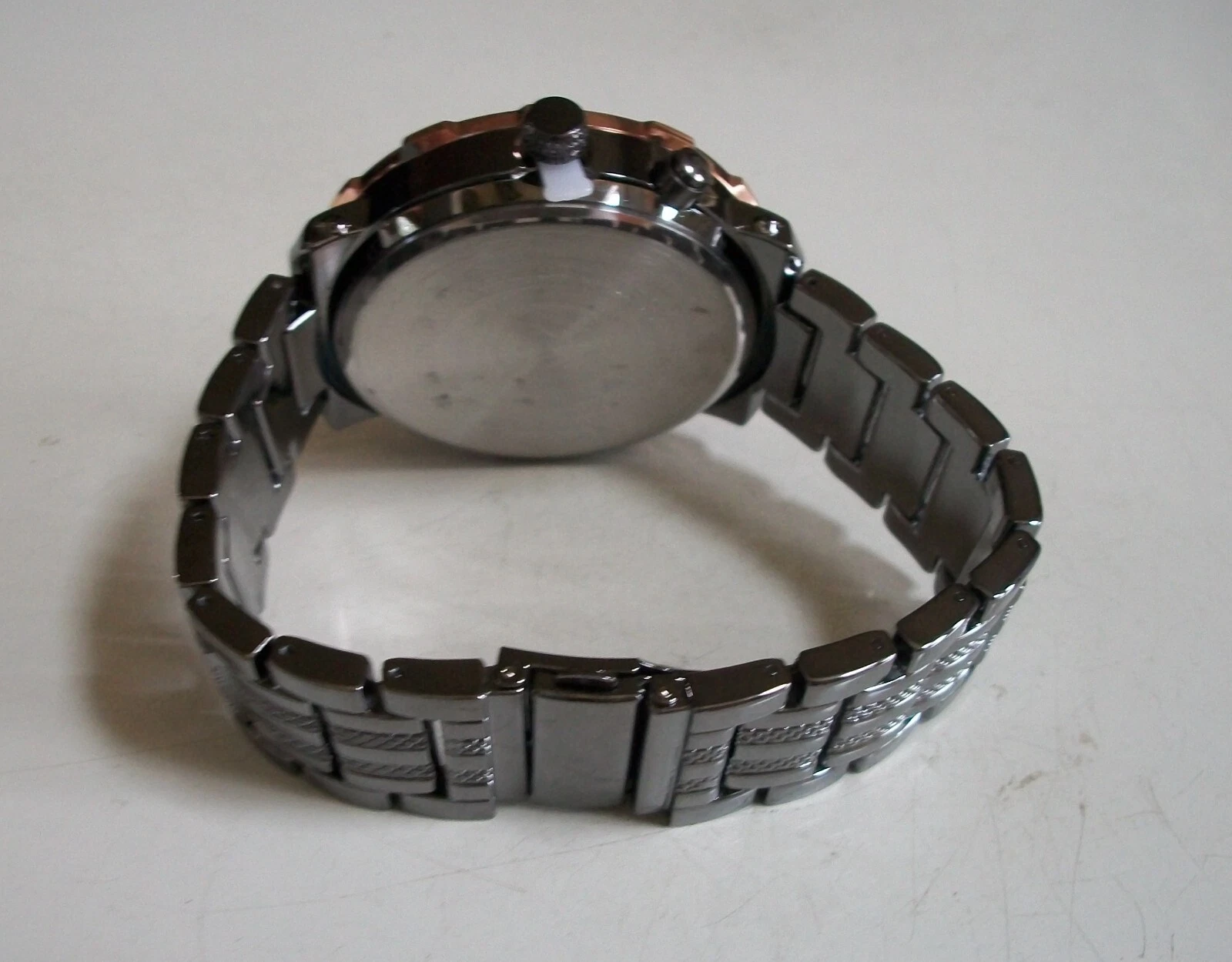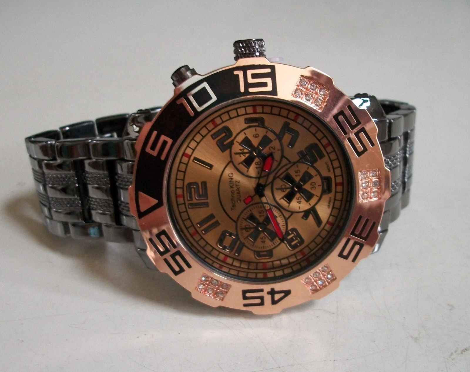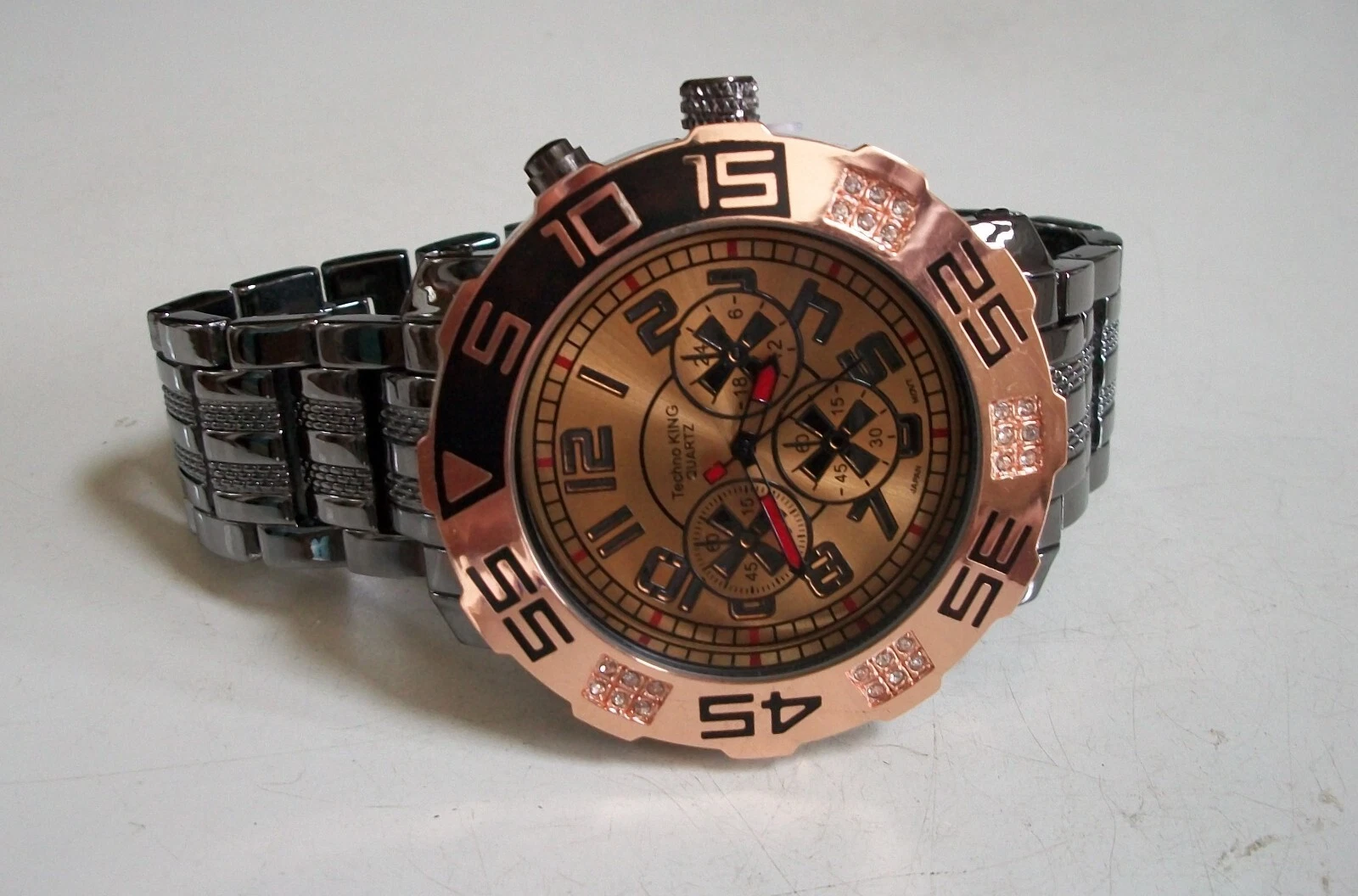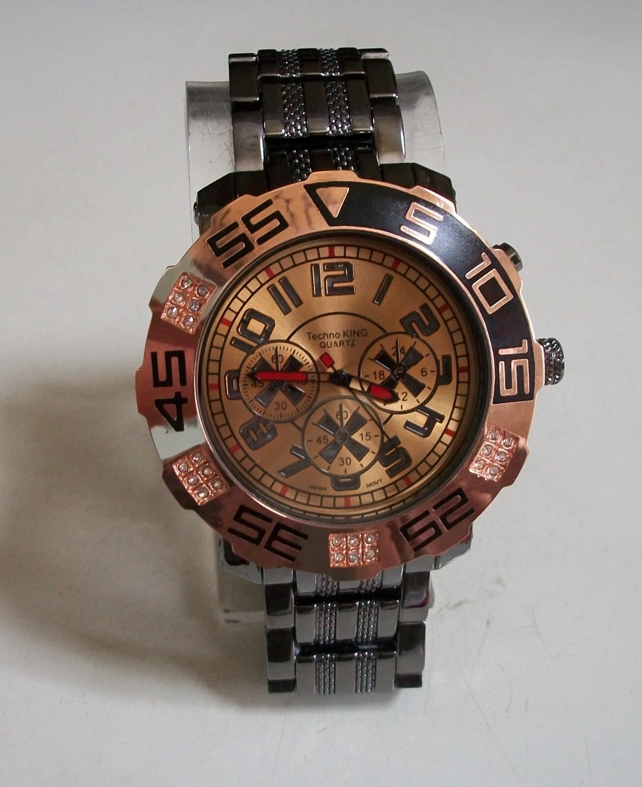 Men's stone black hematite & rose gold finish bracelet fashion hip hop watch