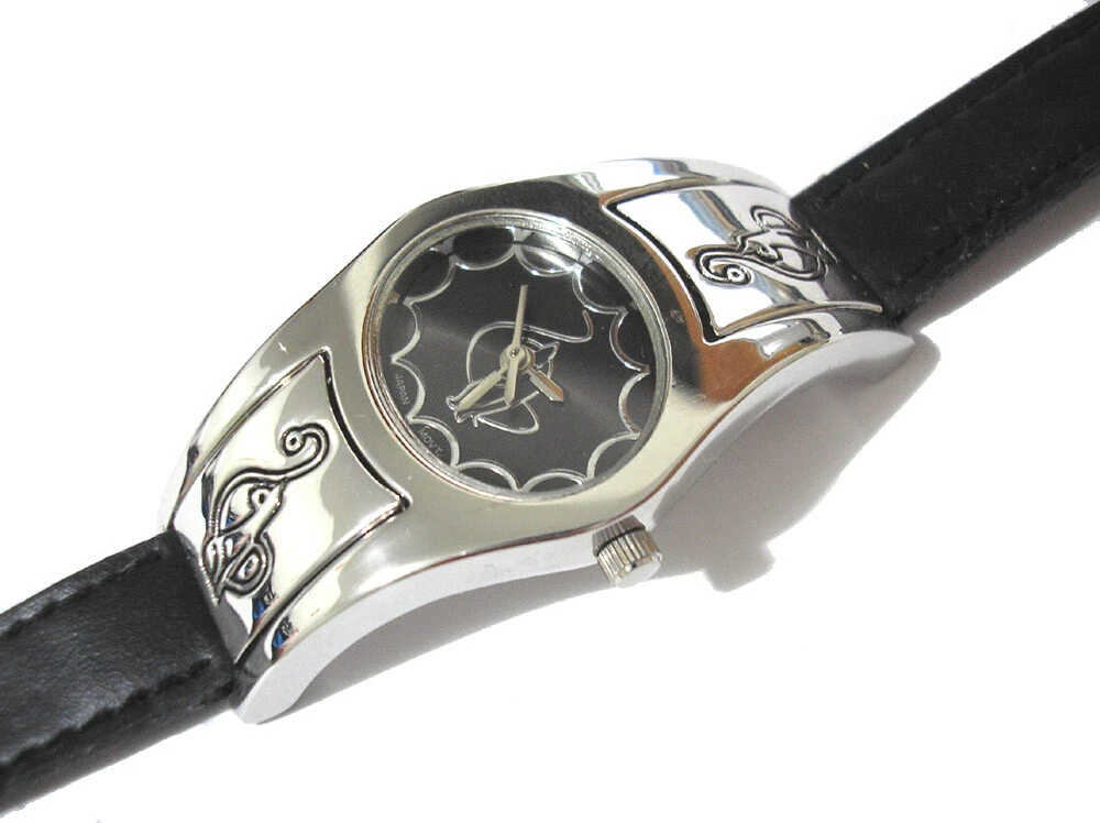 Silver Tone Metal Case Black Leather Band Baby Phat Ladies Watch
