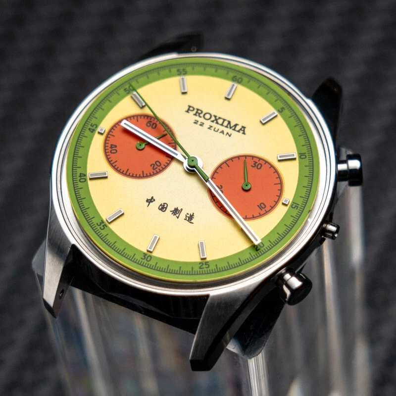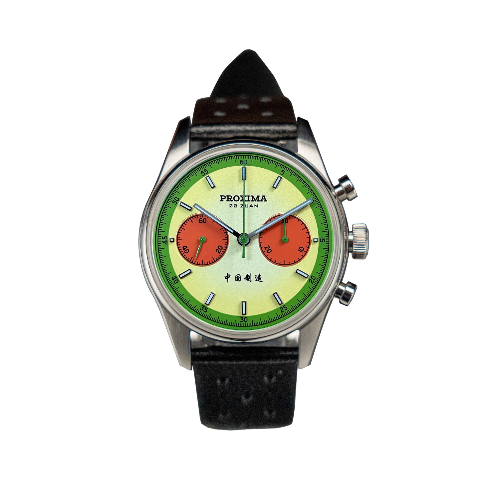 PROXIMA Men Chronograph Watch Manual Winding Mechanical ST1902 kiwifruit Dial