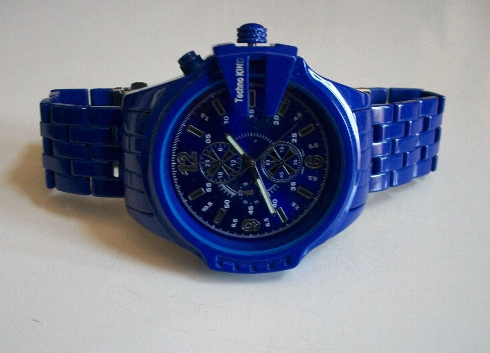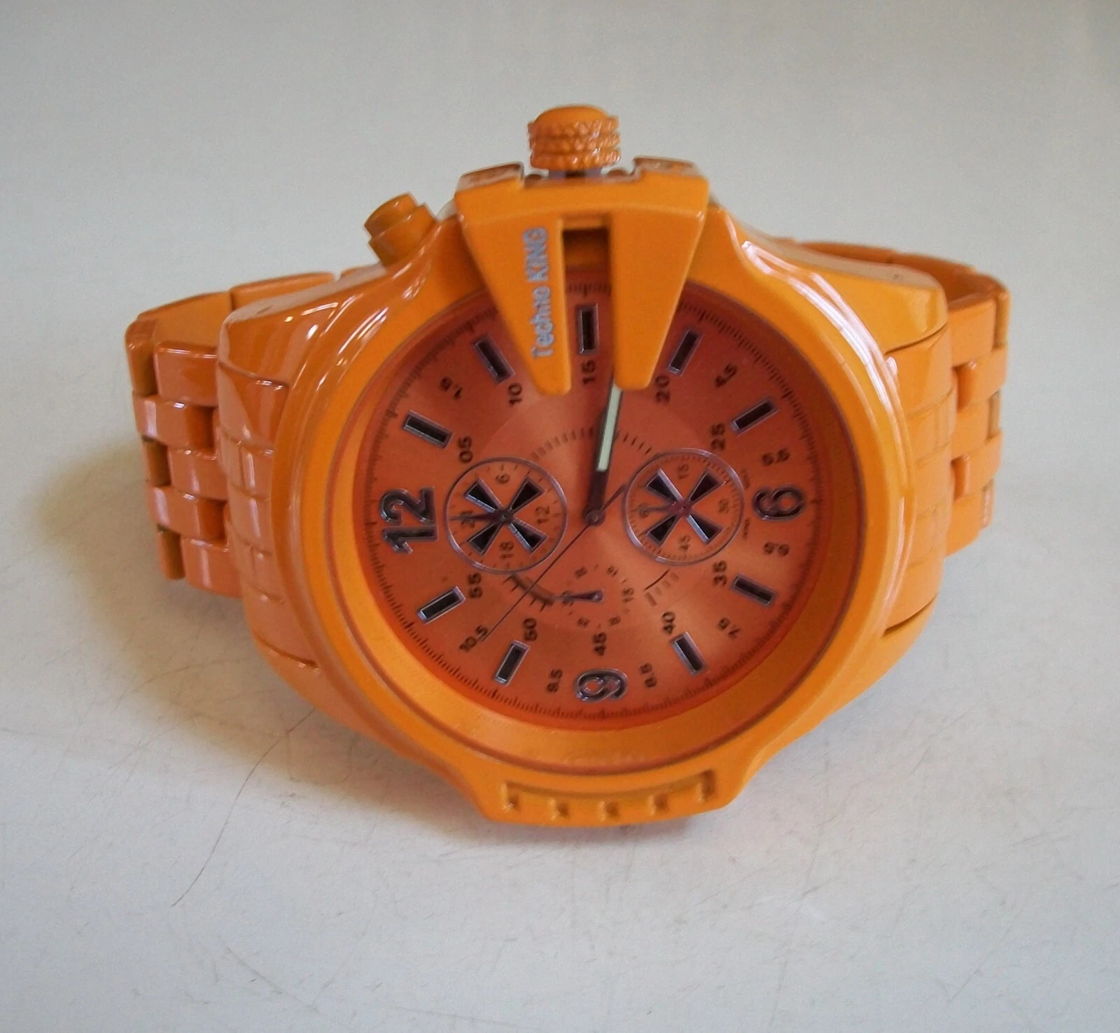 Men's blue and orange finish Techno King bracelet fashion hip hop watch