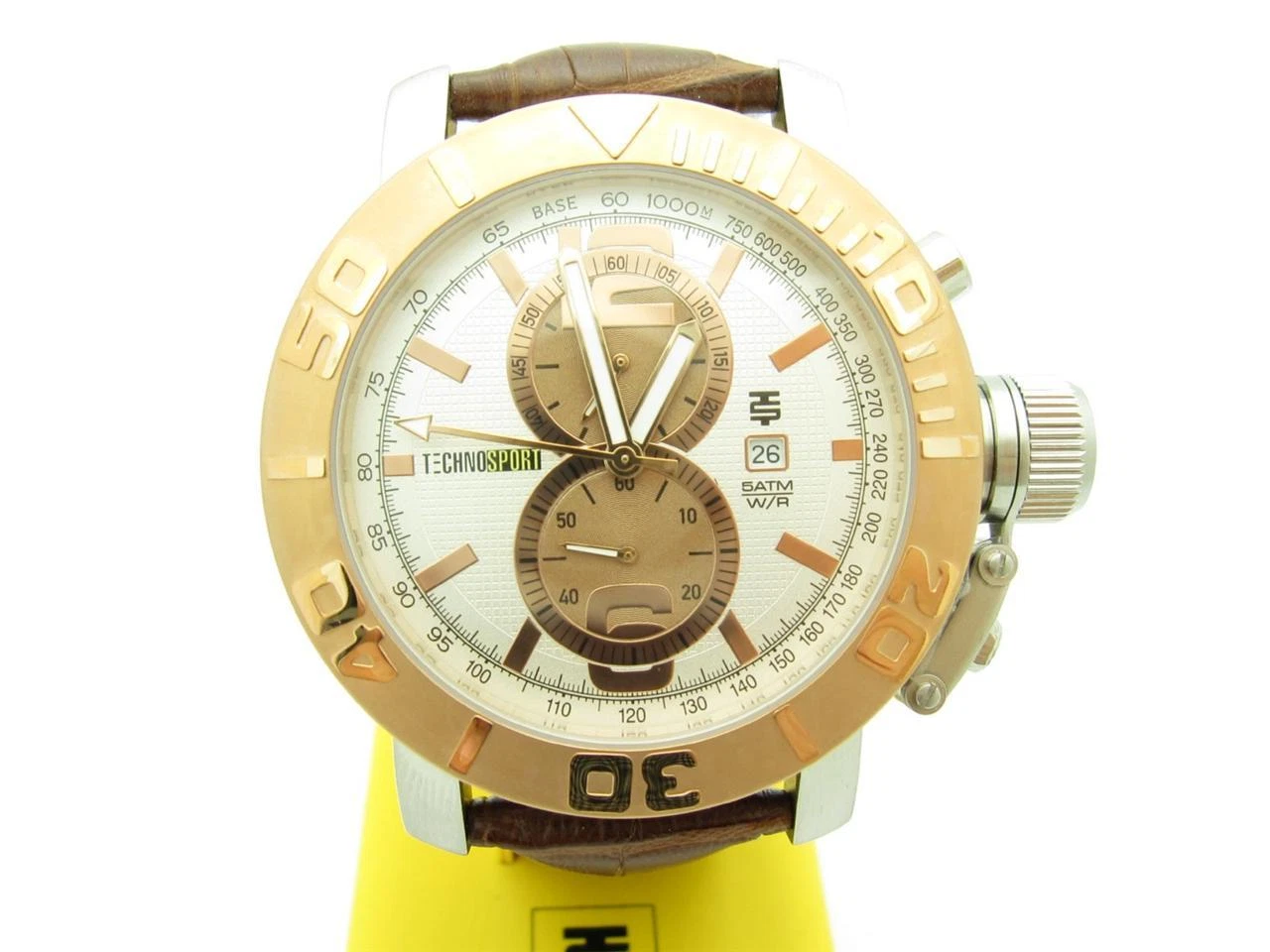 TECHNO SPORT CHRONOGRAPH STAINLESS STEEL ROSE GOLD TONE BROWN LEATHER WATCH GIFT