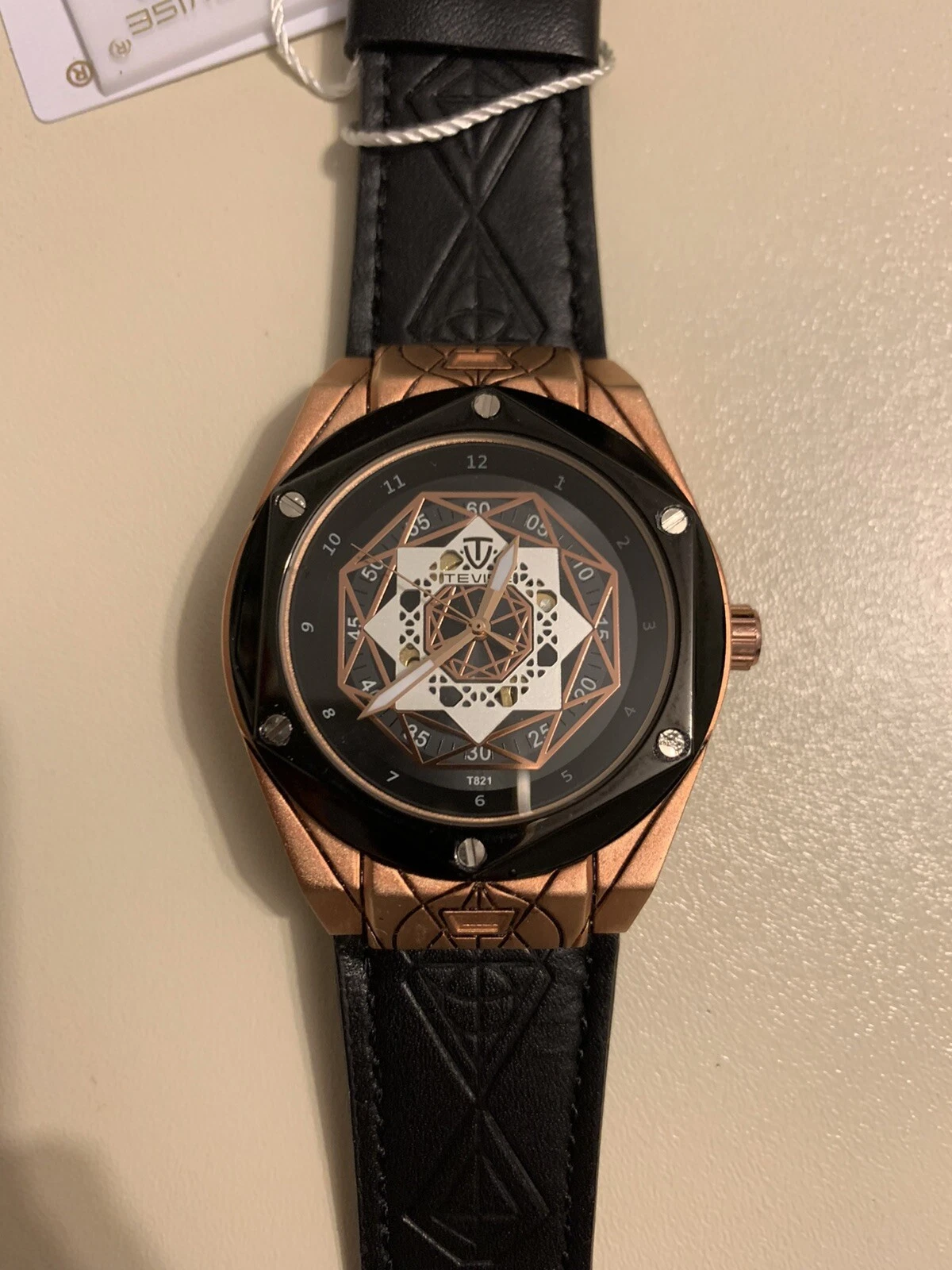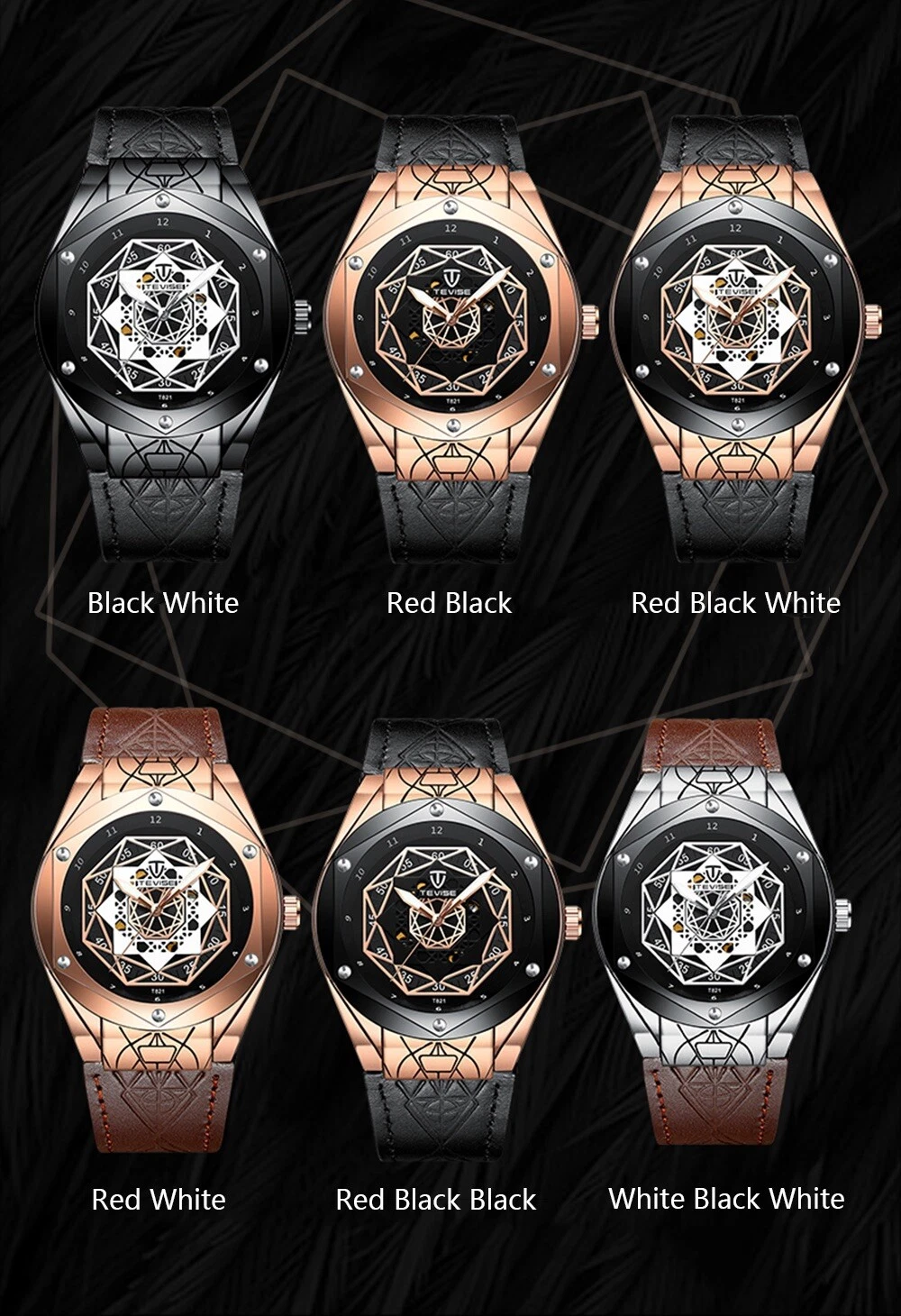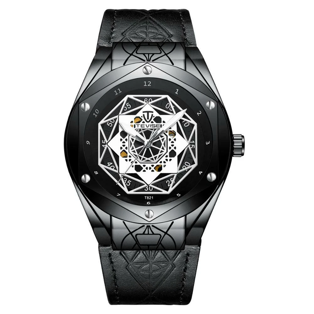 Luxury Automatic Men's Waterproof Skeleton Watch Geometric Reinforced GlassDial