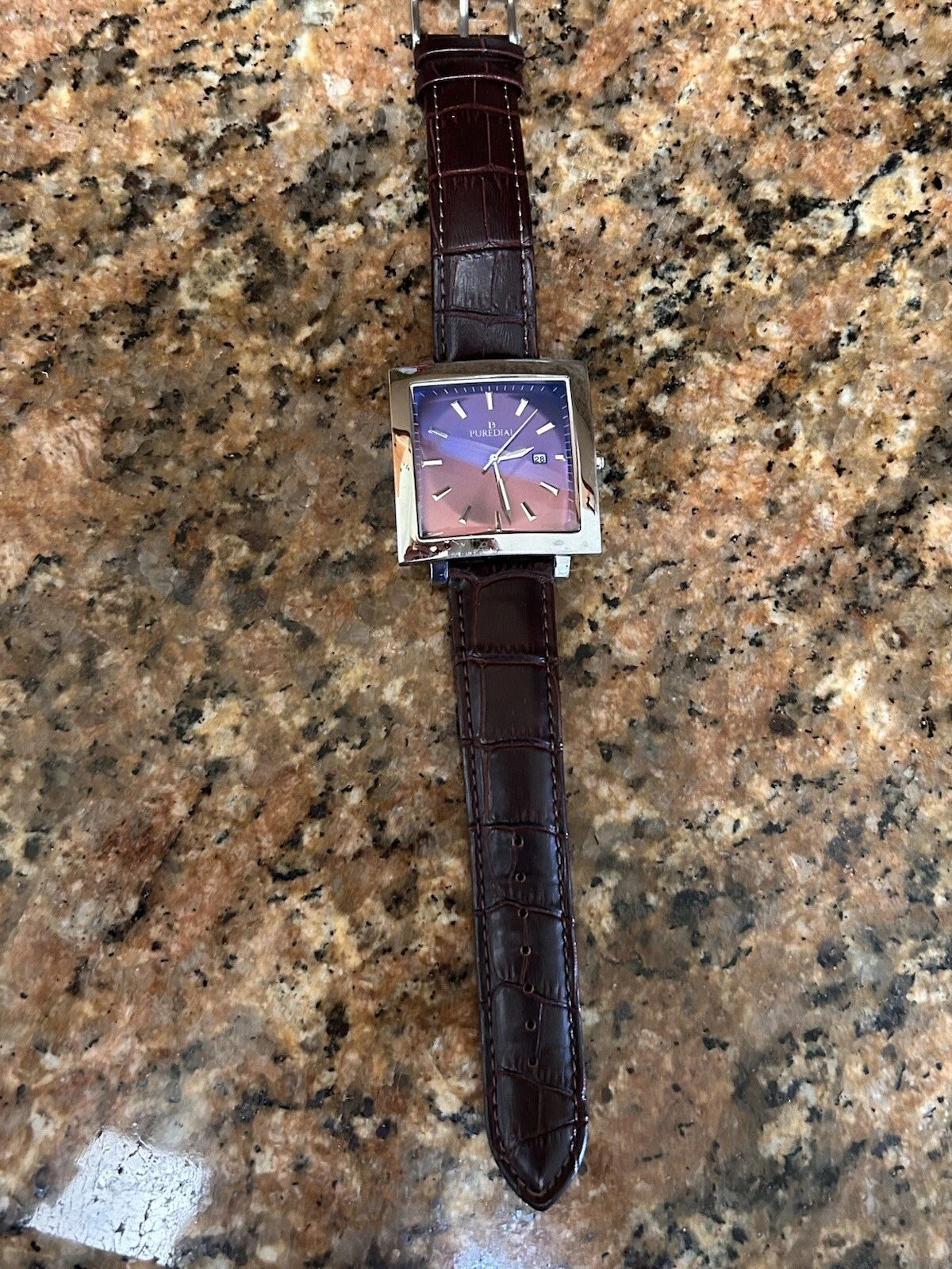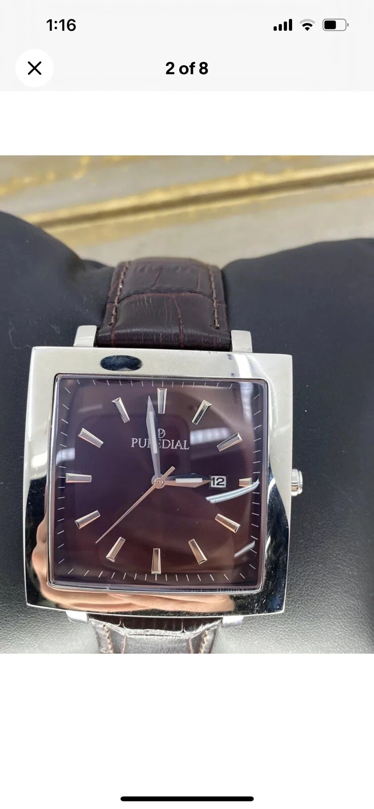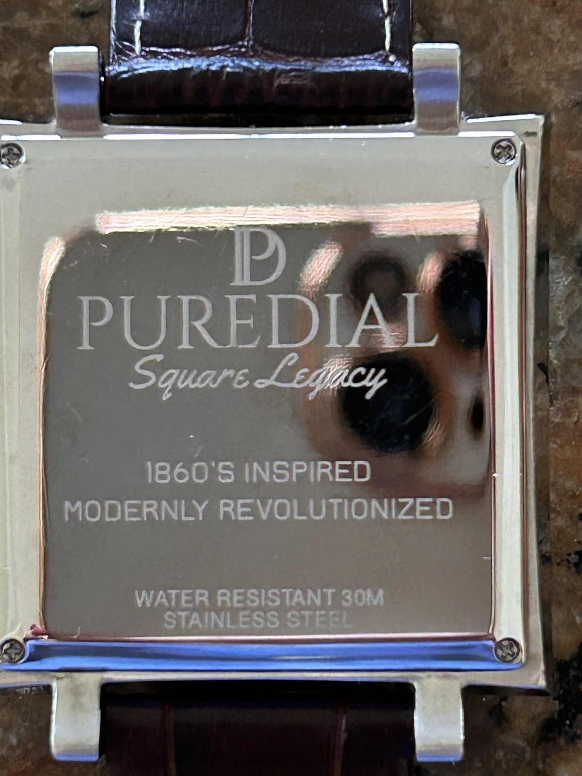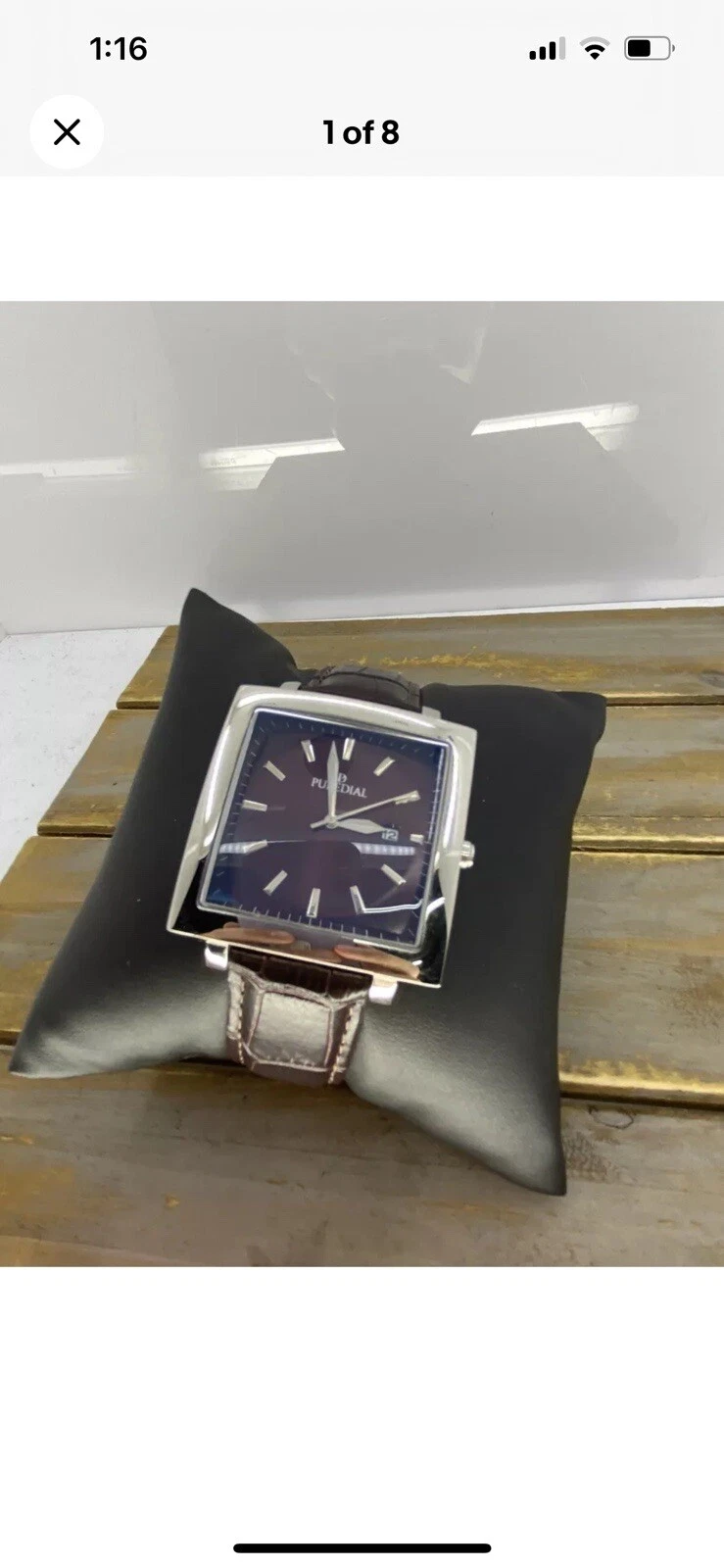 Puredial: The Square Legacy! Mens Watch- Brown Leather Band! New! Water Resist..