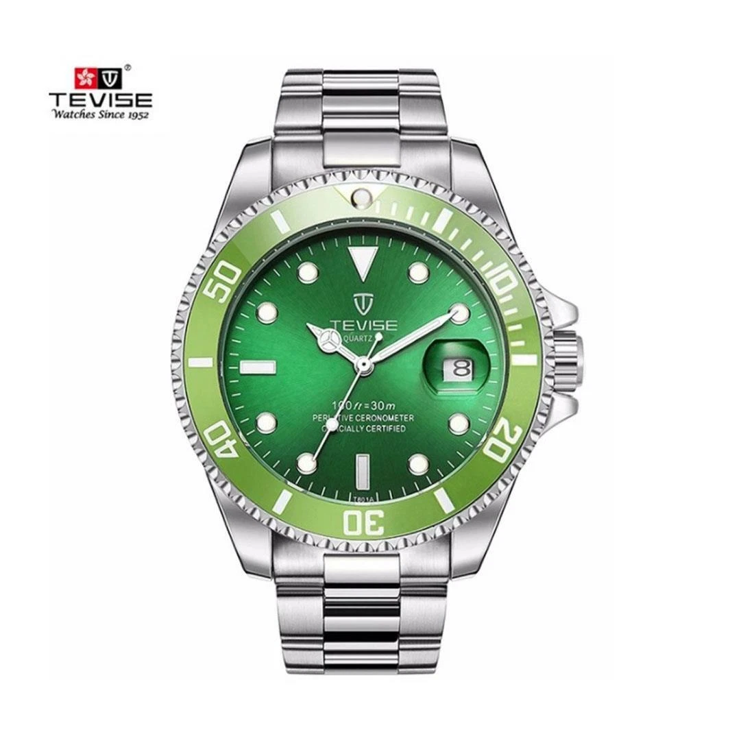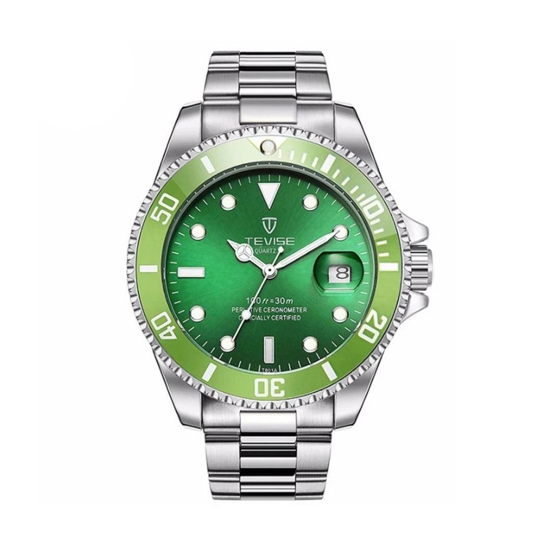 Tevise Mens Quartz Watch Green Silver Smart Watches Date Designer Gift UK