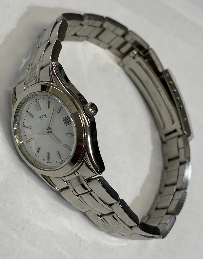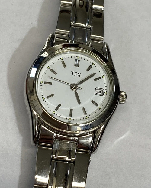 TFX By Bulova Women's Dress Date Watch Silver Tone New Battery Nice Condition