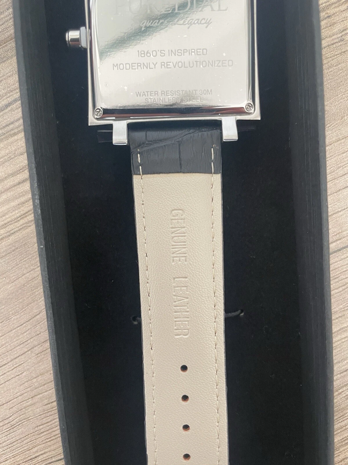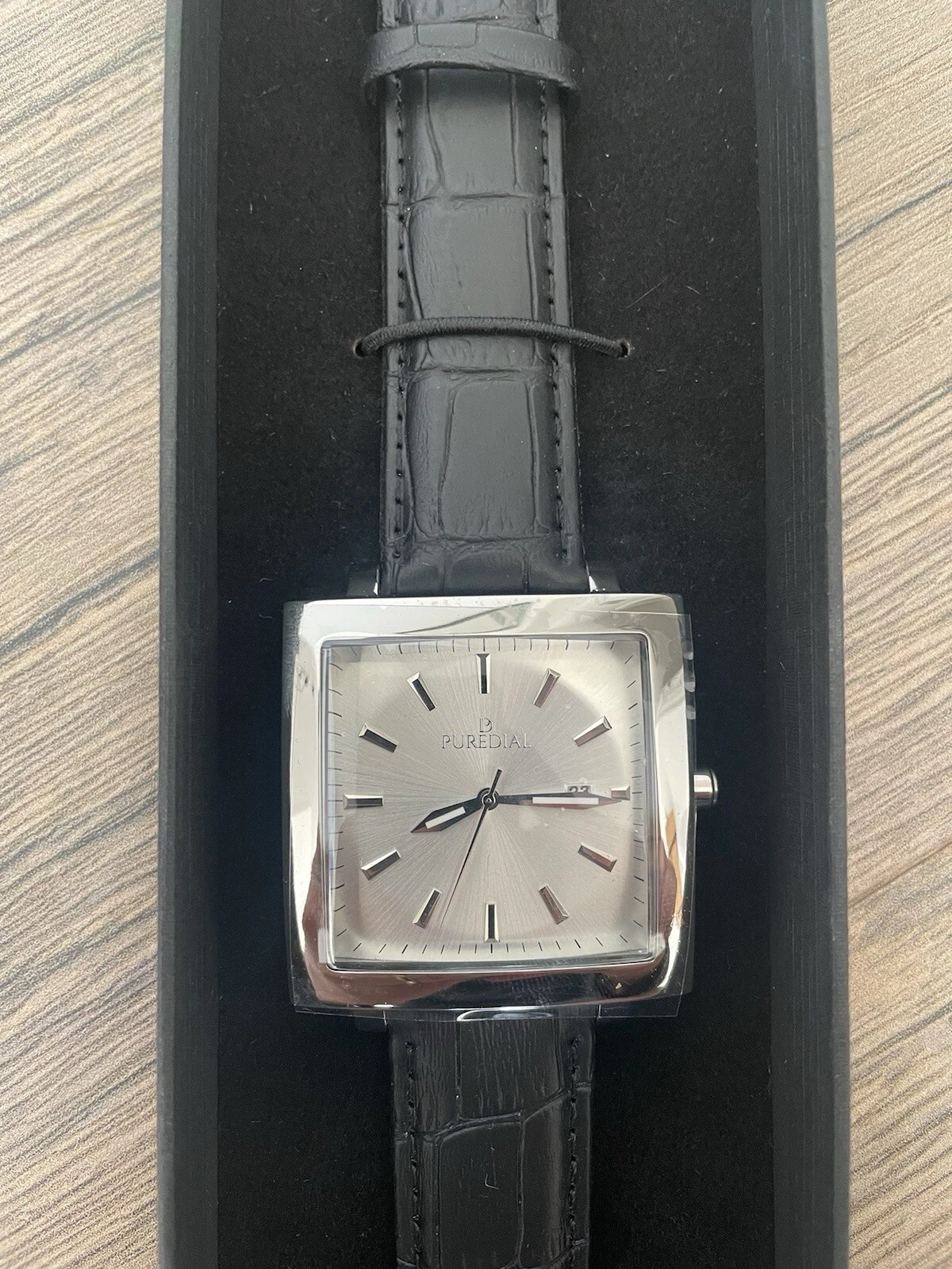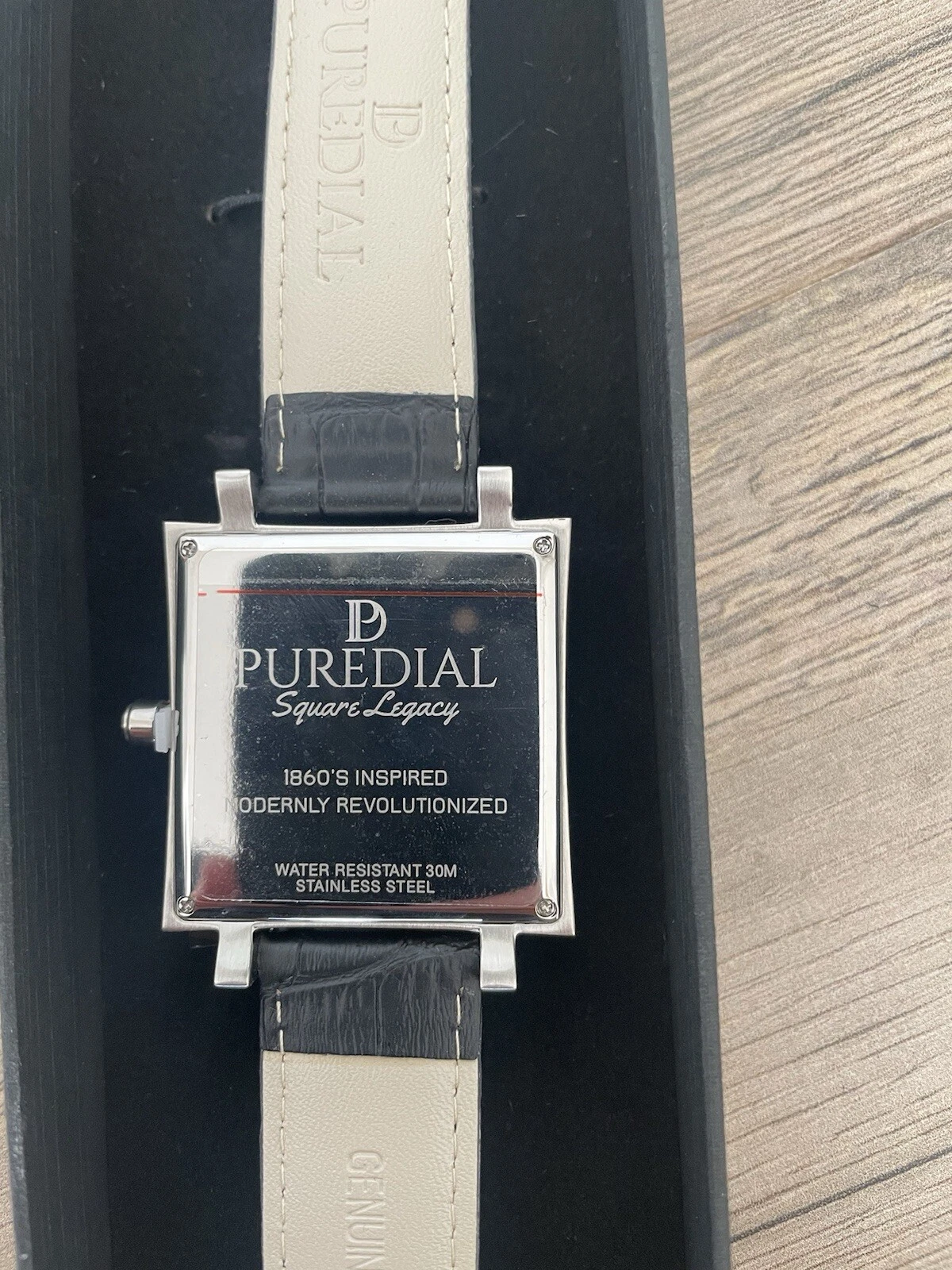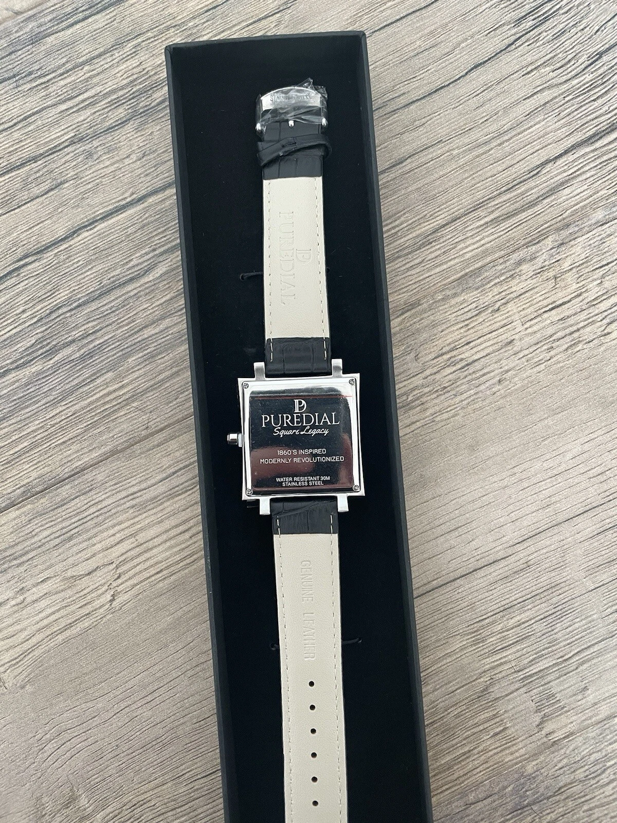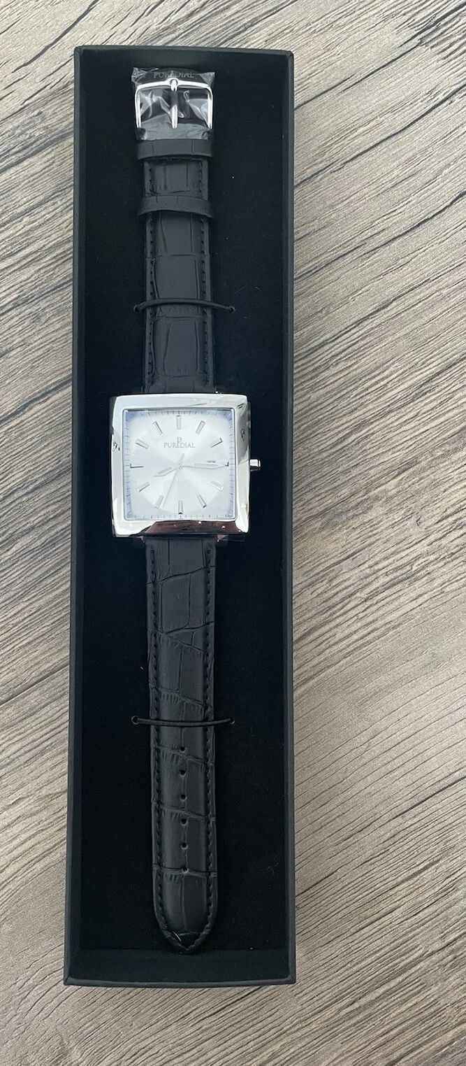 Puredial Square Legacy White/silver Face Black Leather Strap