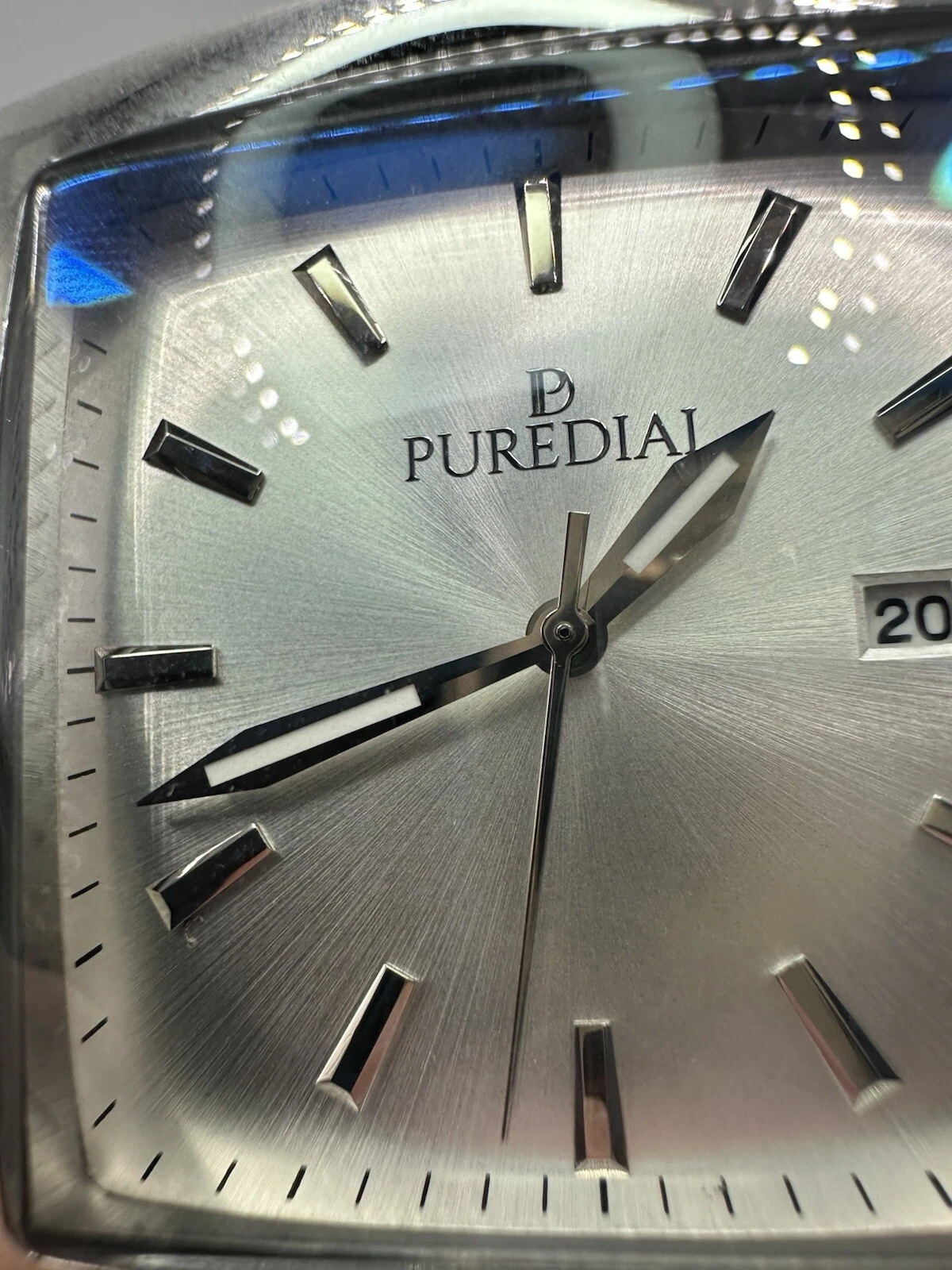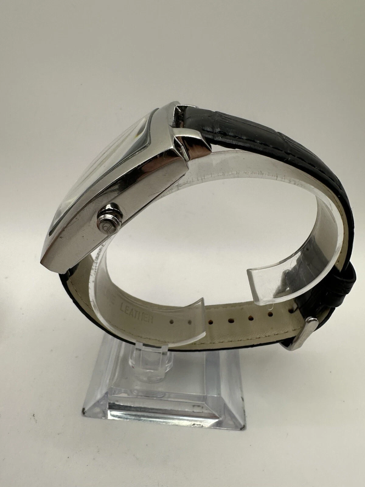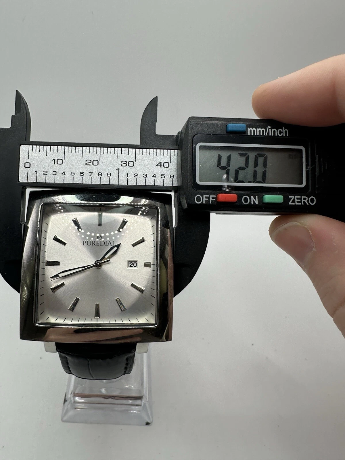 Puredial black dial stainless steel Men’s black leather strap quartz watch 42mm
