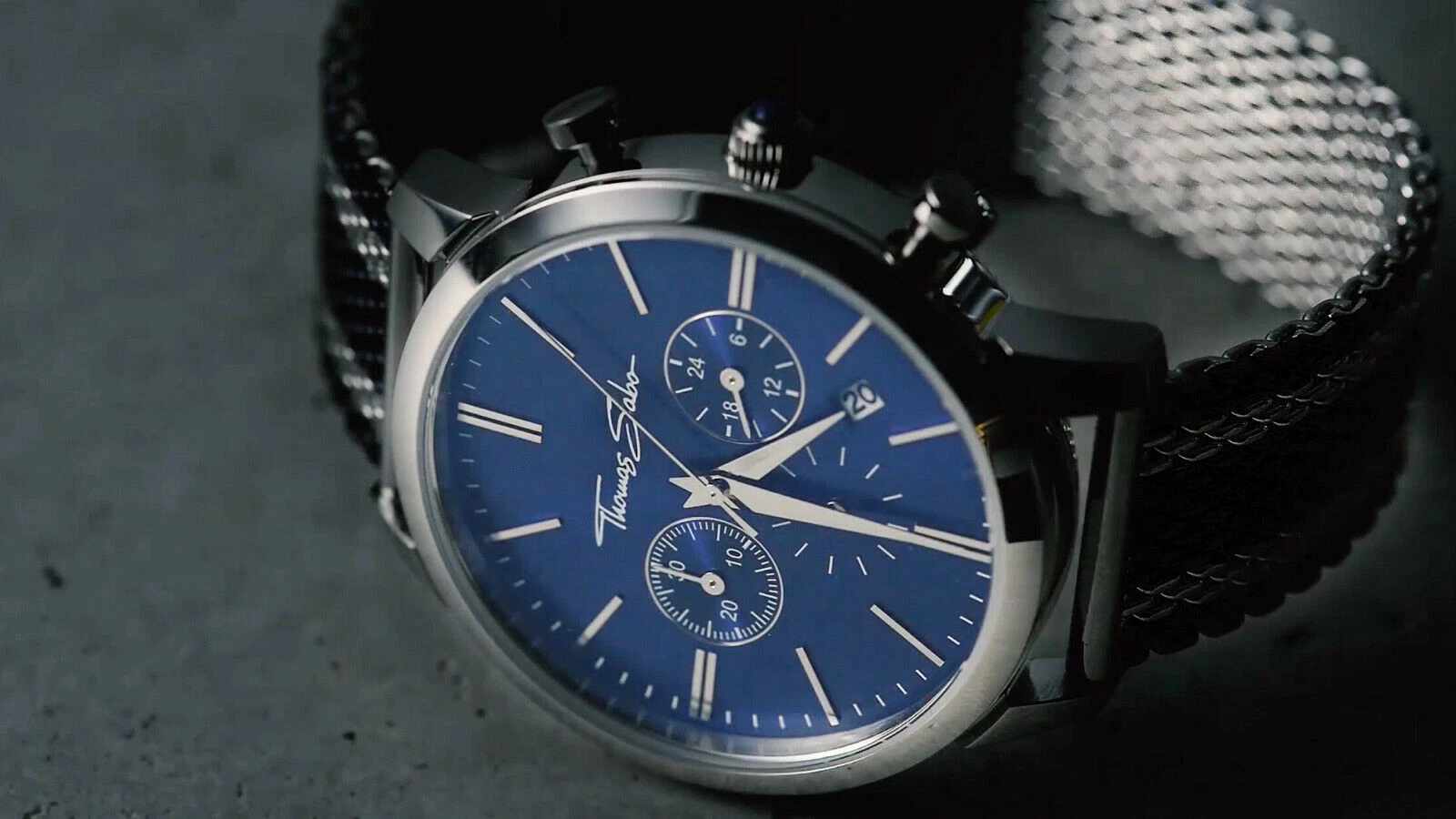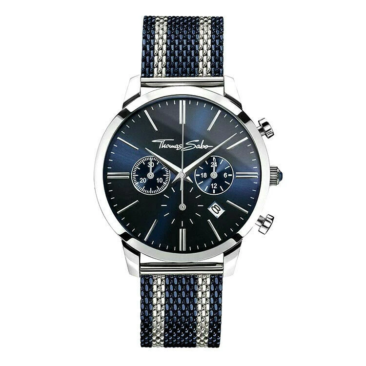 RARE THOMAS SABO CHRONO MESH BLUE DIAL GENUINE ONYX SAPPHIRE CRYSTAL MEN'S WATCH