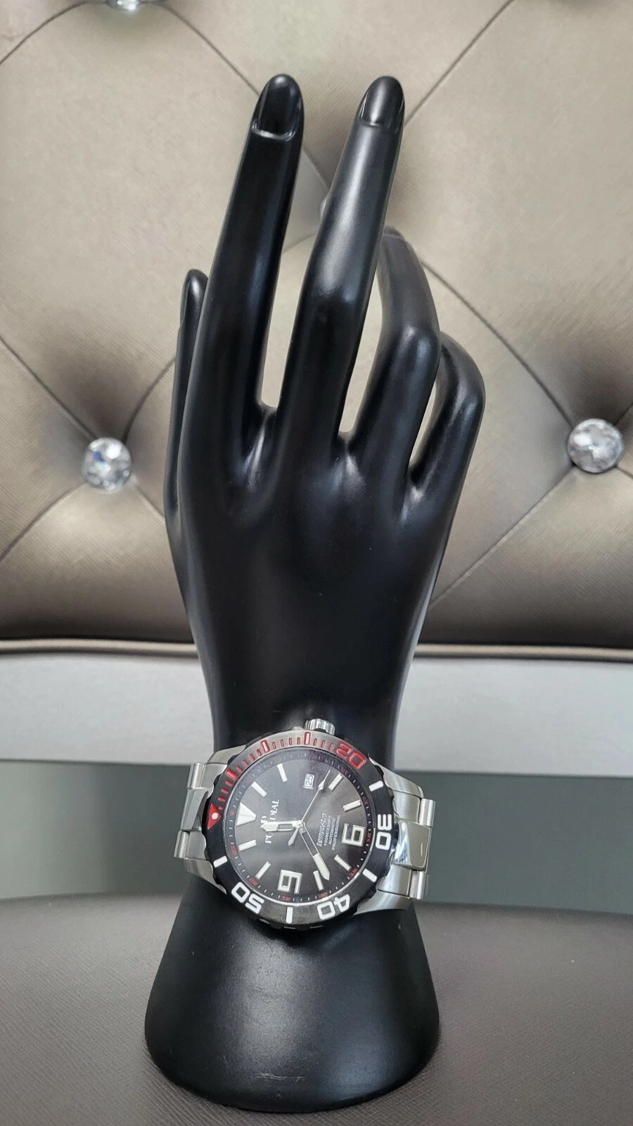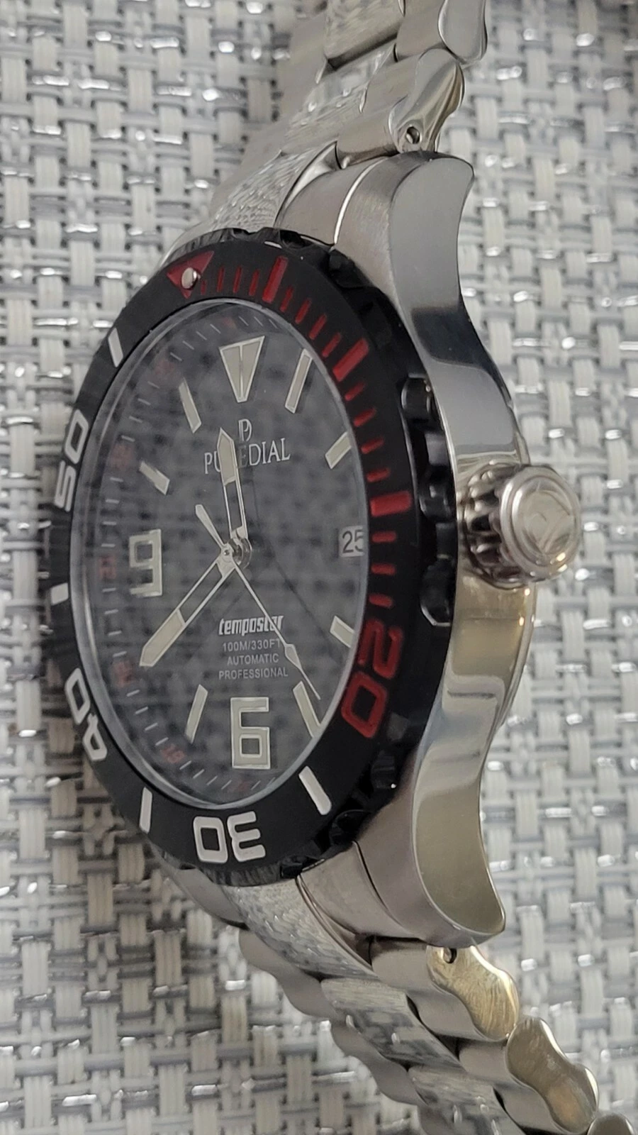 Puredial Tempostar Automatic Black/Red Dial 45mm Men's Watch. New in box