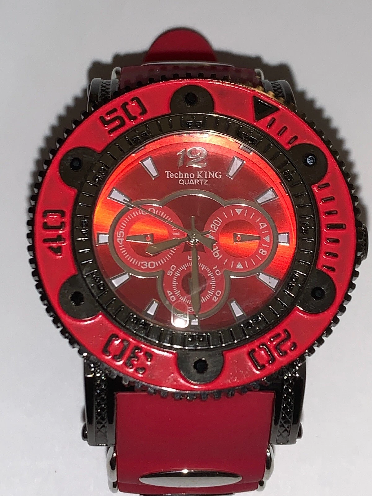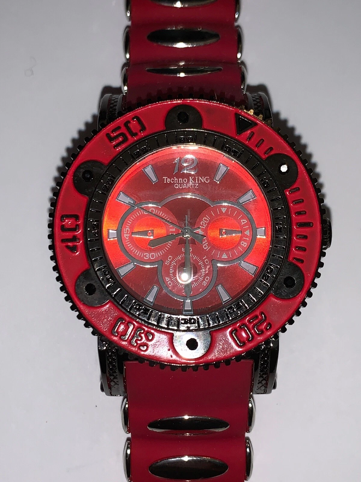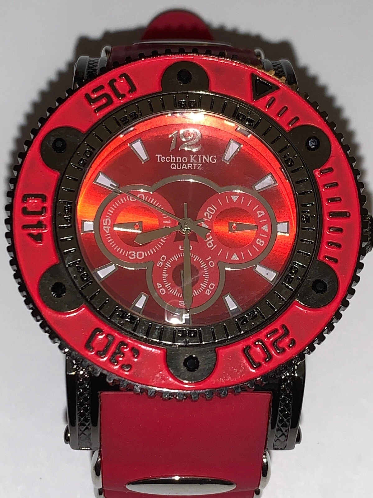 Techno King Mens Fashion Watch. New Battery. Red Silicone Band.